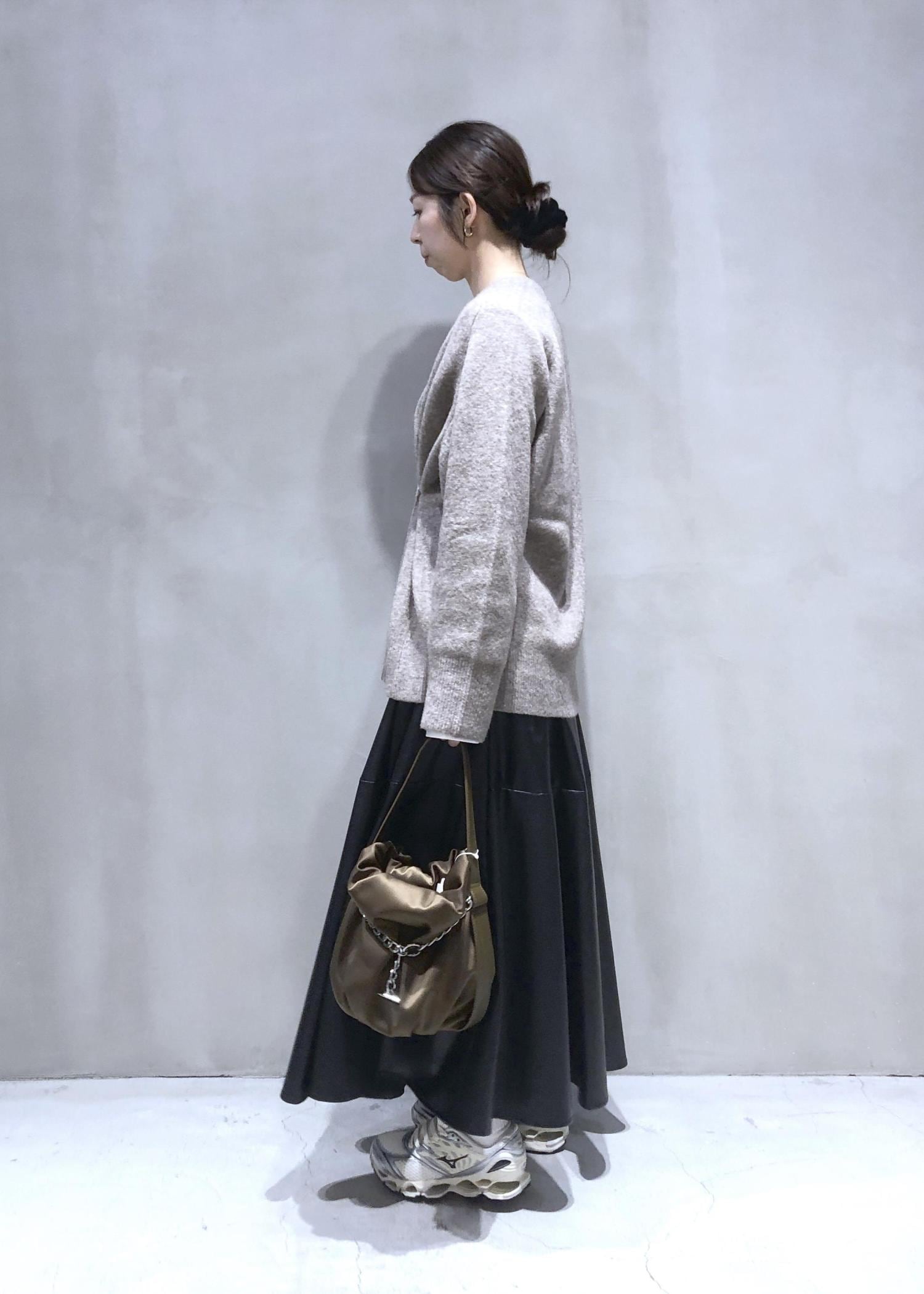 レザーのスカートは春先に