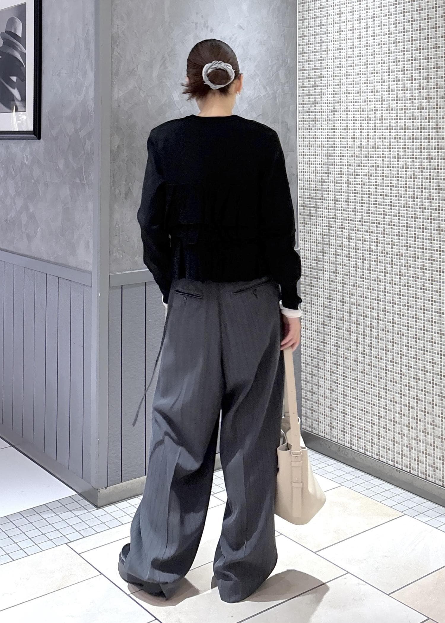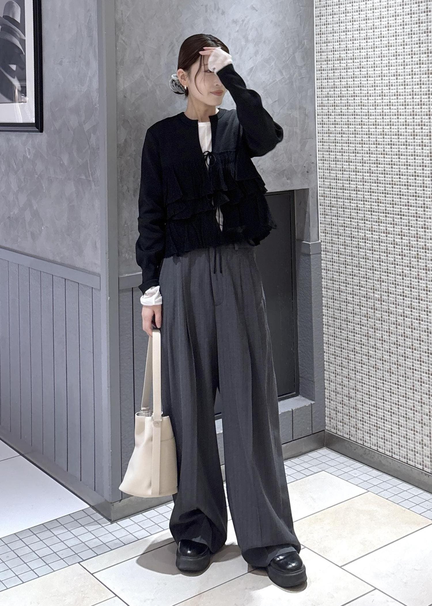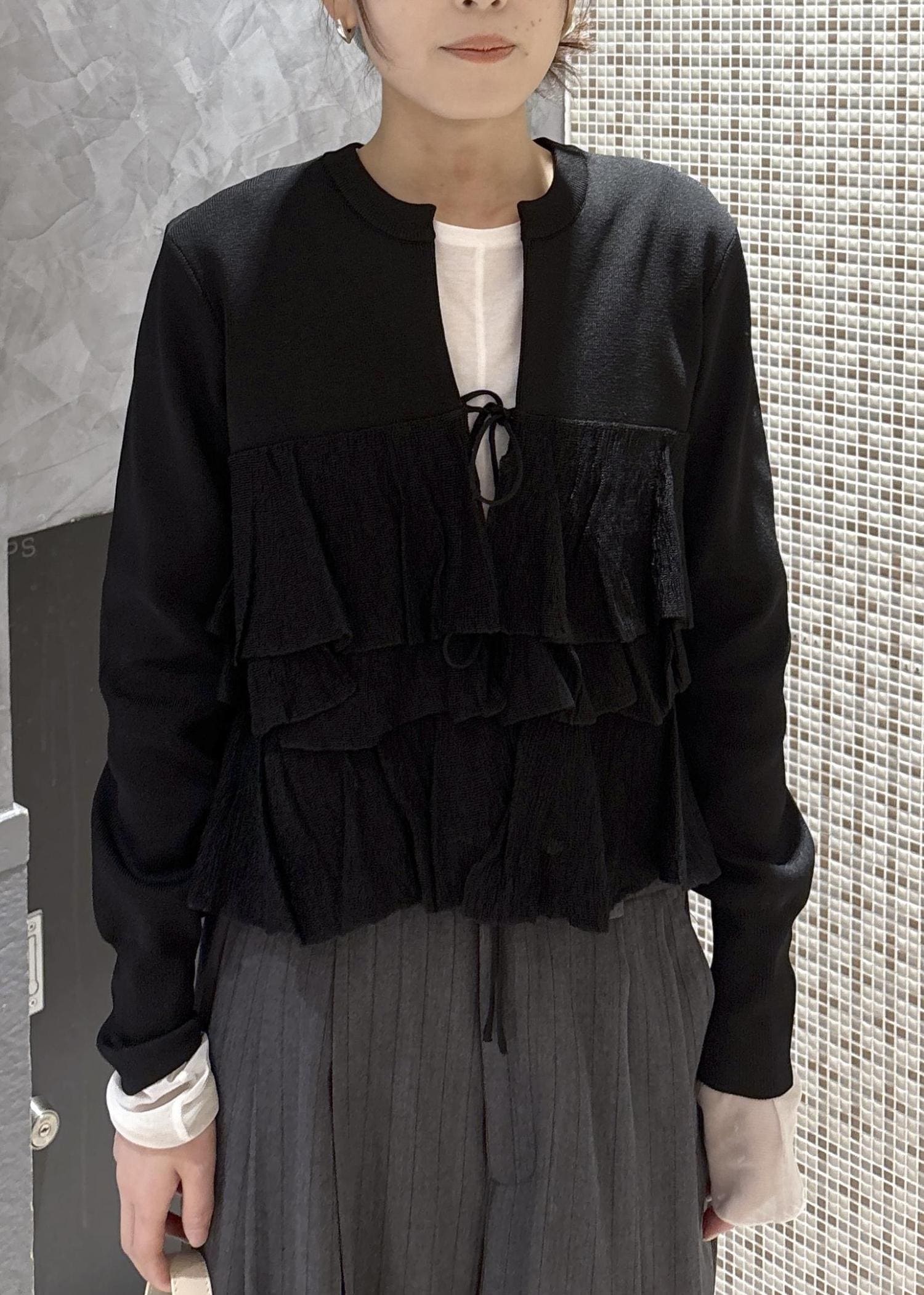ADAM ET ROPÉ FEMME【サステナブル】フリルカーディガンブラック / F¥16,500レビュー季節問わず使えるシャリっとした素材感で、シーズン長く着用できます。ボックス型なので、どんなボトムともバランスよく着ていただけます!