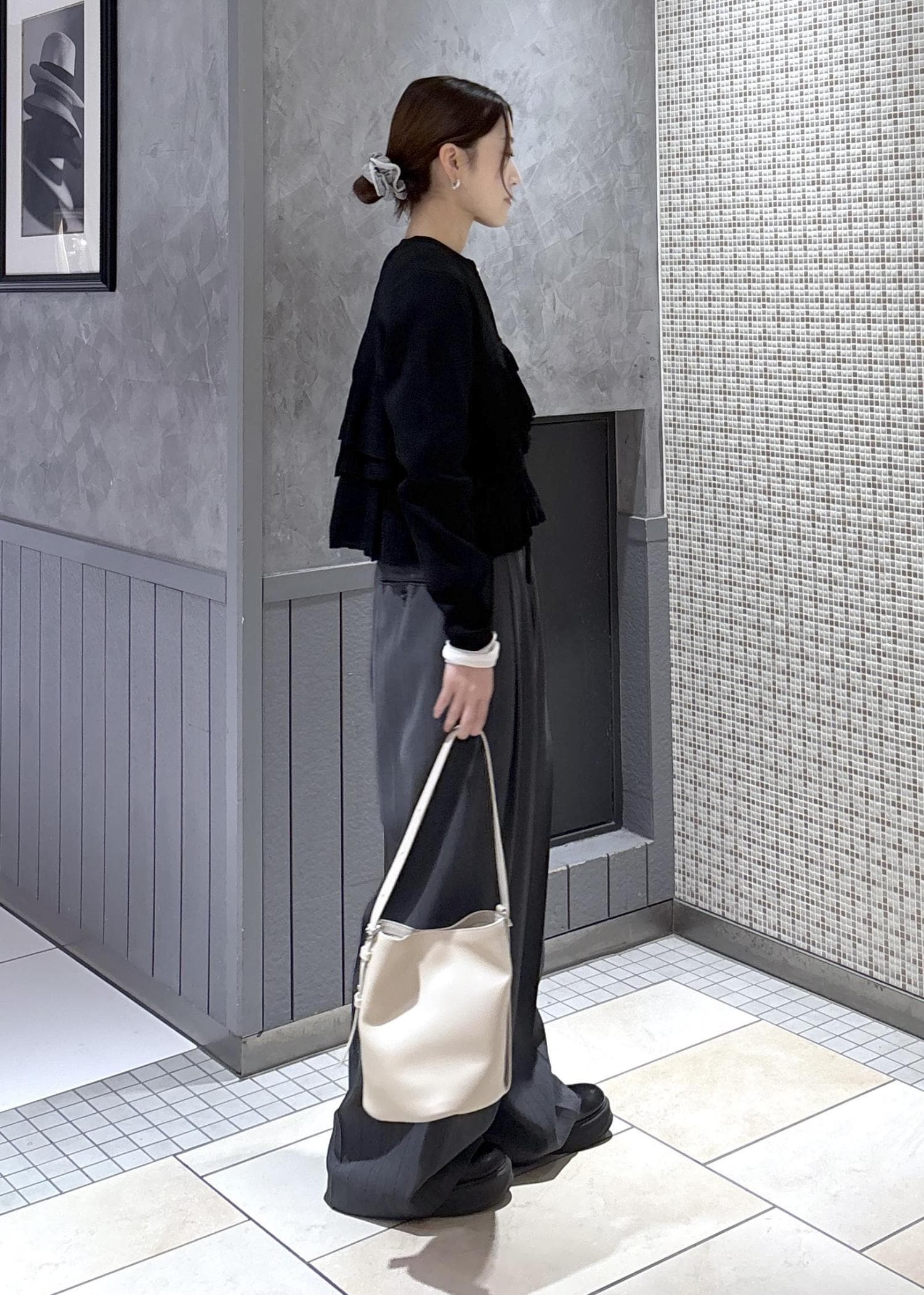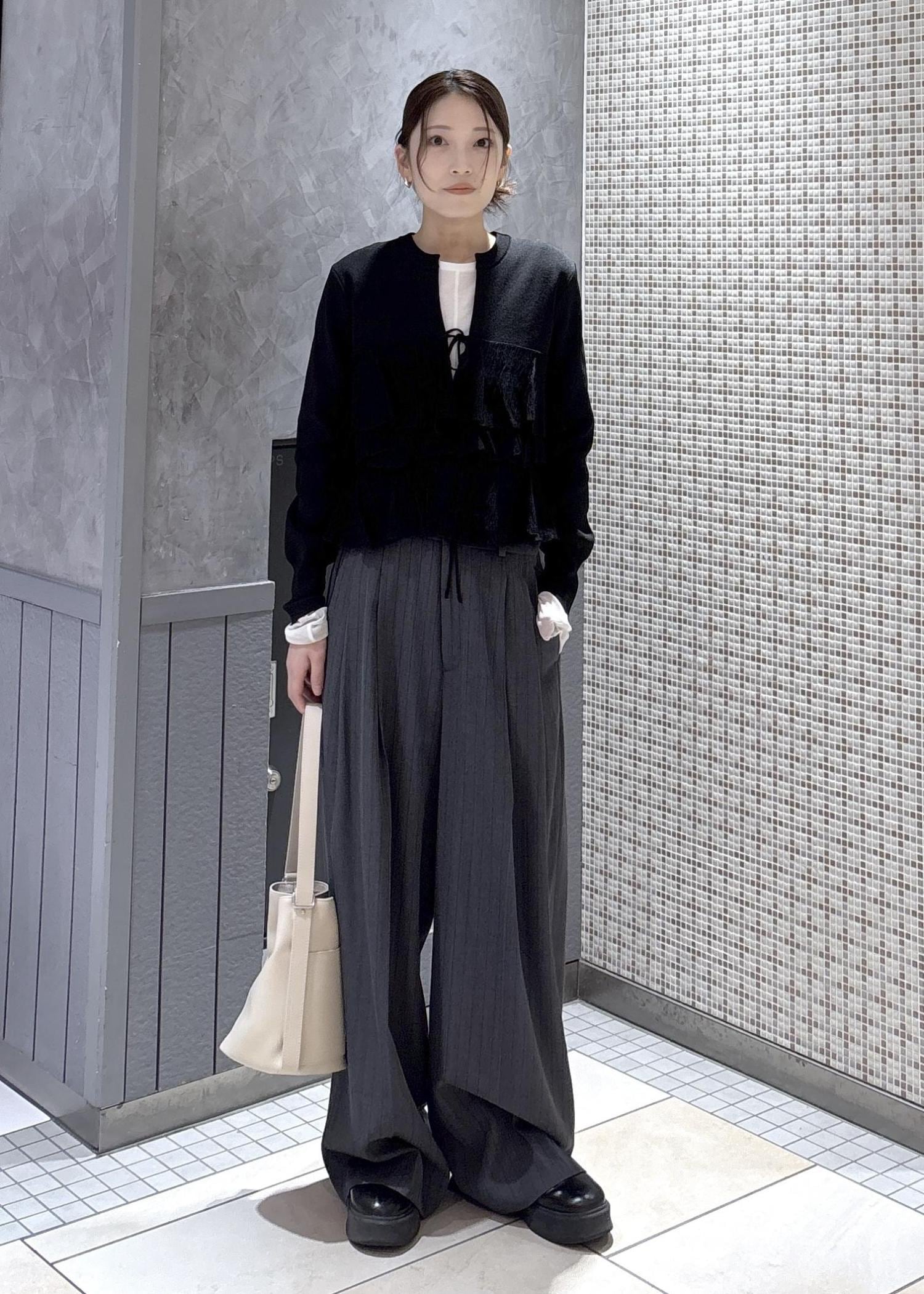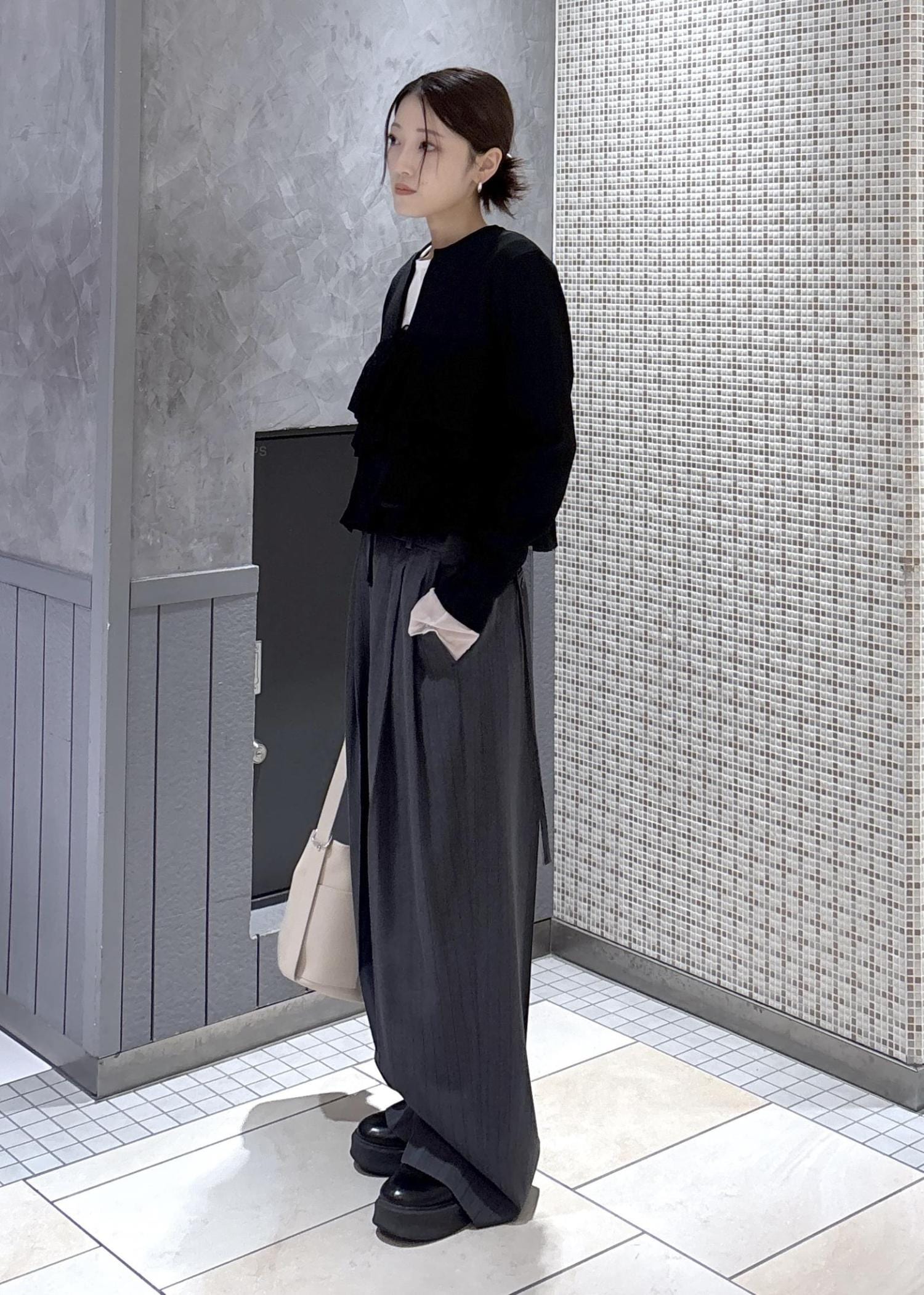 ADAM ET ROPÉ FEMME【サステナブル】フリルカーディガンブラック / F¥16,500レビュー季節問わず使えるシャリっとした素材感で、シーズン長く着用できます。ボックス型なので、どんなボトムともバランスよく着ていただけます!