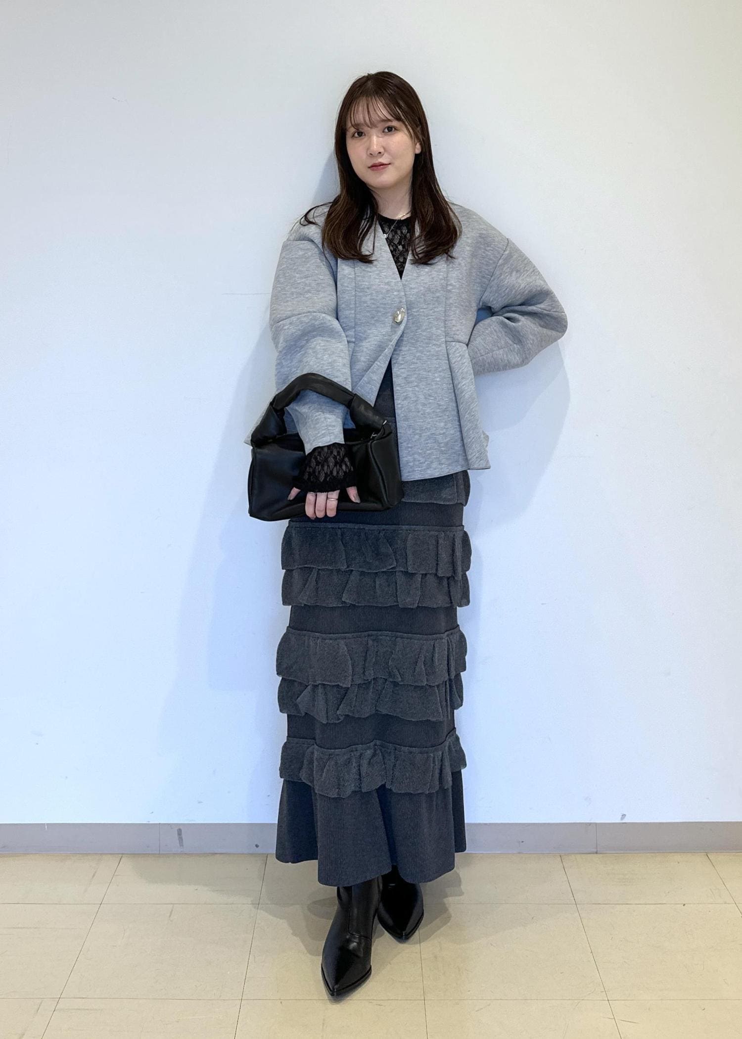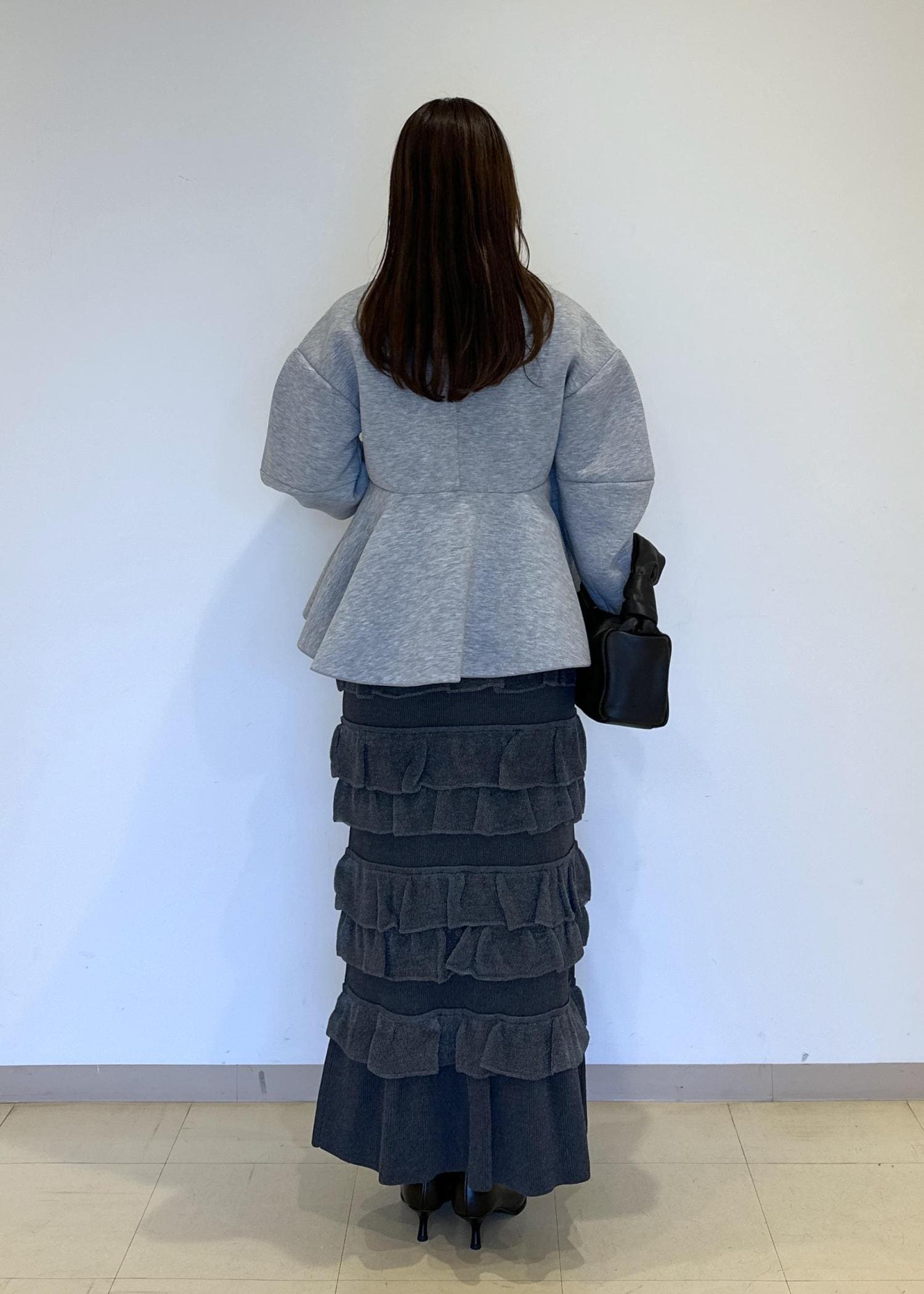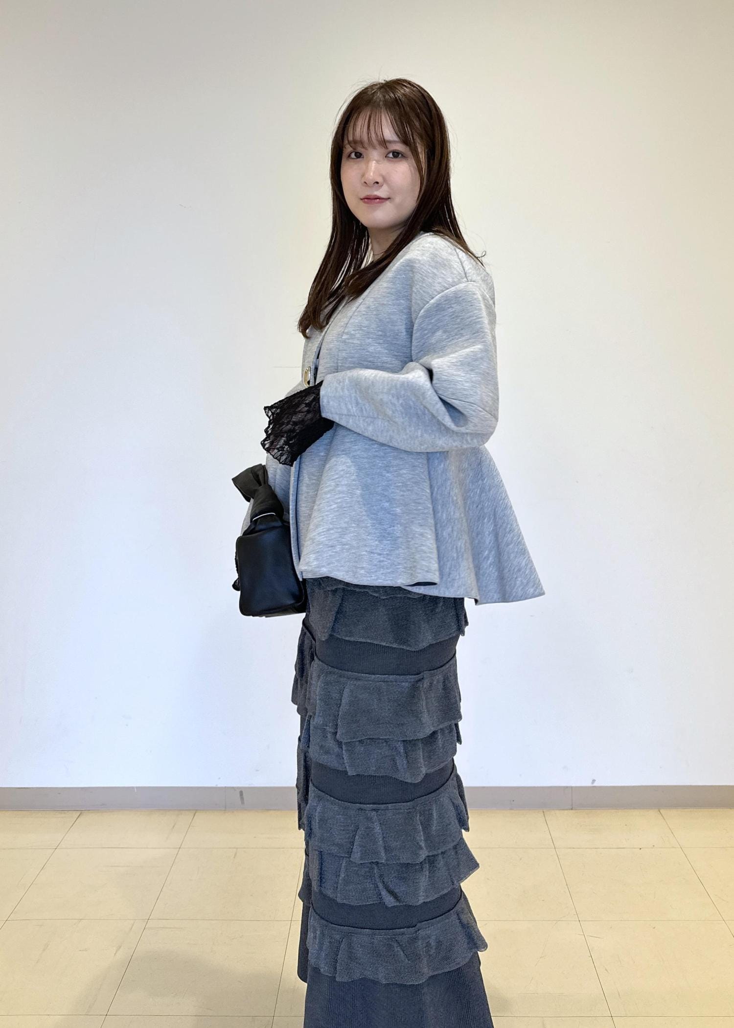 ADAM ET ROPÉ FEMME【サステナブル】フリルニットスカートグレー系 / F¥19,800レビュータイトめなスカートですが、フリルが体のラインを隠してくれて、細見えします!うれしい
