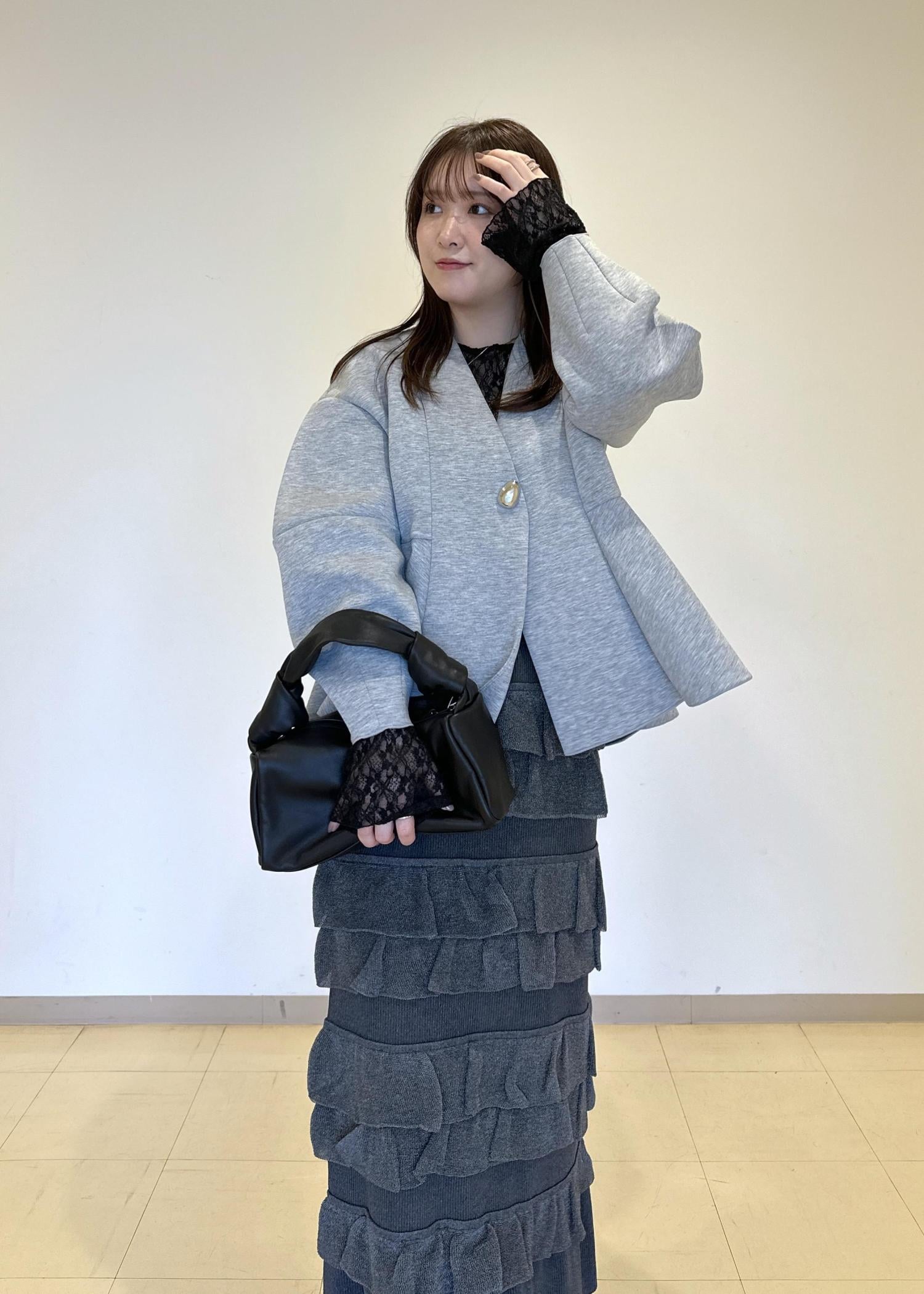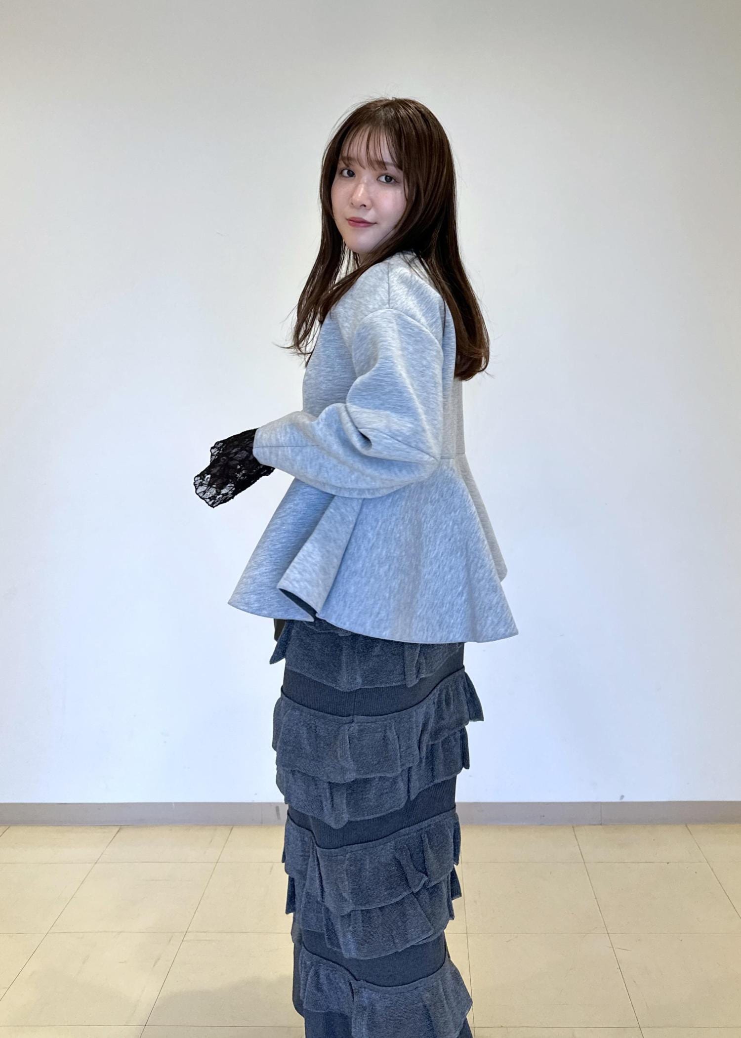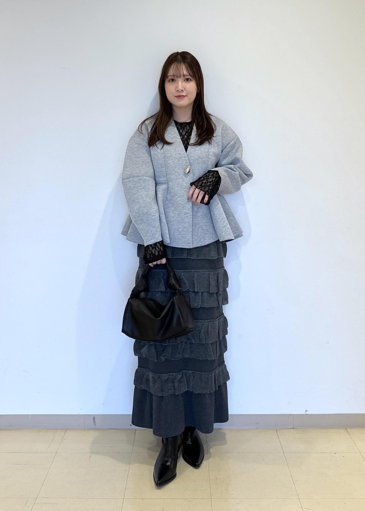 ADAM ET ROPÉ FEMME【サステナブル】フリルニットスカートグレー系 / F¥19,800レビュータイトめなスカートですが、フリルが体のラインを隠してくれて、細見えします!うれしい