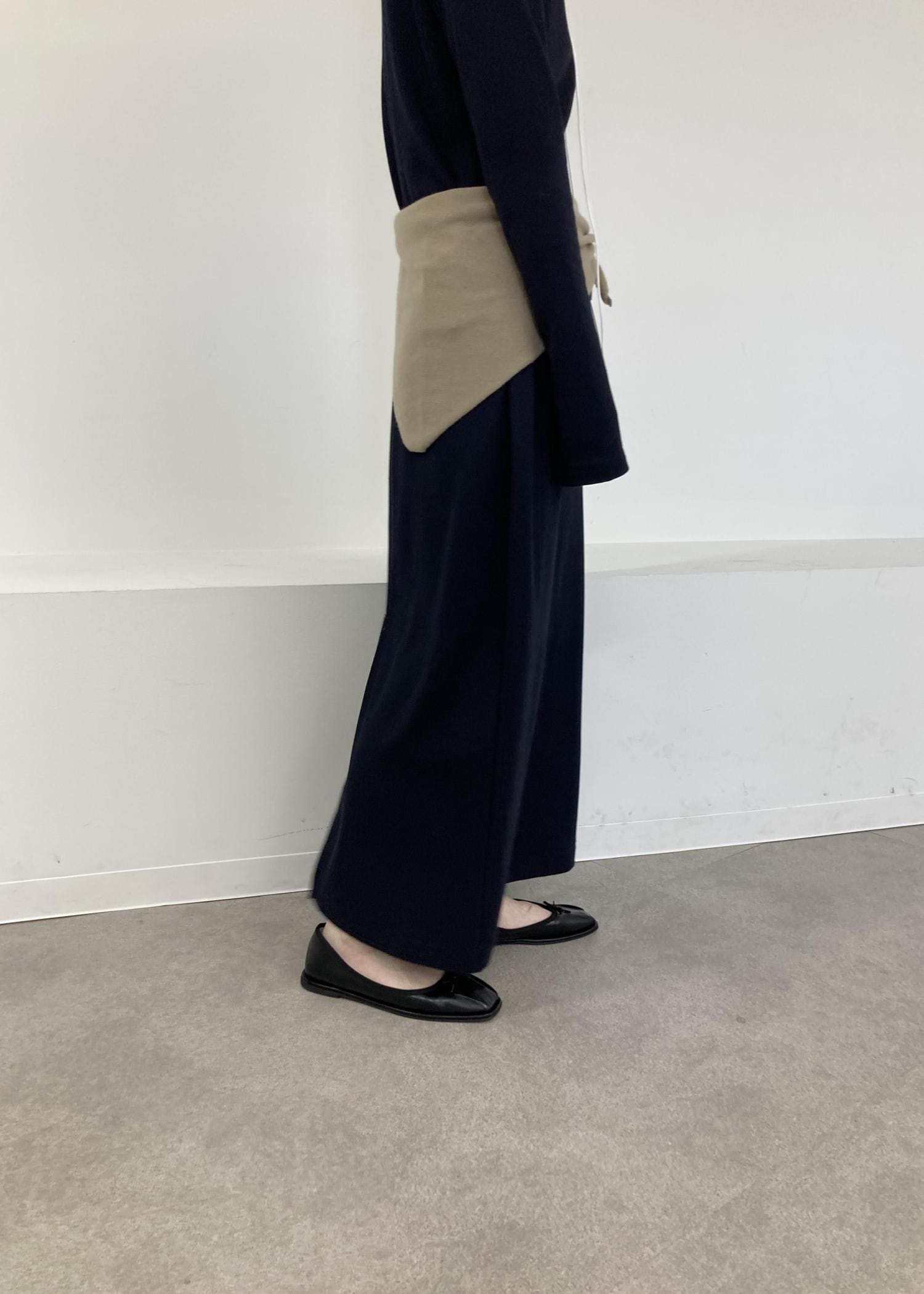 シンプルなリーンシルエットなので腰にスカーフやベルトを巻いた着方も楽しめます。