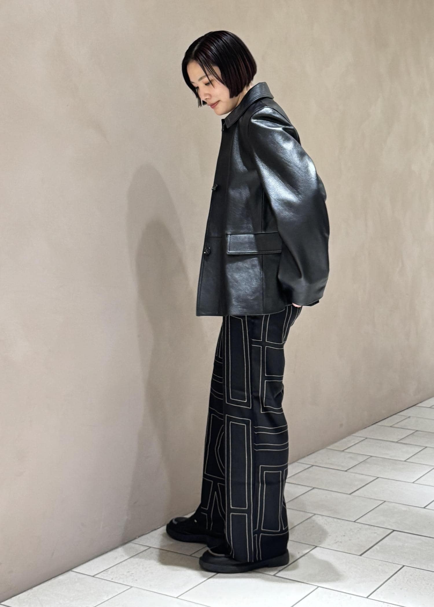 パンツはパジャマから着想を得たリラックス感のあるストレートシルエットが特徴。ウエストはゴムで楽ちんな履き心地。
