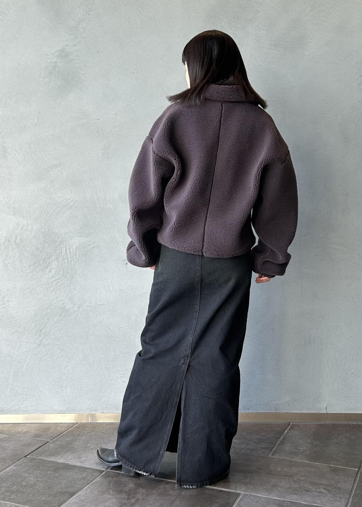 ボリュームたっぷりの見た目ですが、かなり軽い着心地です。長めの袖に対して、丈は短めなのでスタイル良く見えます。