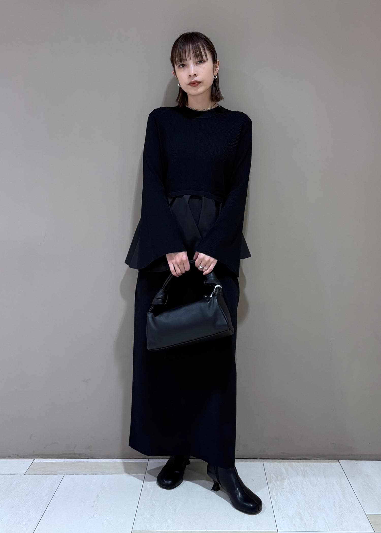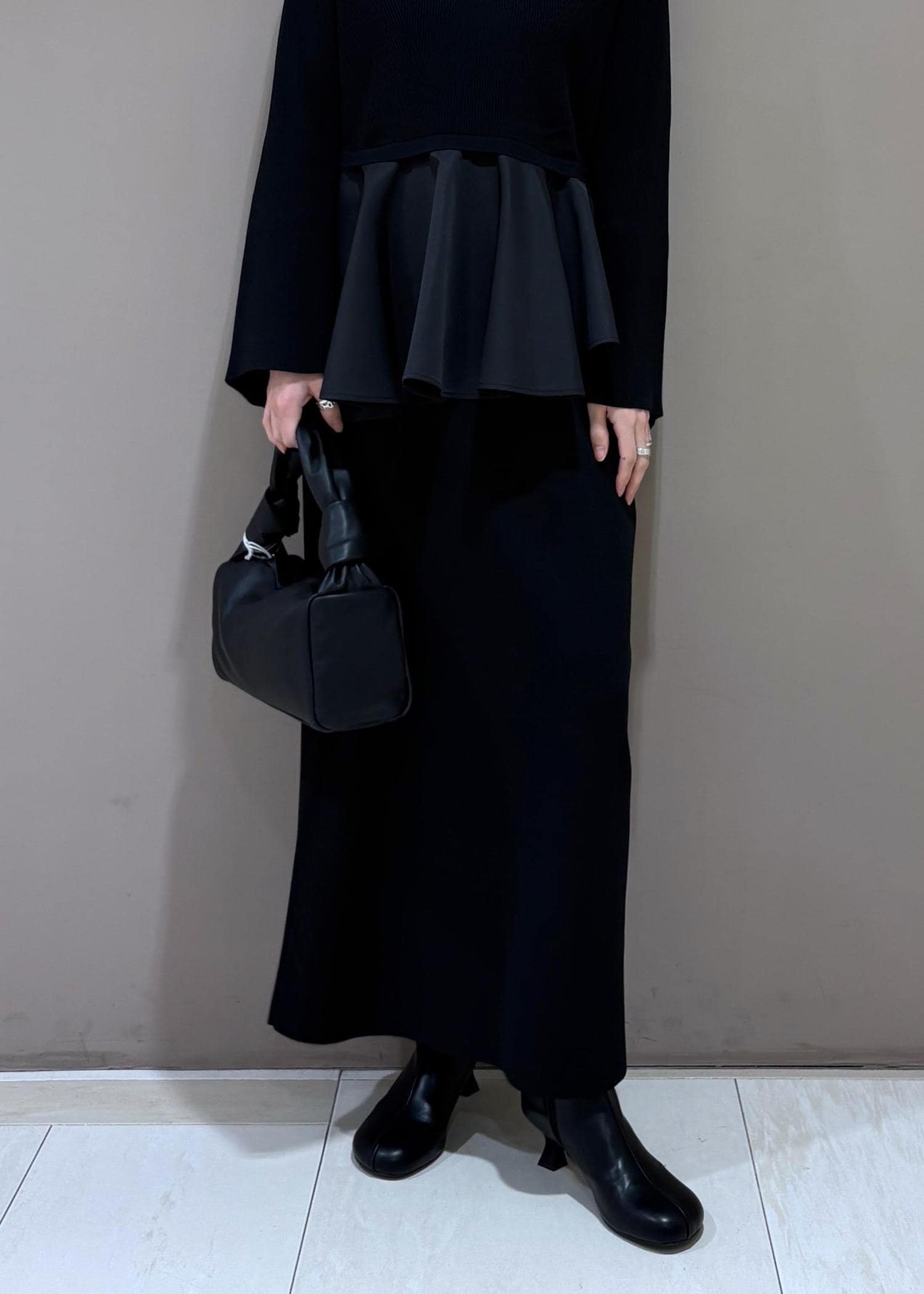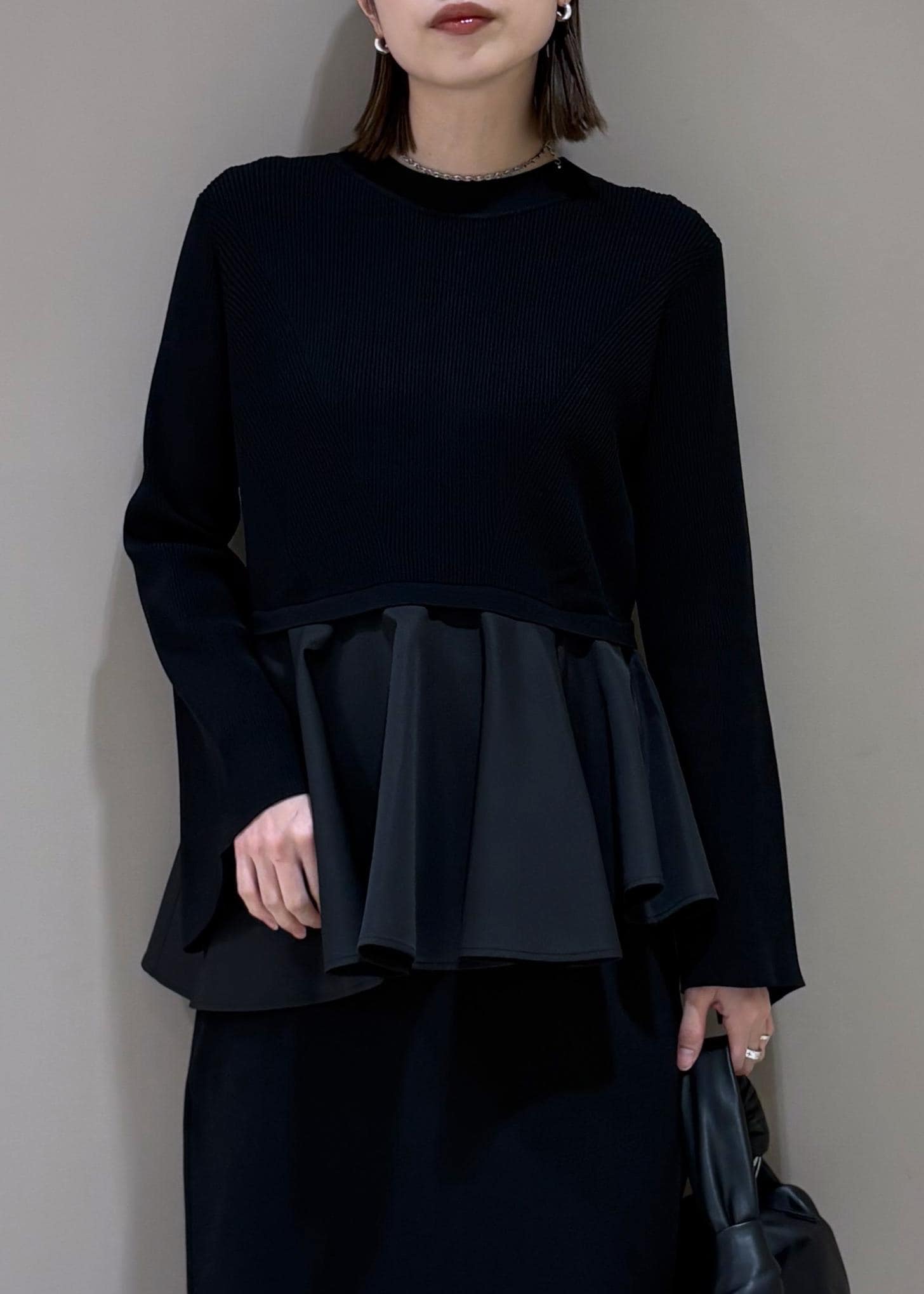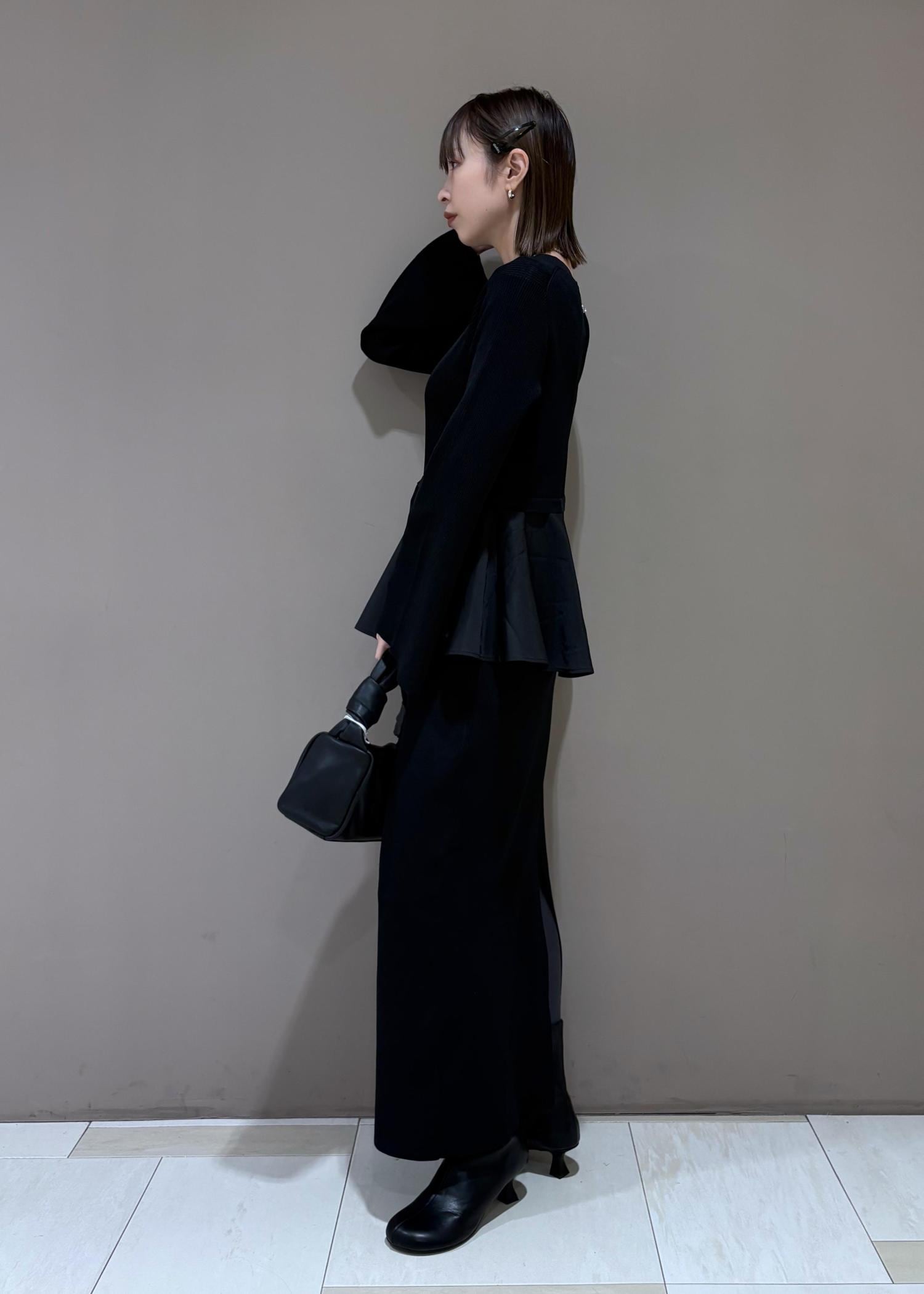 ADAM ET ROPÉ FEMME【サステナブル】ペプラムコンビニットワンピース/オケージョン対応ブラック / F¥23,100レビュー162cm、フリーサイズ着用。