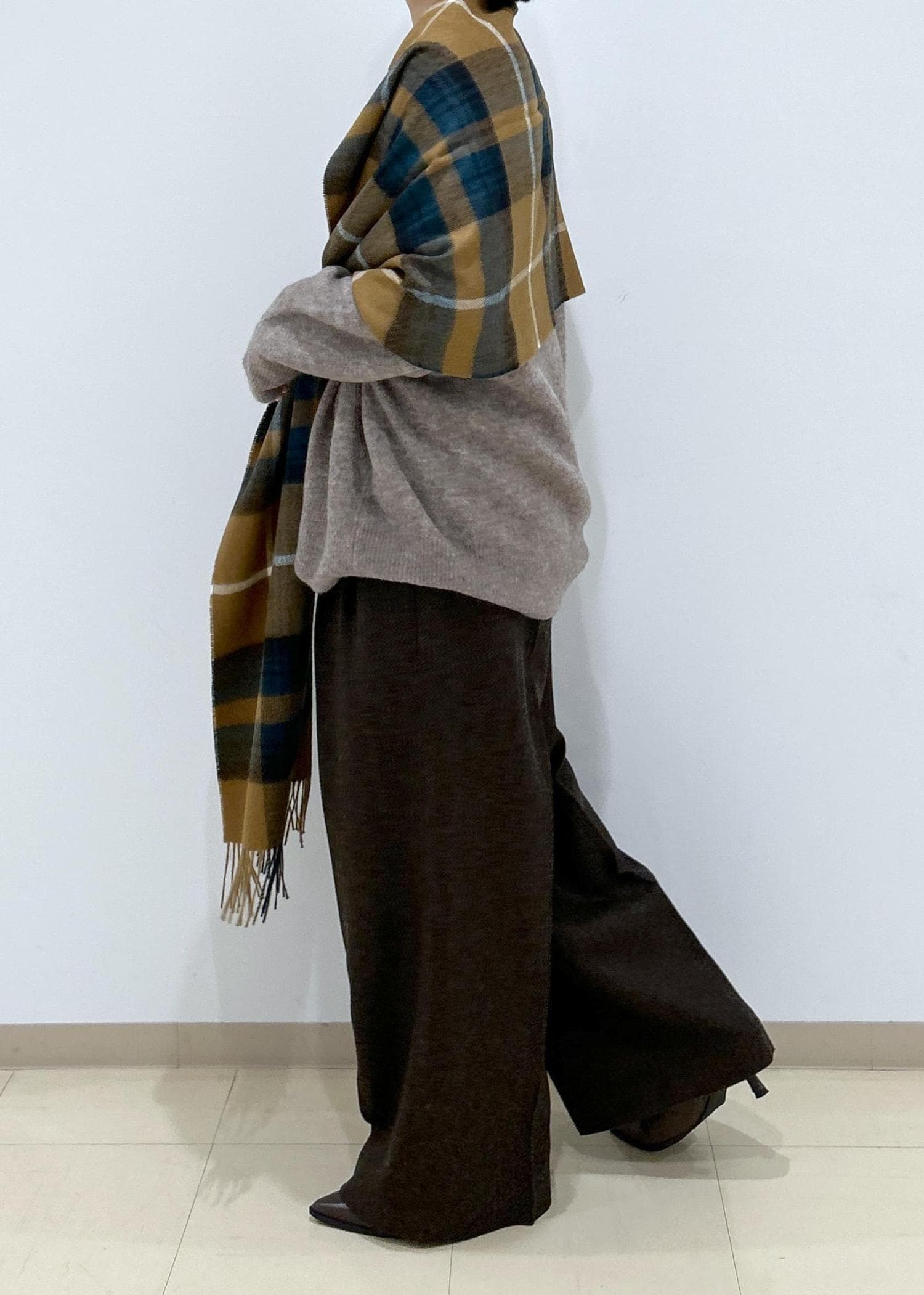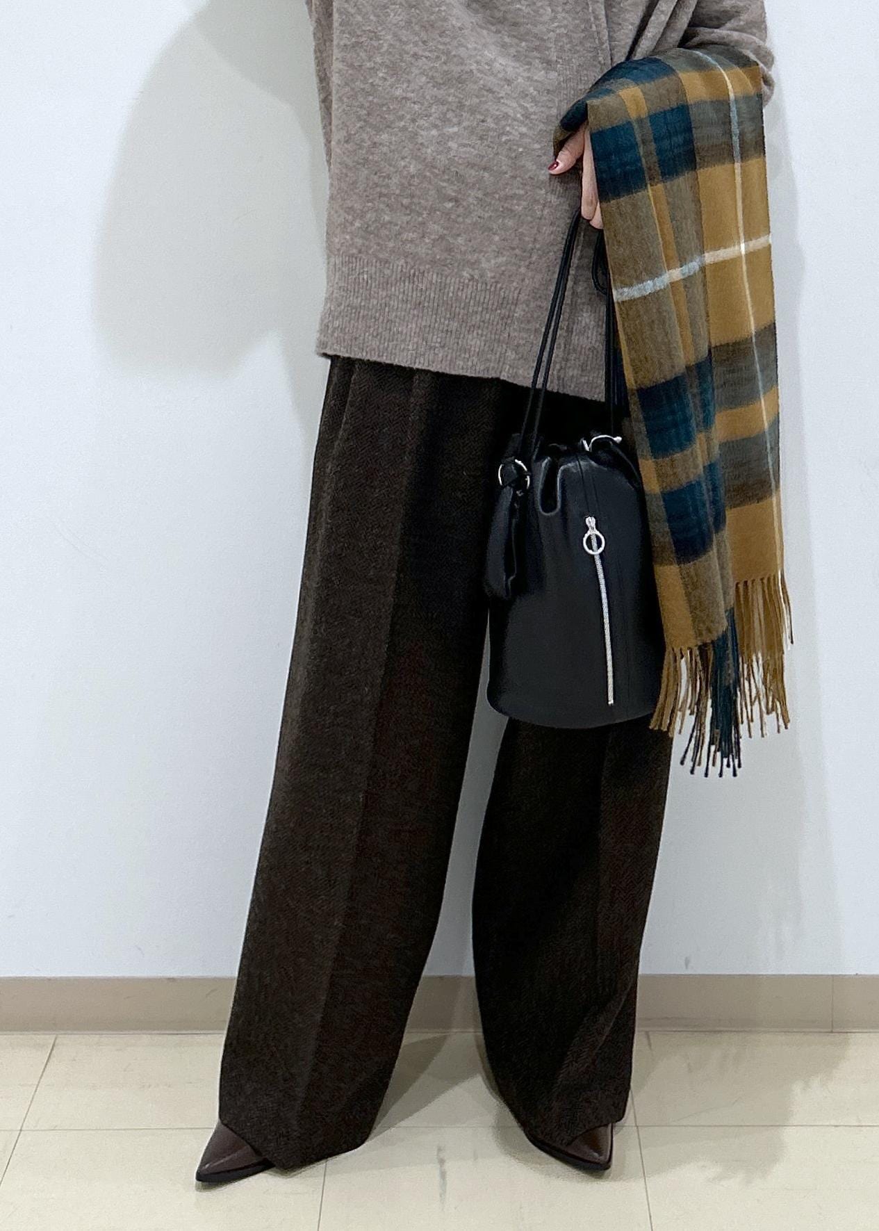 EMOELLE【EMOELLE】へリンボーンワイドパンツダークブラウン系 / 36¥39,600レビュー紐でウエストを絞れます。