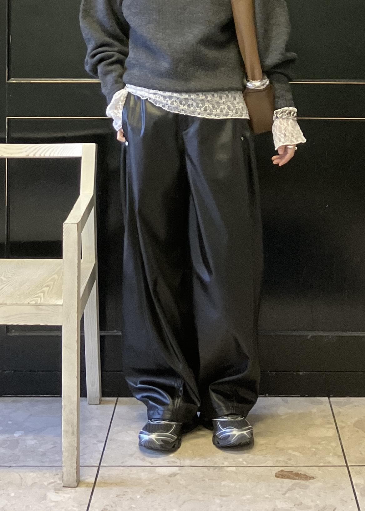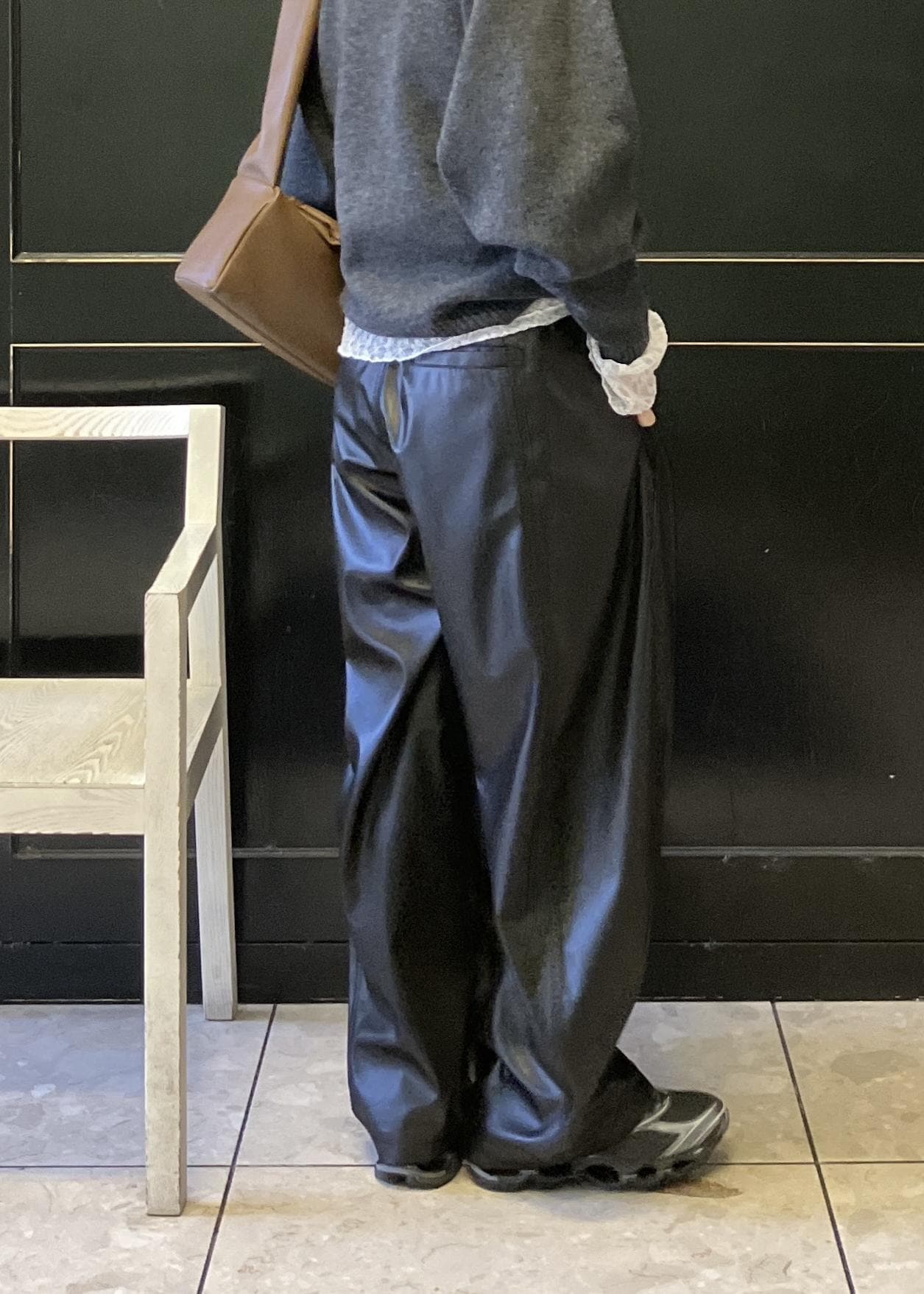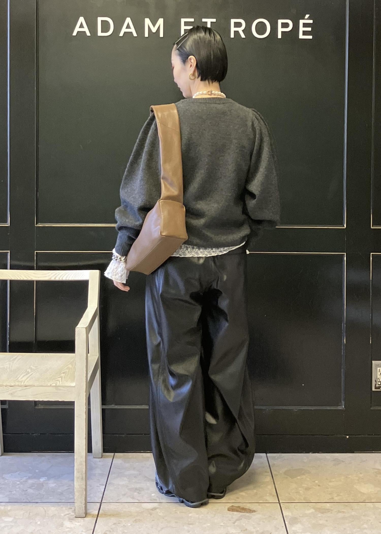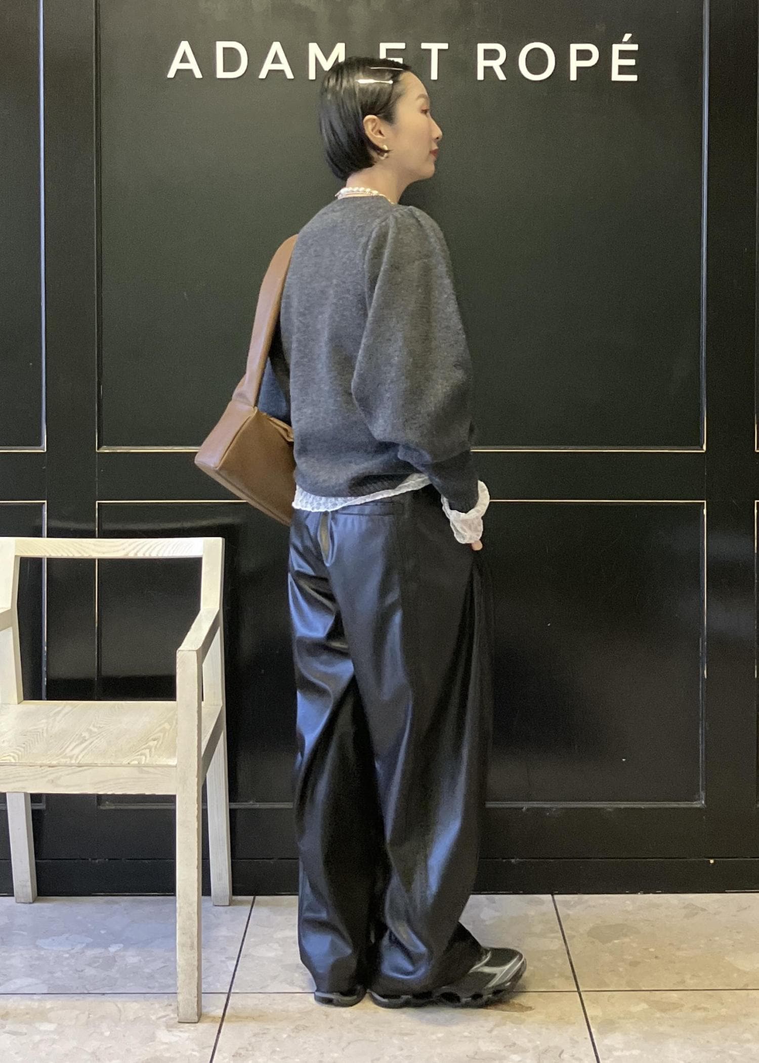 ADAM ET ROPÉ FEMMEグロスボンディングコクーンパンツブラック / 36¥22,000レビュー光沢のあるパンツなので、秋冬のニットやスウェットのようにマットない素材ととても相性よく合わすことが出来ます。