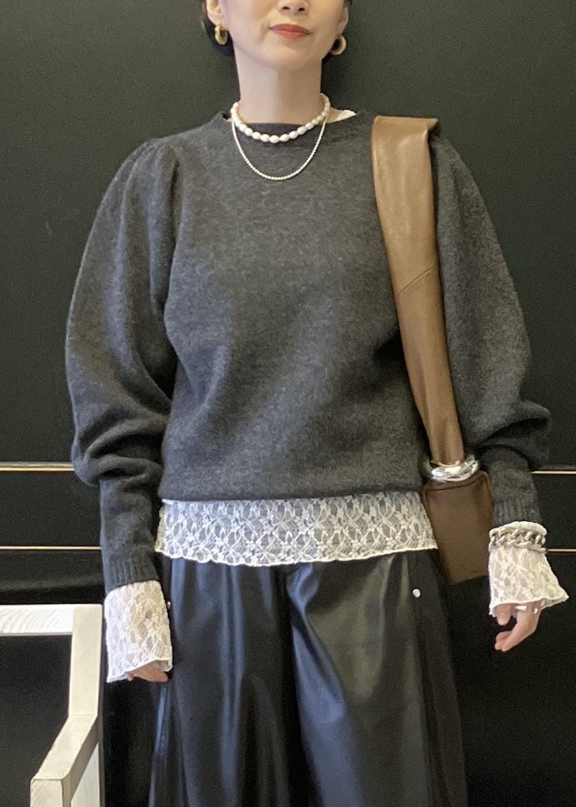 デニムとスウェットだけのスタイリングもこのレースを間に着るだけで、オシャレなスタイリングに格上げされますよ! -
