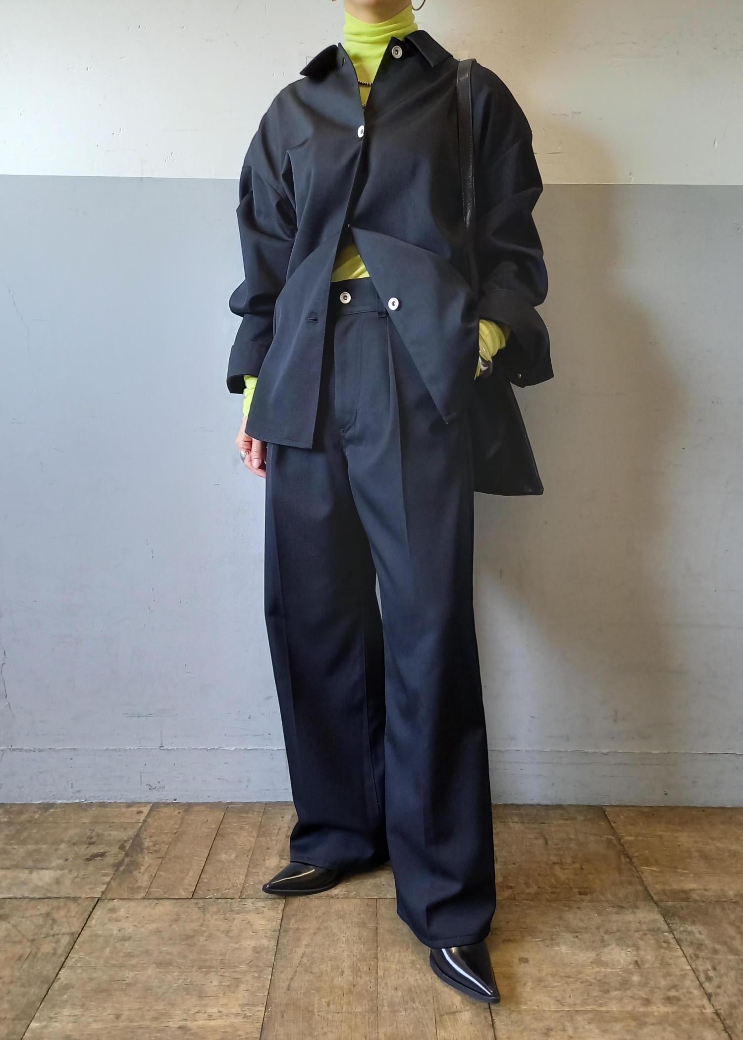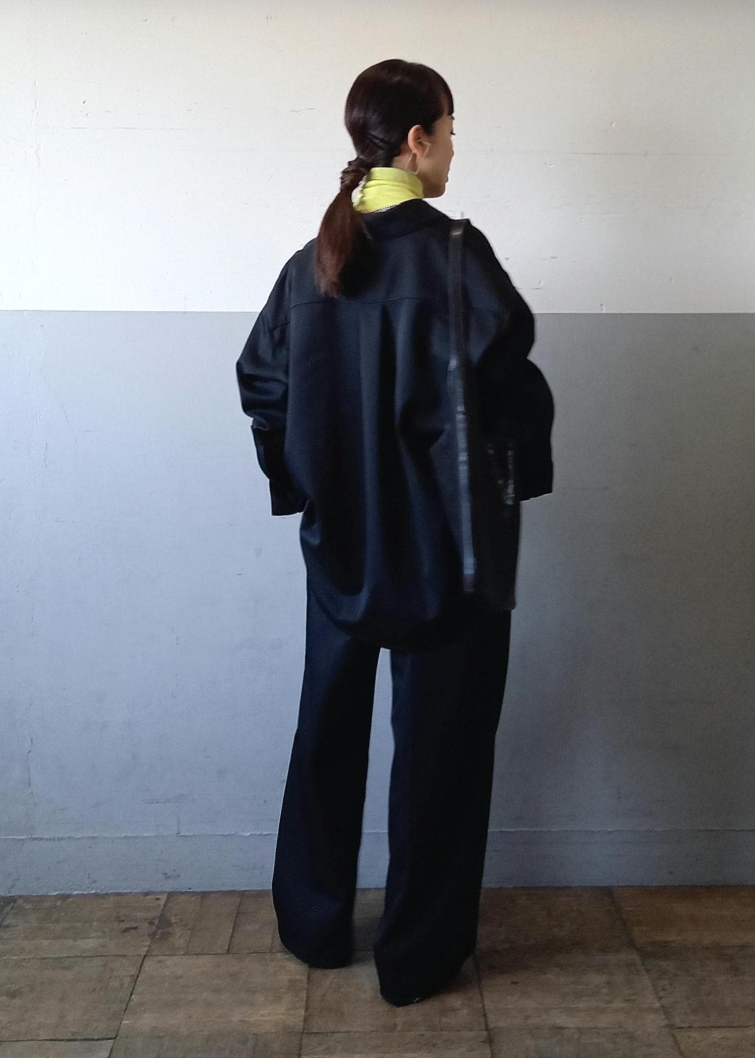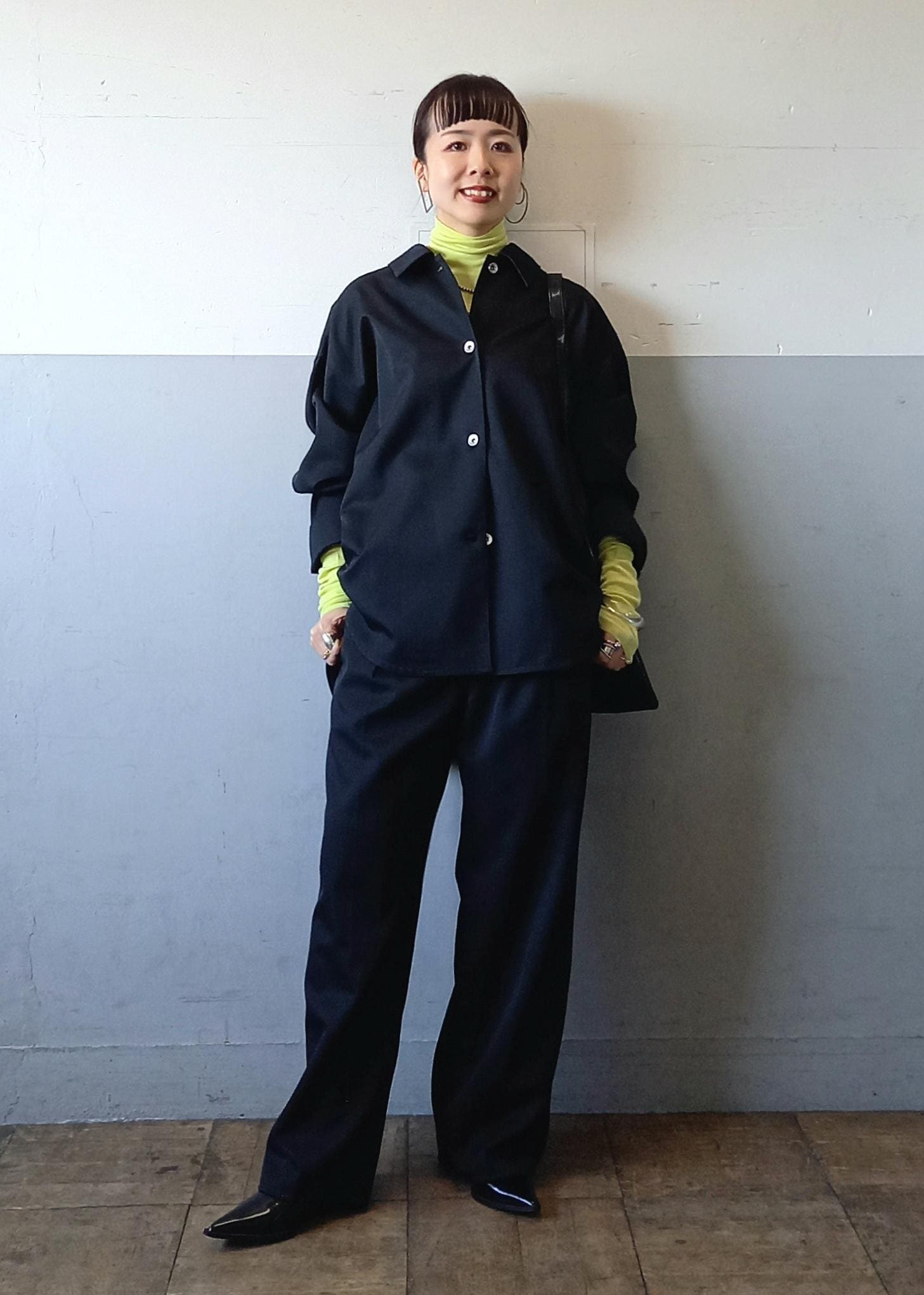 ポリエステルウールの重厚感もありながら、柔らかな抜け感のあるシルエットが最高です。