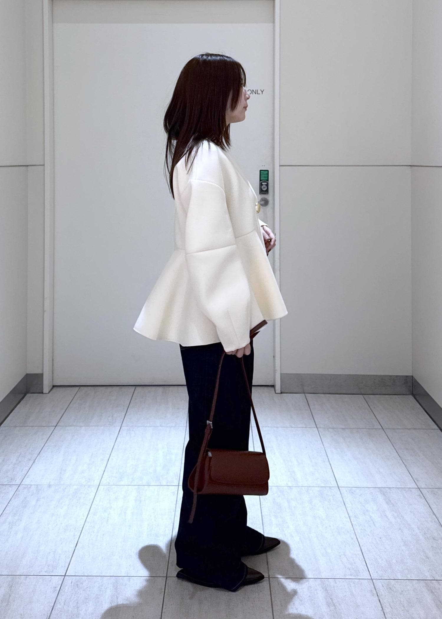 ADAM ET ROPÉ FEMMEエッグブローチ付きペプラムカーディガンキナリ / F¥17,930レビュー生地も柔らかくシルエットが凄く綺麗です。春にも使えるのでおすすめです。