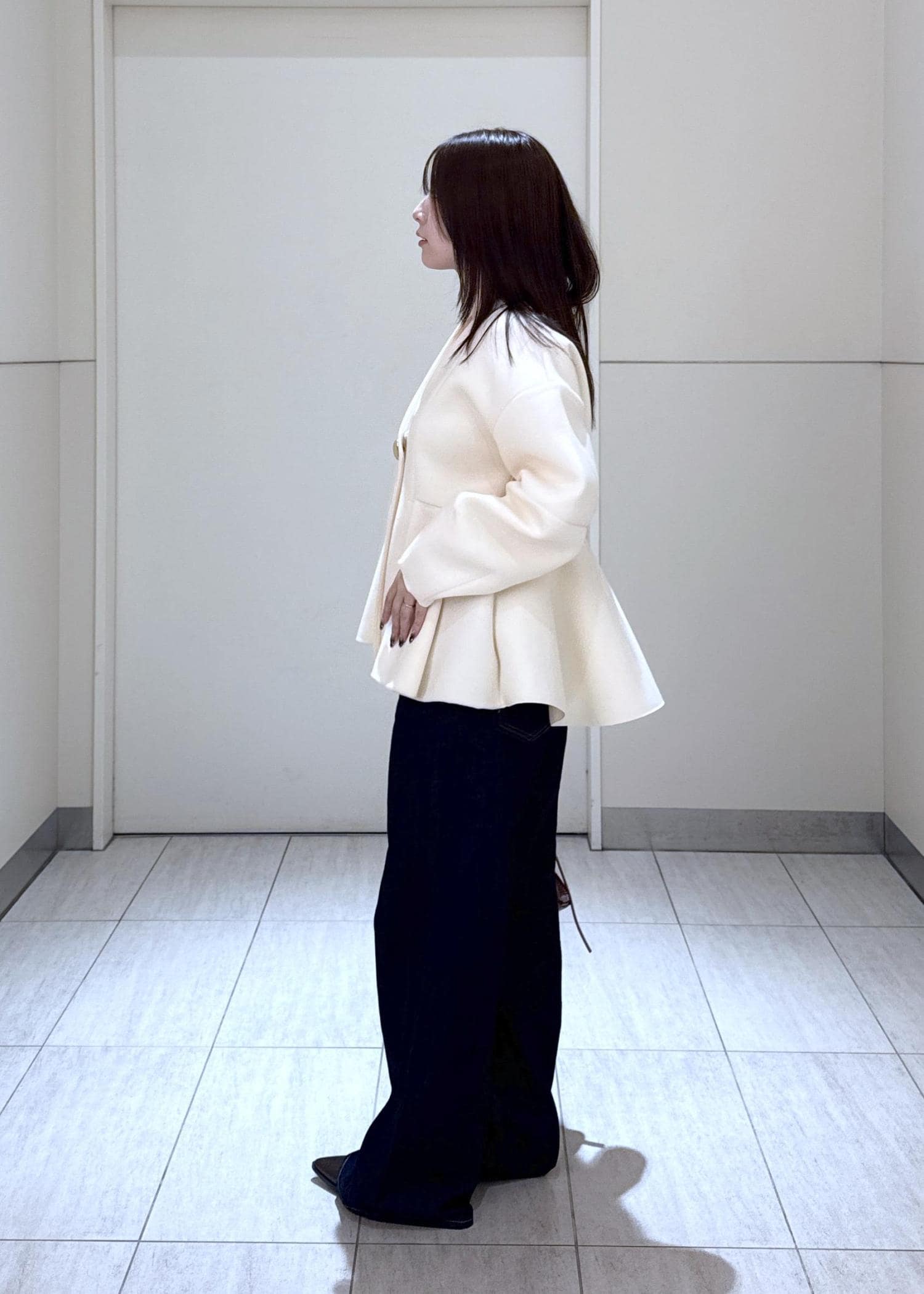 ウエストも細見えしてくれるので是非ご試着してみてください。