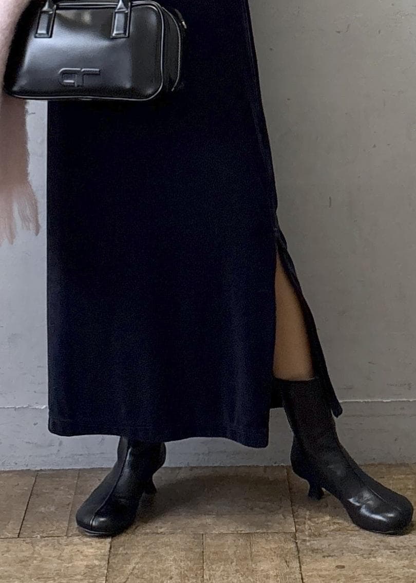 足元左側にジップ仕様でスリットが入れられるのでボトムをレイヤードしても可愛いです。 -