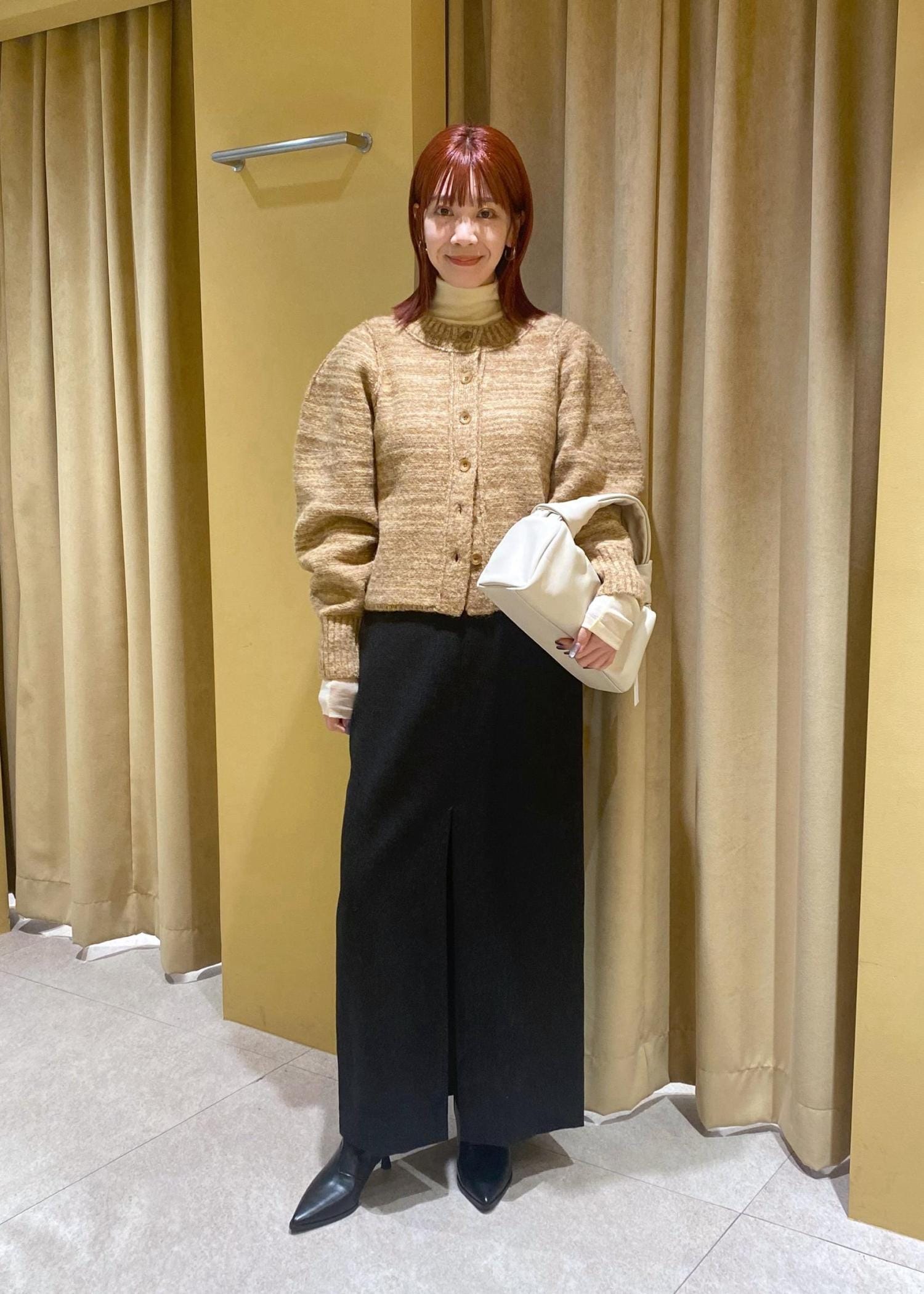 袖のコロンとしたデザインが可愛いので、アウターを脱いでも主役級のカーディガンです!