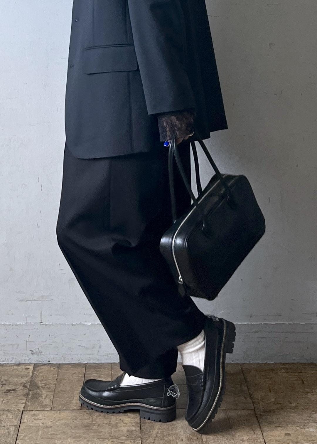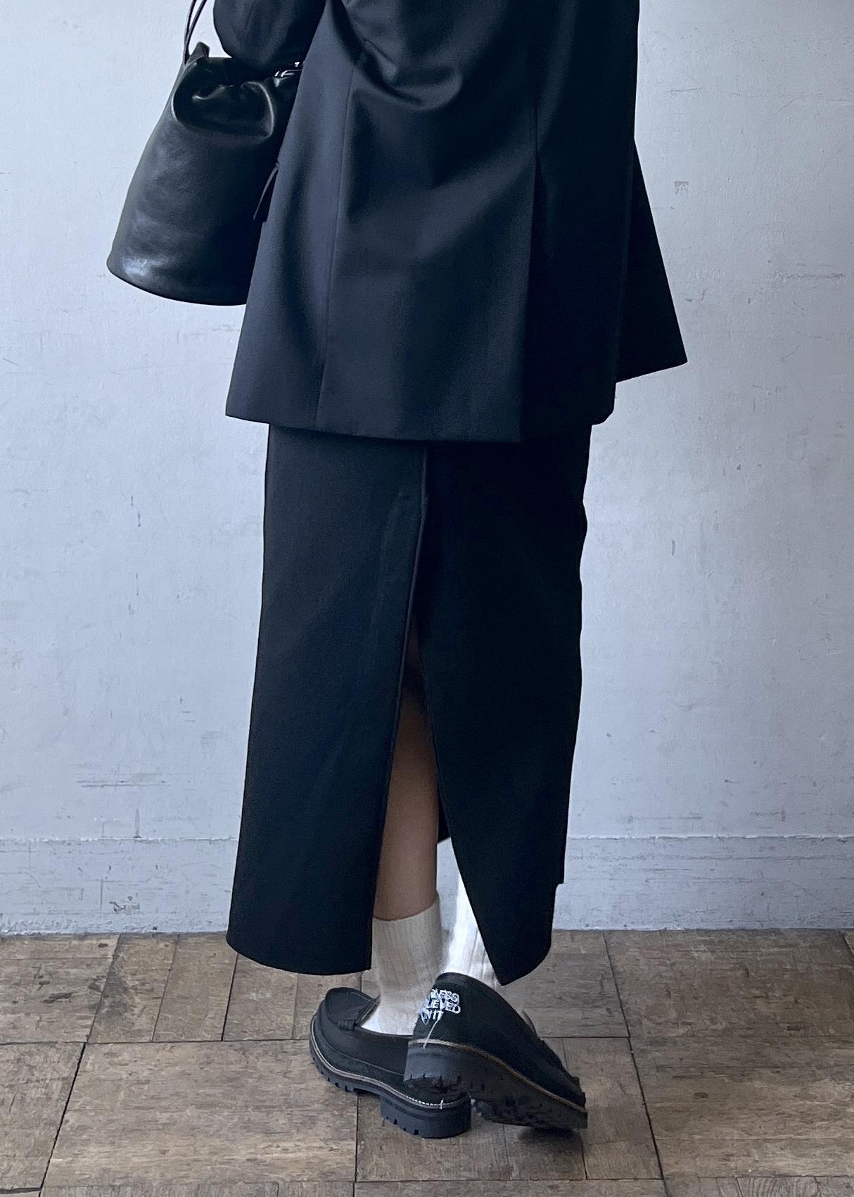 きちんと感がありつつ、足元で程よく外した大人のブラックコーデです。