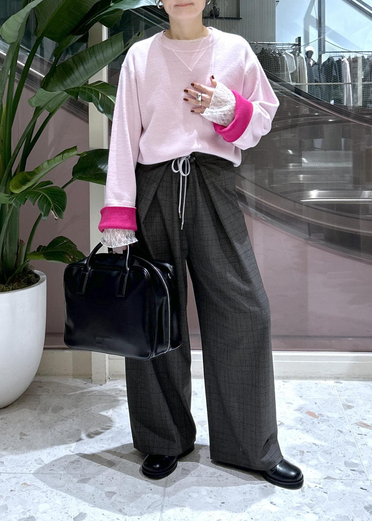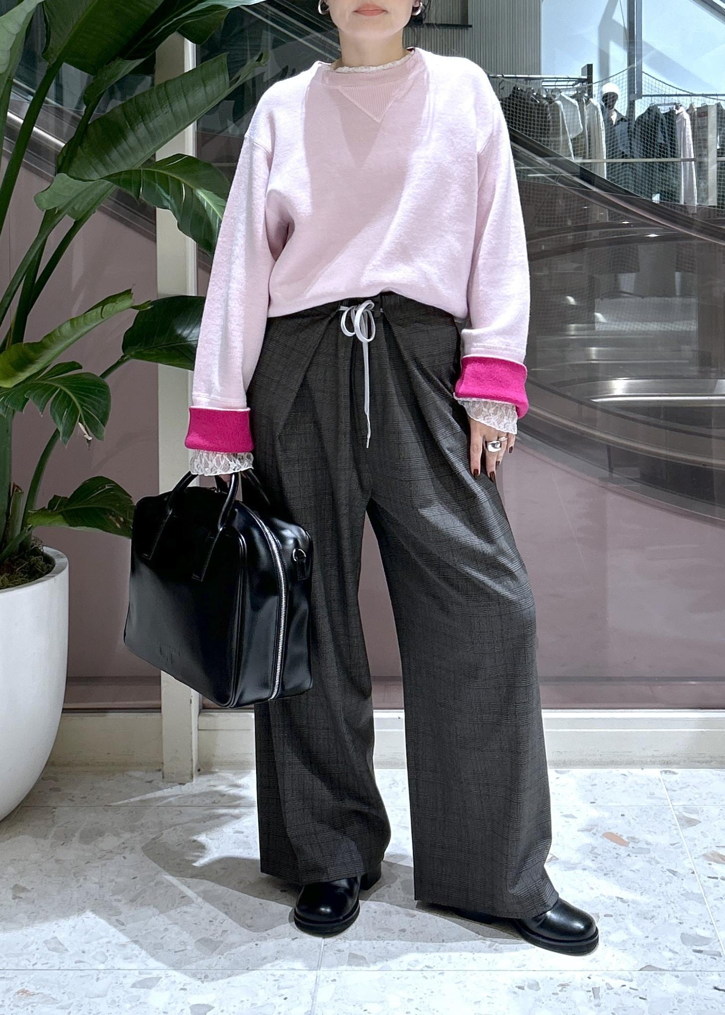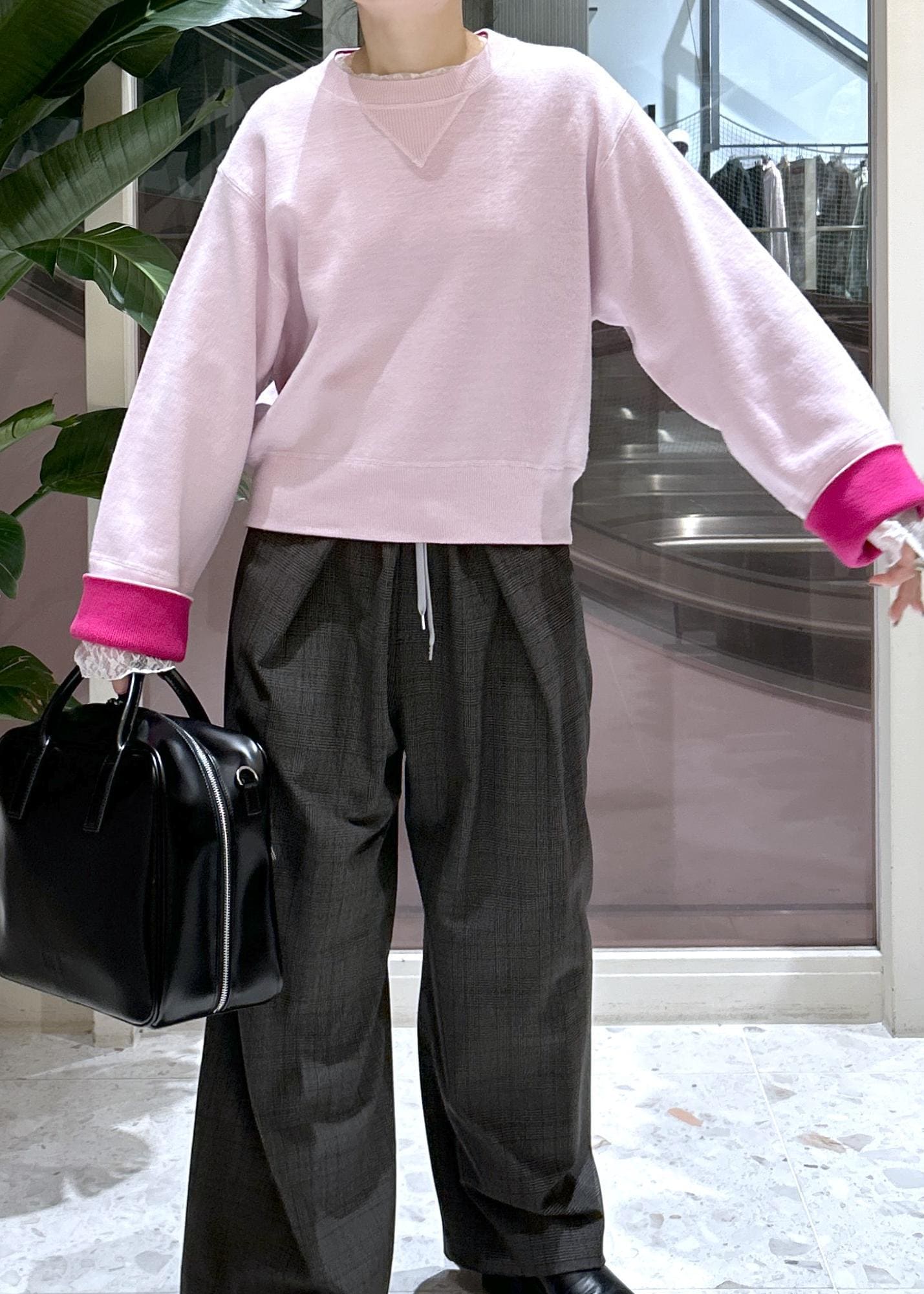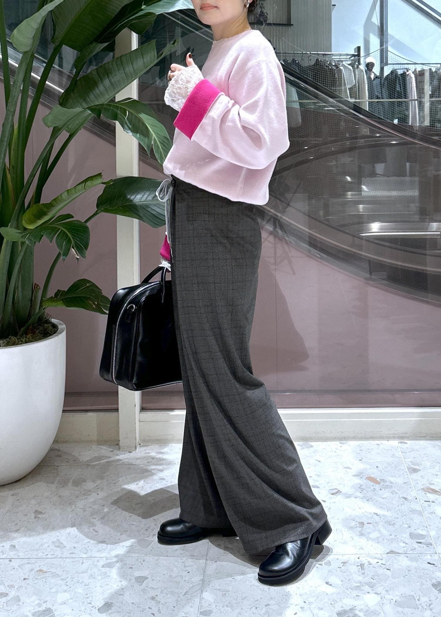 柔らかい素材で落ち感もあるので、ゆったりしたサイズ感でも着膨れる心配なしです。