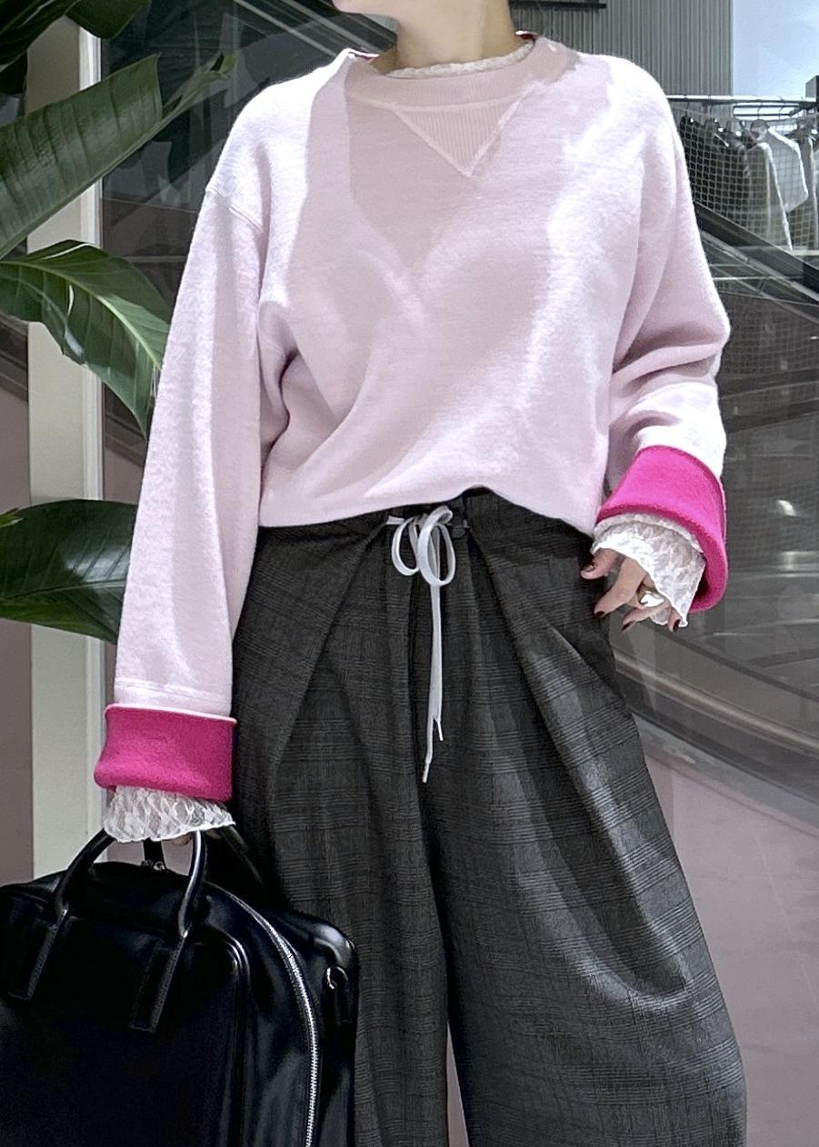 淡いピンクは中が濃いピンクなので袖先を折り返してチラッと見せるのもお勧め。