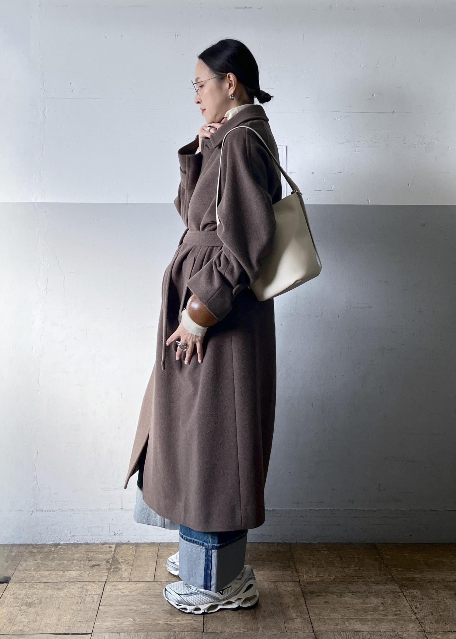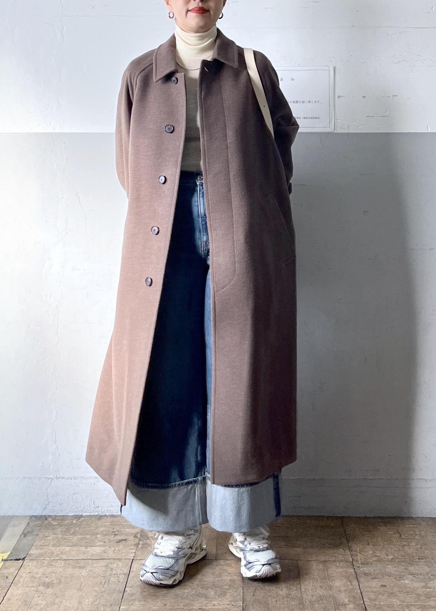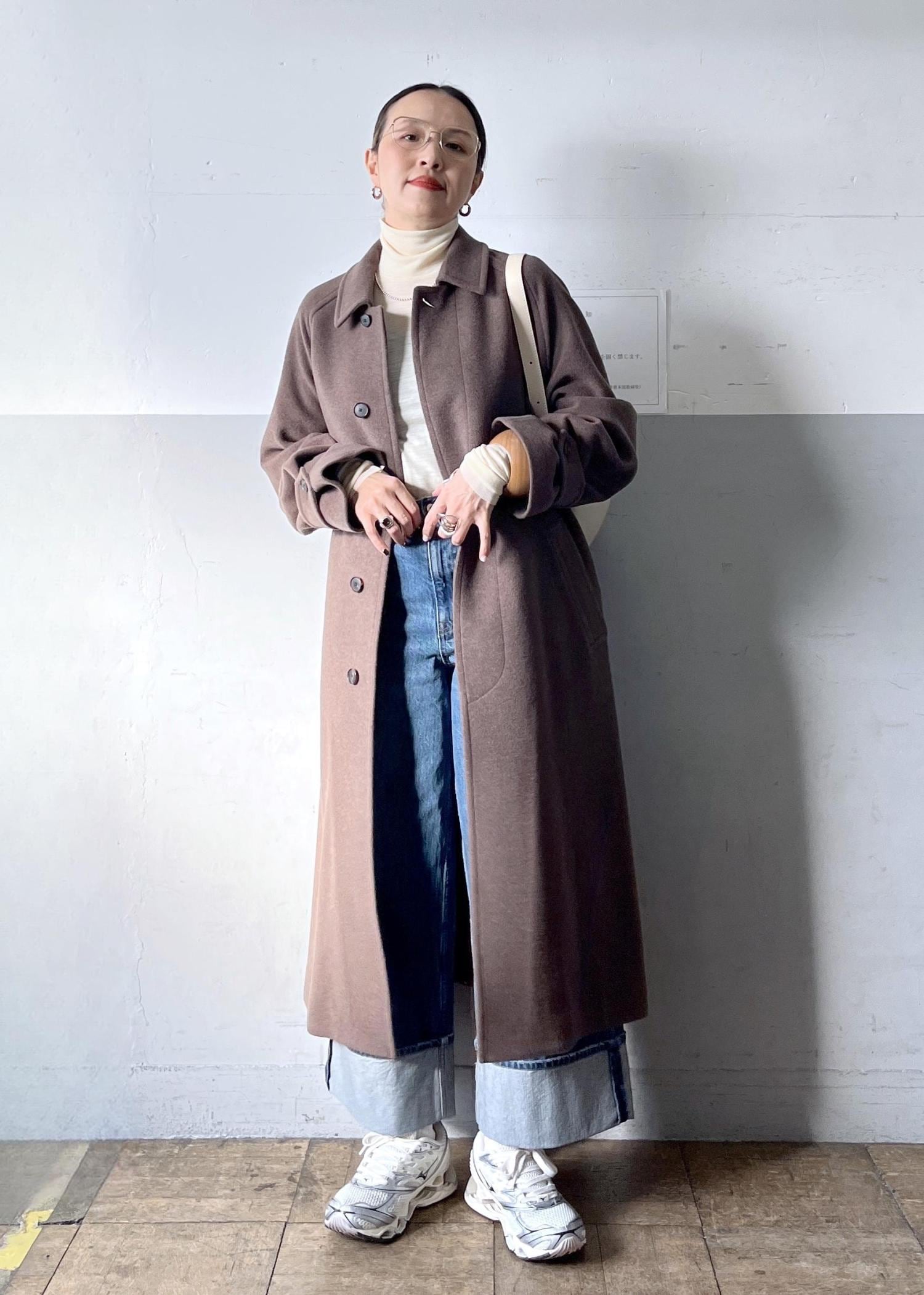 AURALEEのウールステンカラーコートを主役に、春の新作デニムを合わせて。