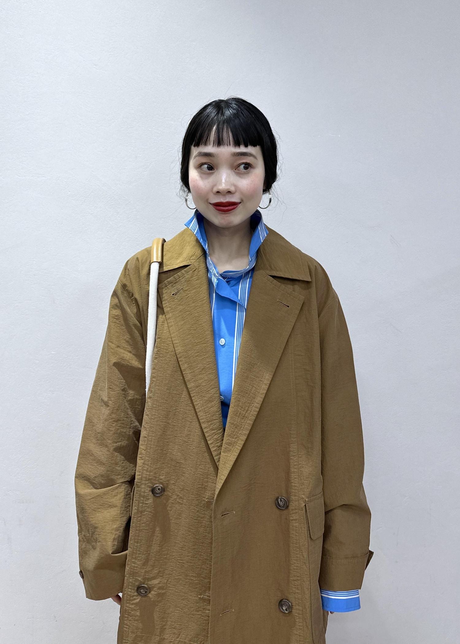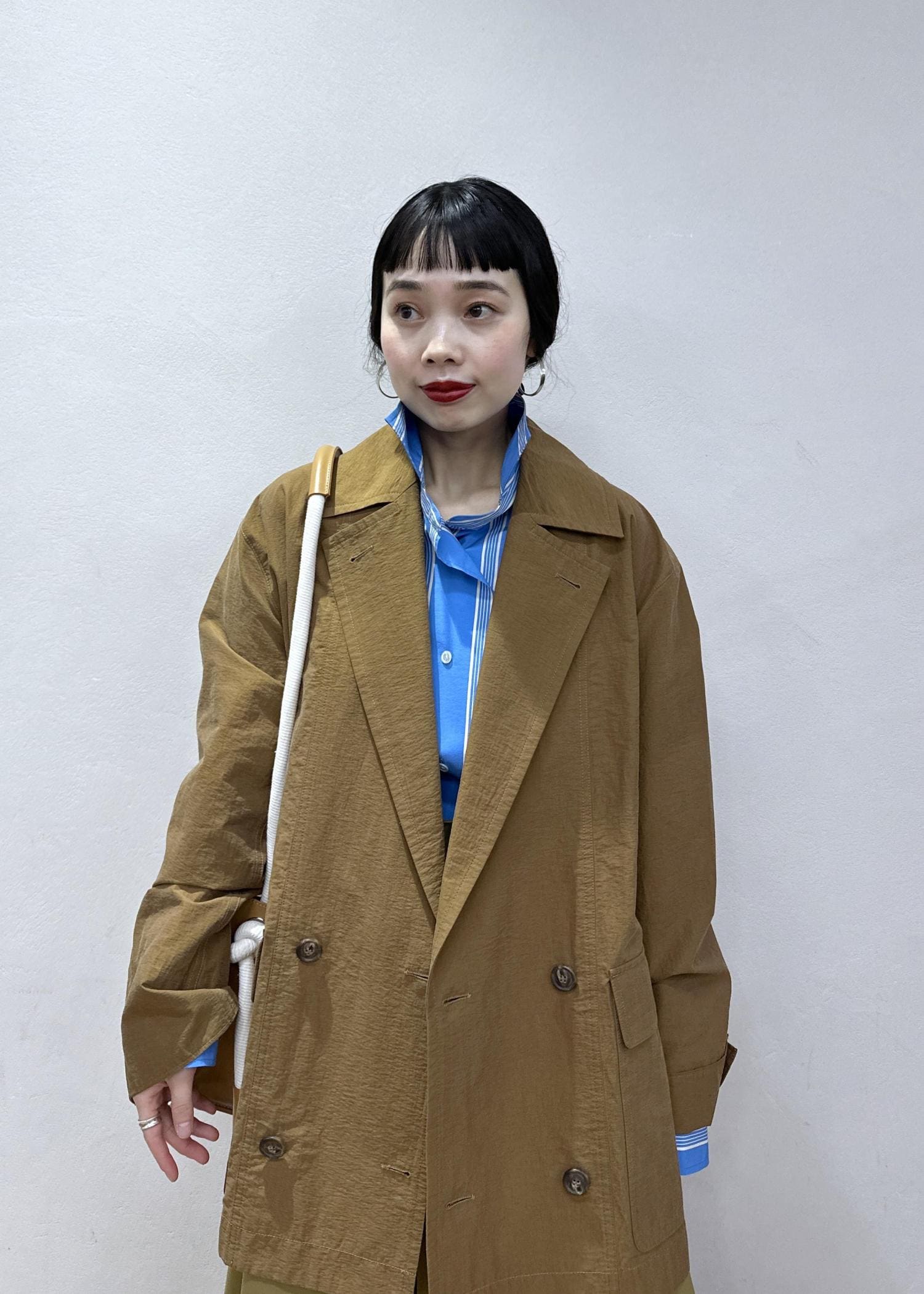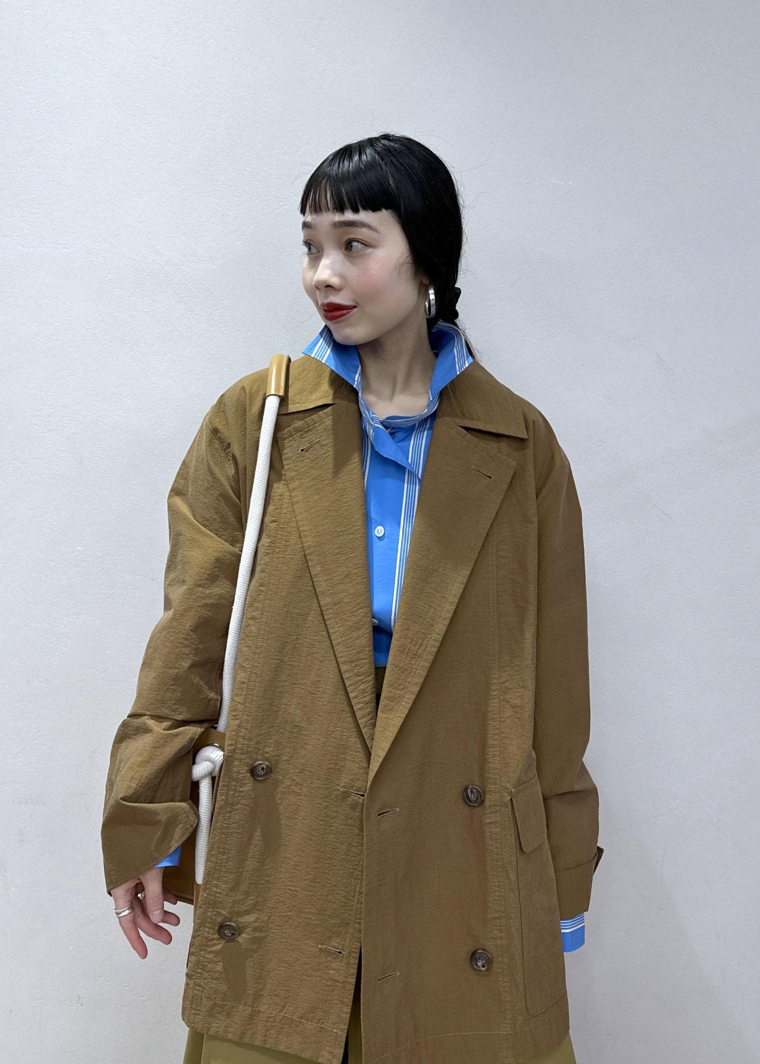 ポイントでブルーシャツを