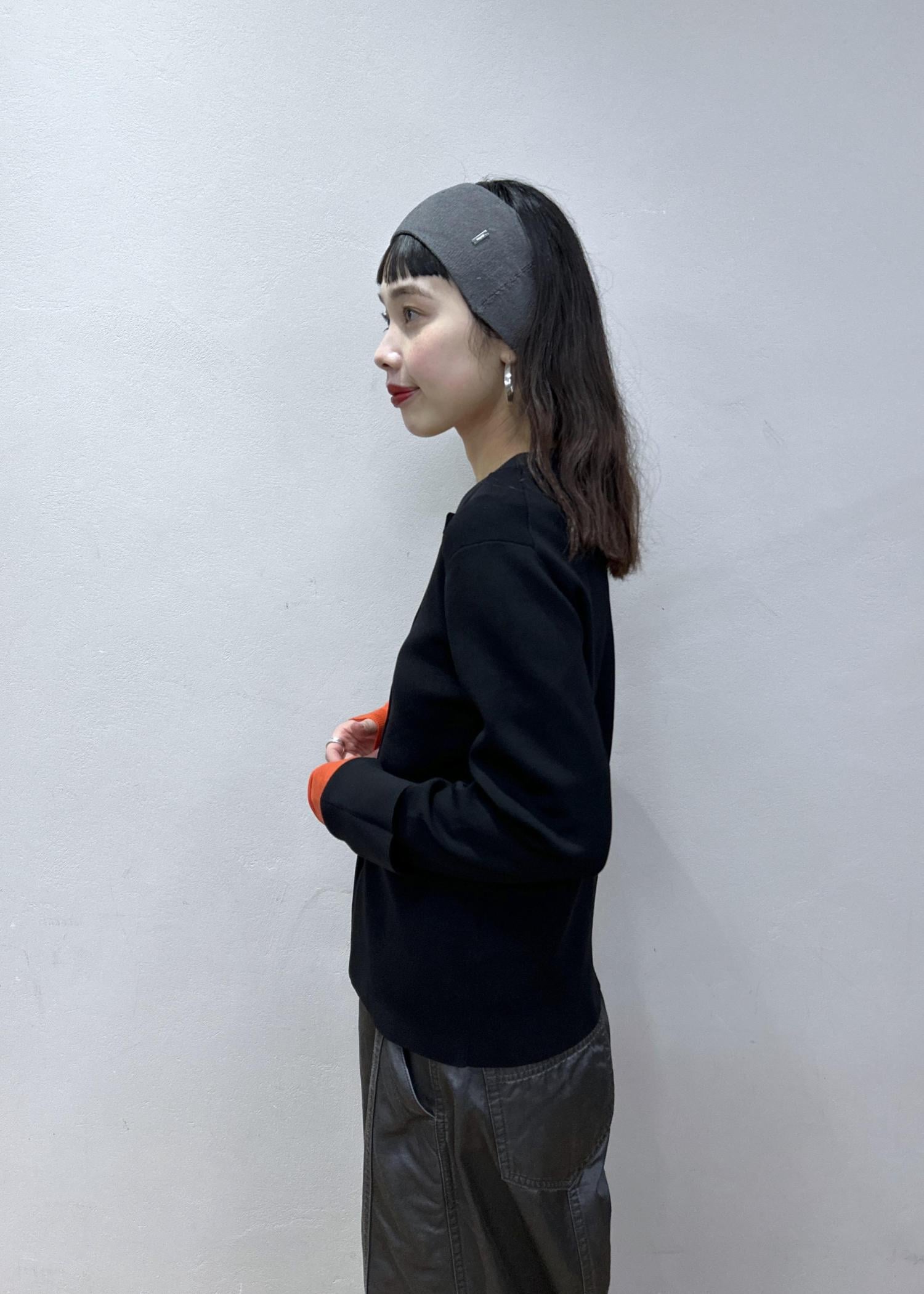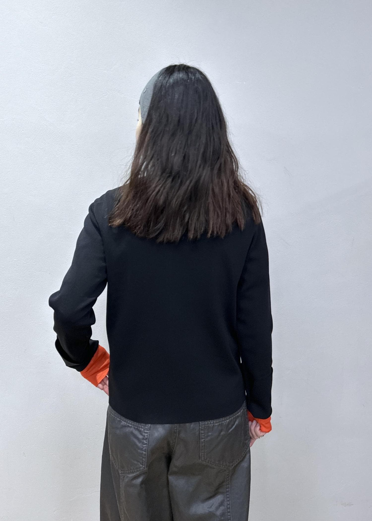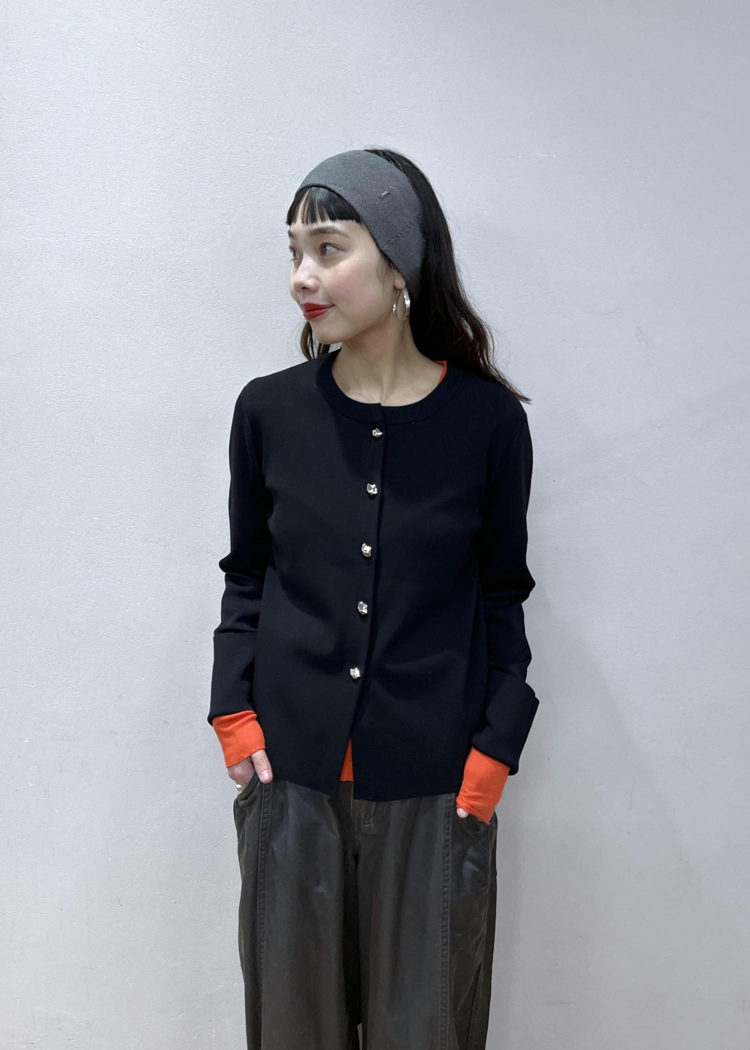差し色にオレンジカラーのインナーを