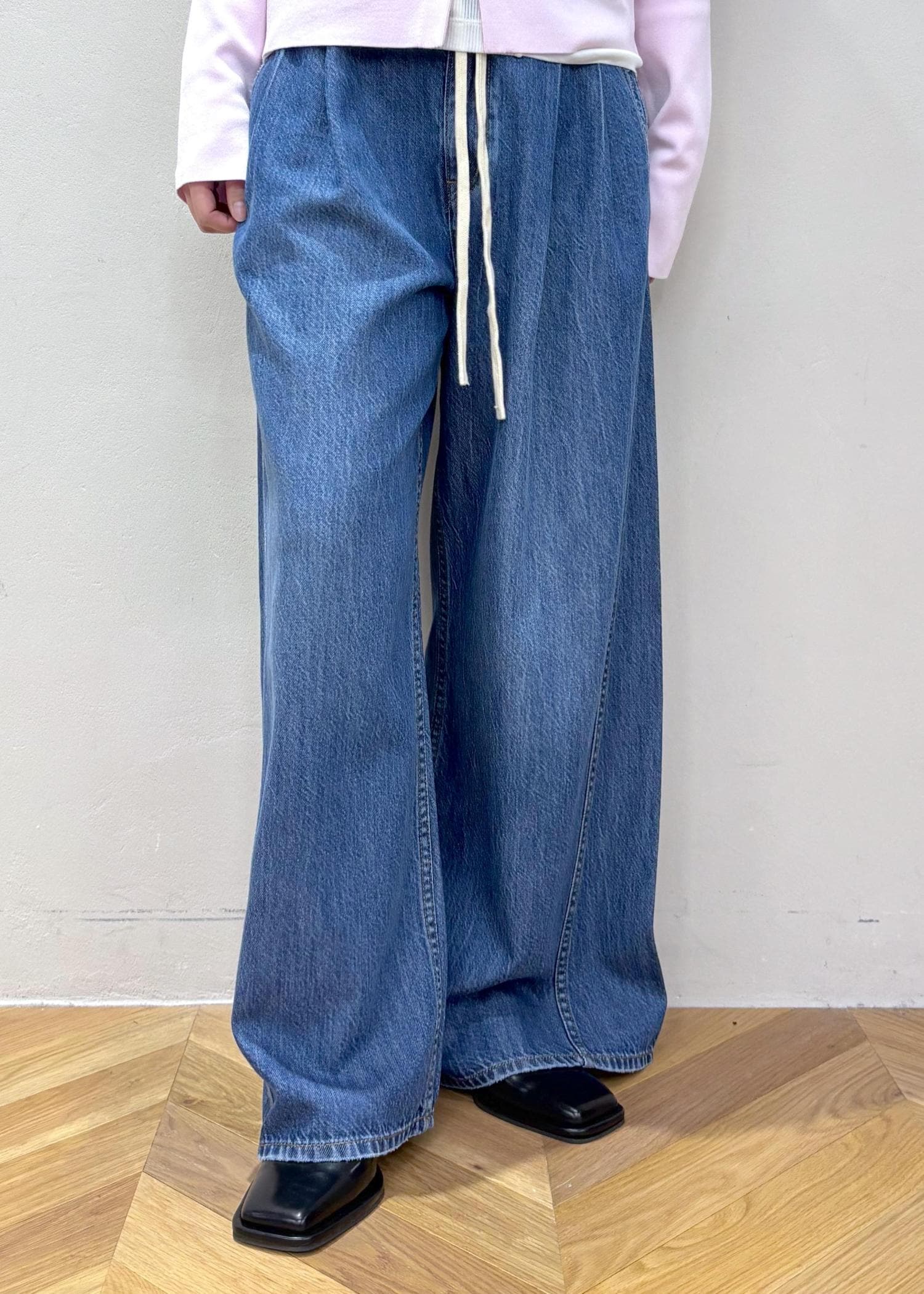 シアーのトップスを中に仕込んで、