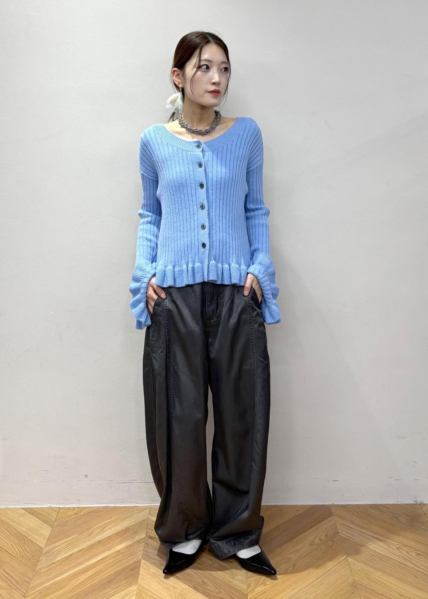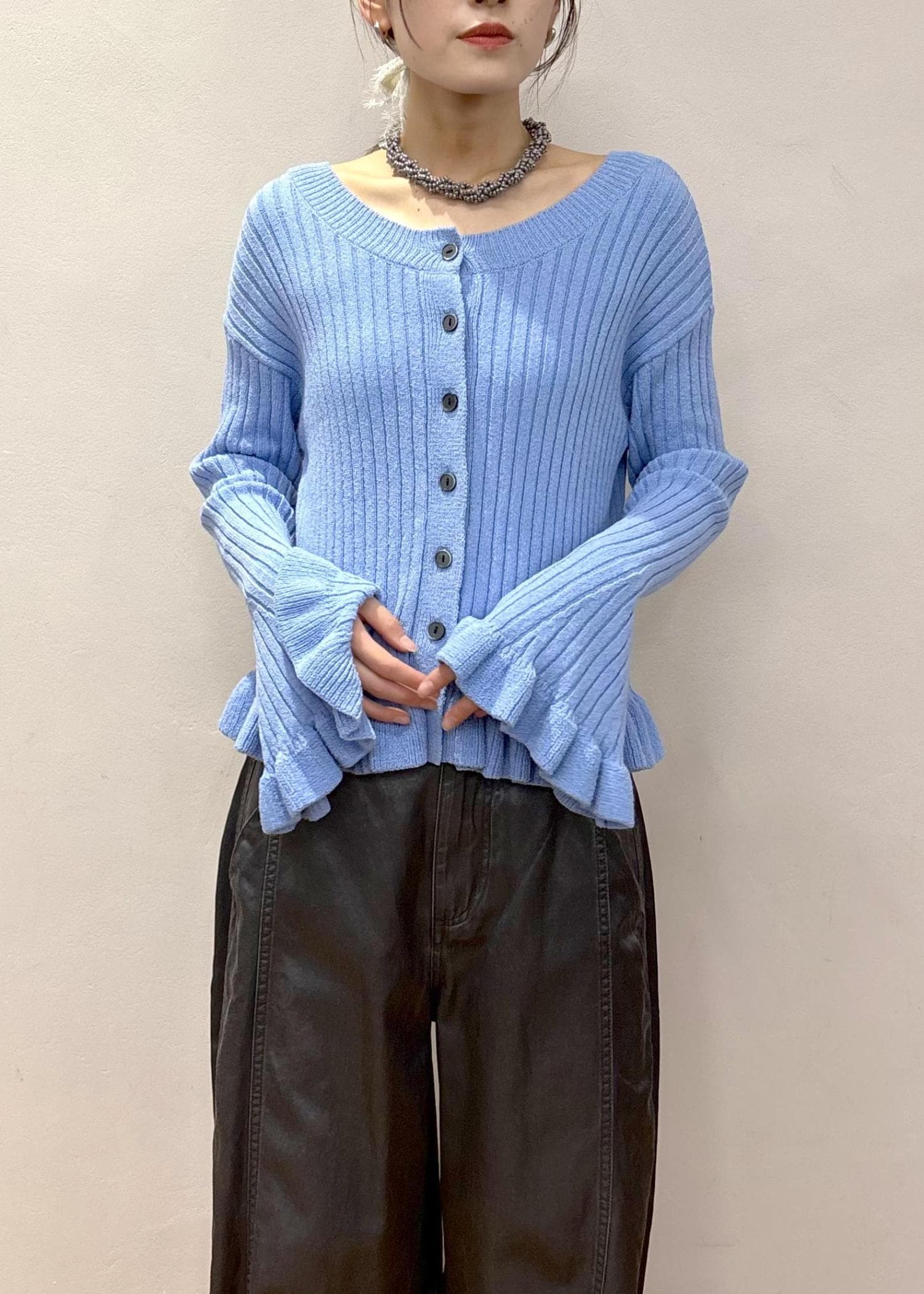 【WEB限定】2WAYフリルリブカーディガン