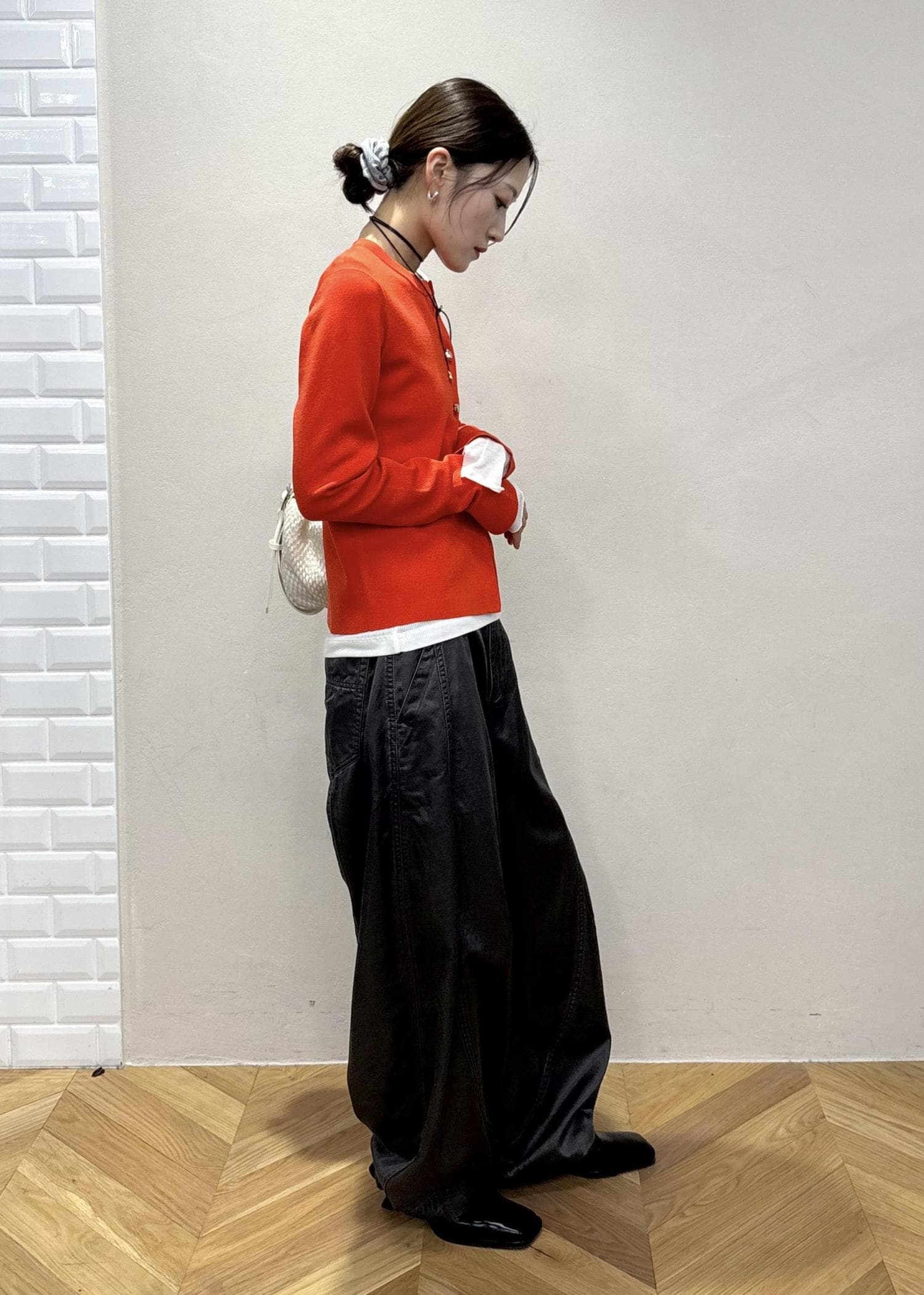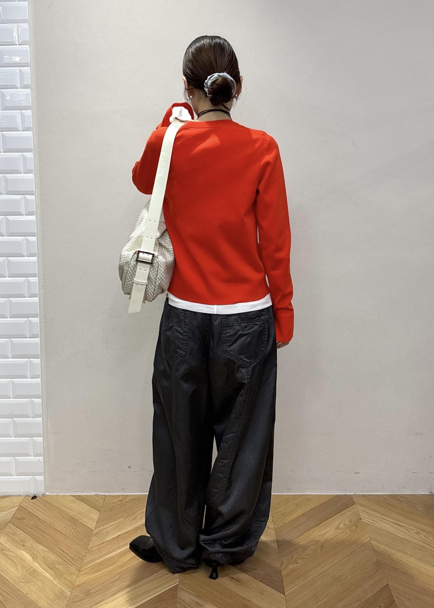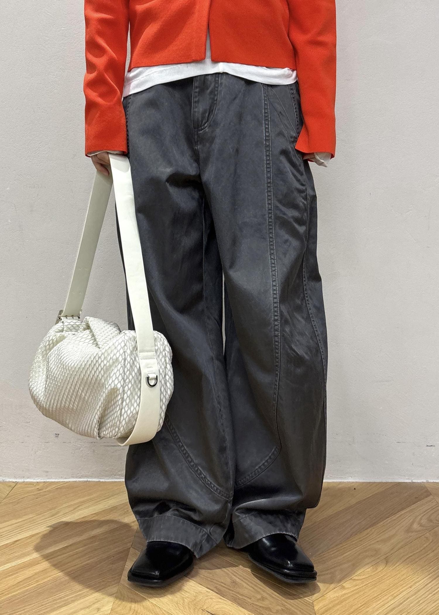 ボリューム感のあるパンツと合わせてカジュアルコーデにしました!