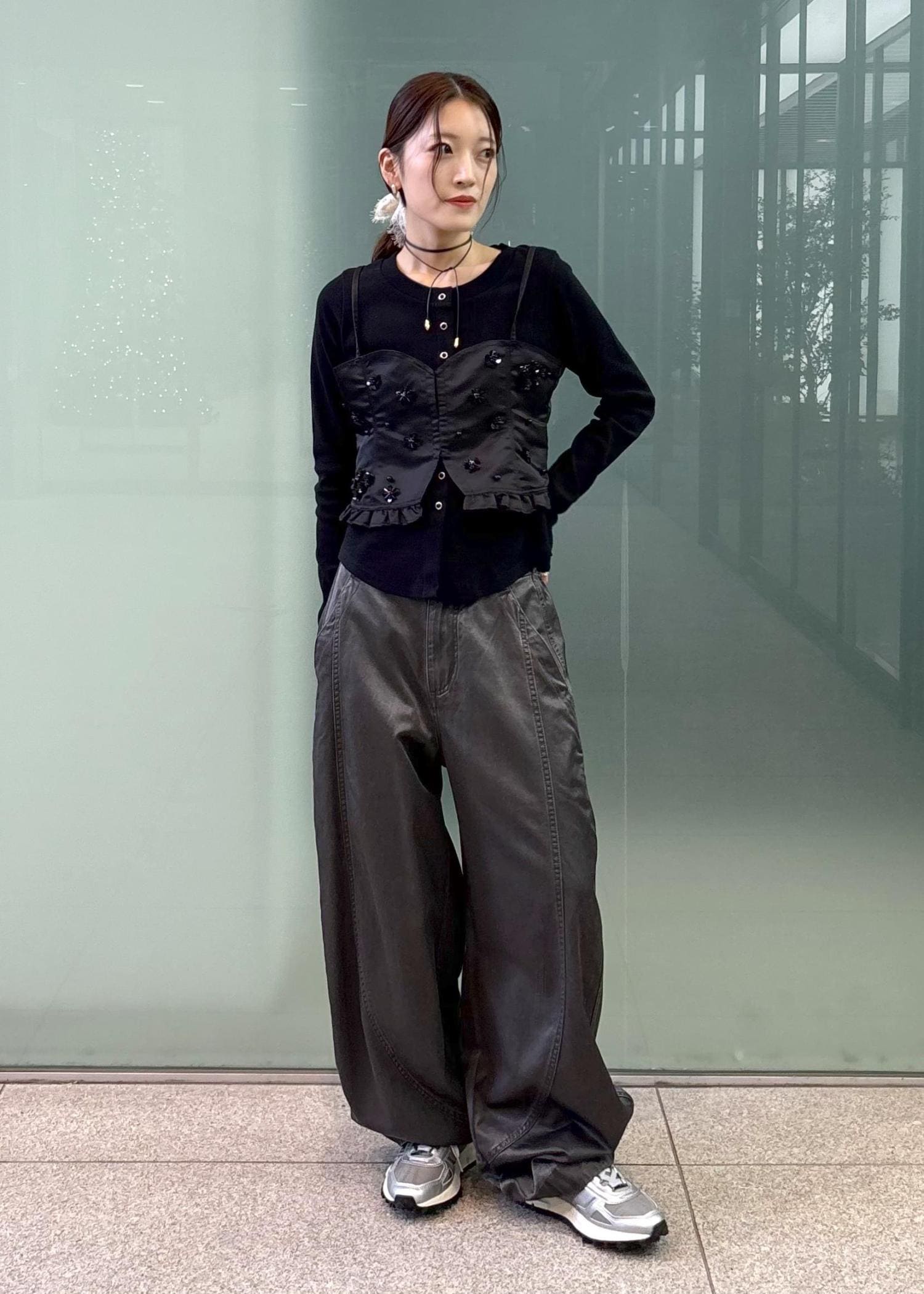 コンパクトなトップスなので、ボリュームシルエットのパンツと相性良いです!