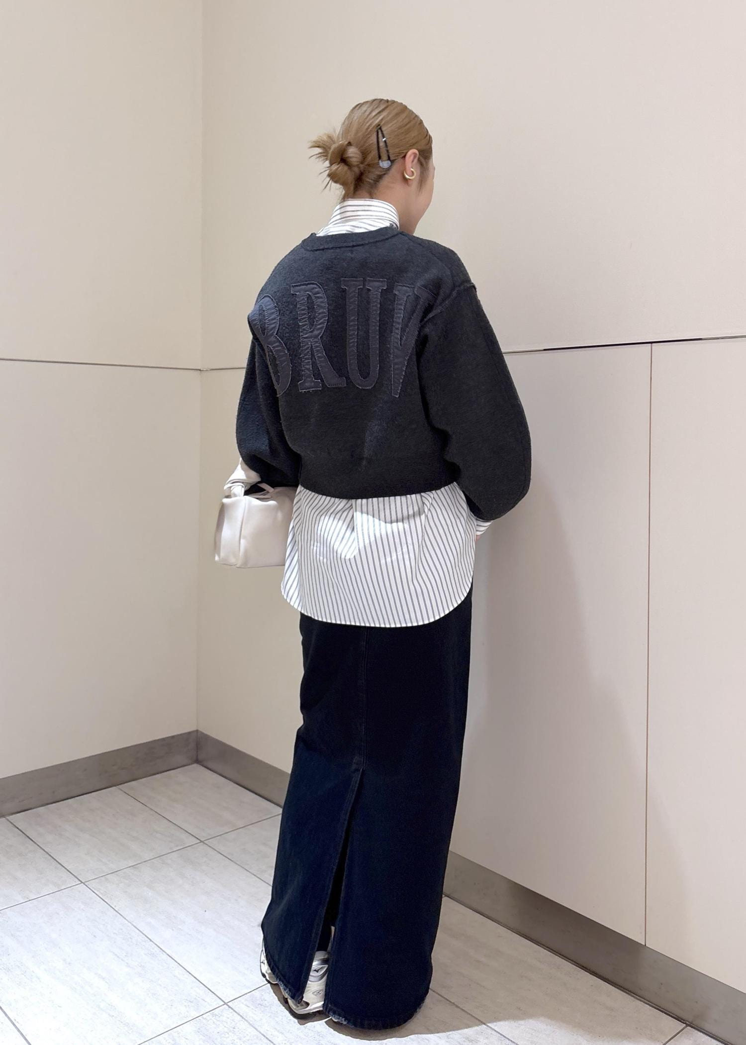 今回は36サイズのコンパクトな着丈にシャツをレイヤードし、今年らしいバランスで着用してみました♪