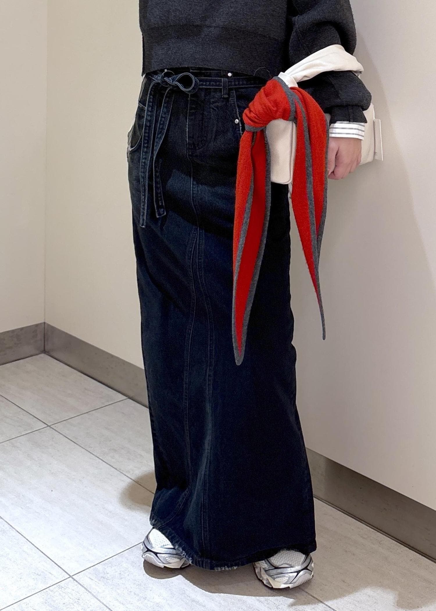 足元には、リアルバイしたMIZUNO(ミズノ)のスニーカーを合わせ、少しカジュアルなトーンをプラスしています。