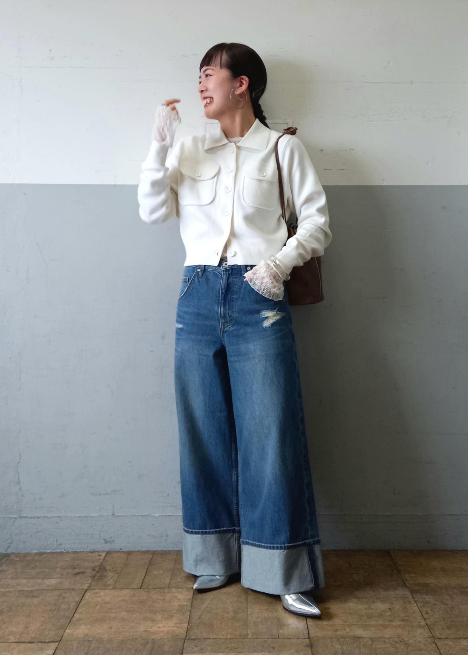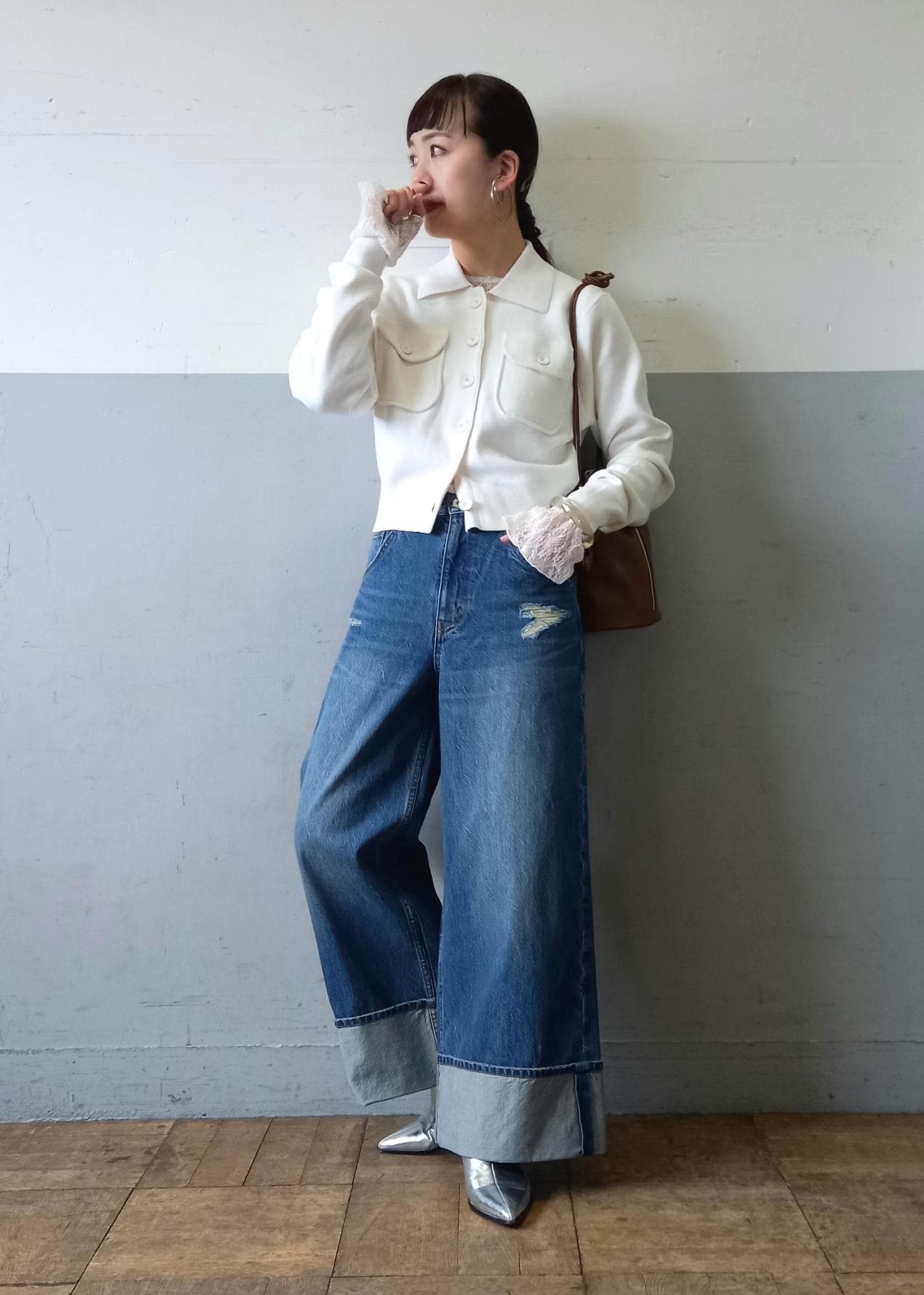 今回は折り返しのデザインが映えるワイドデニムと☺️♪