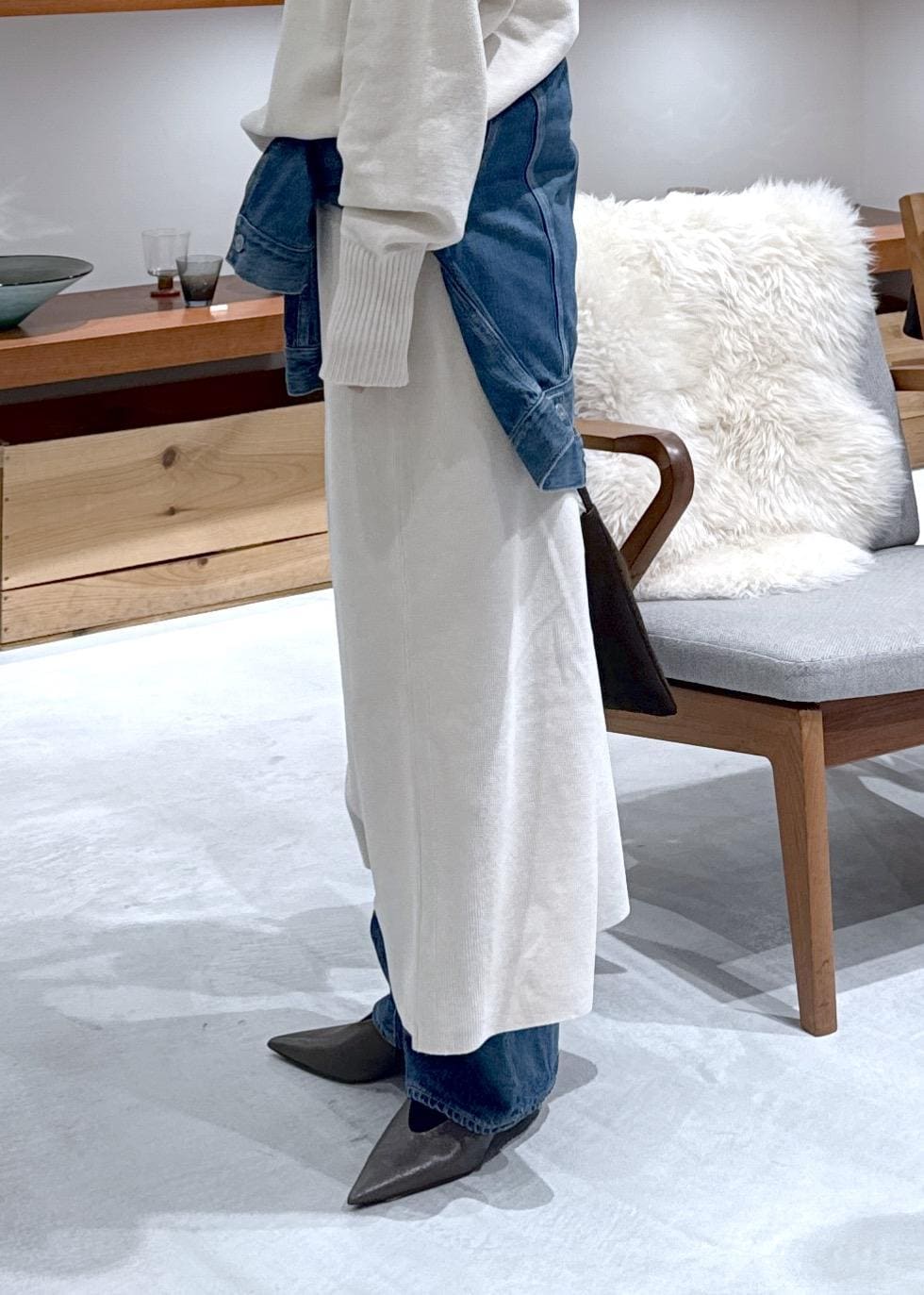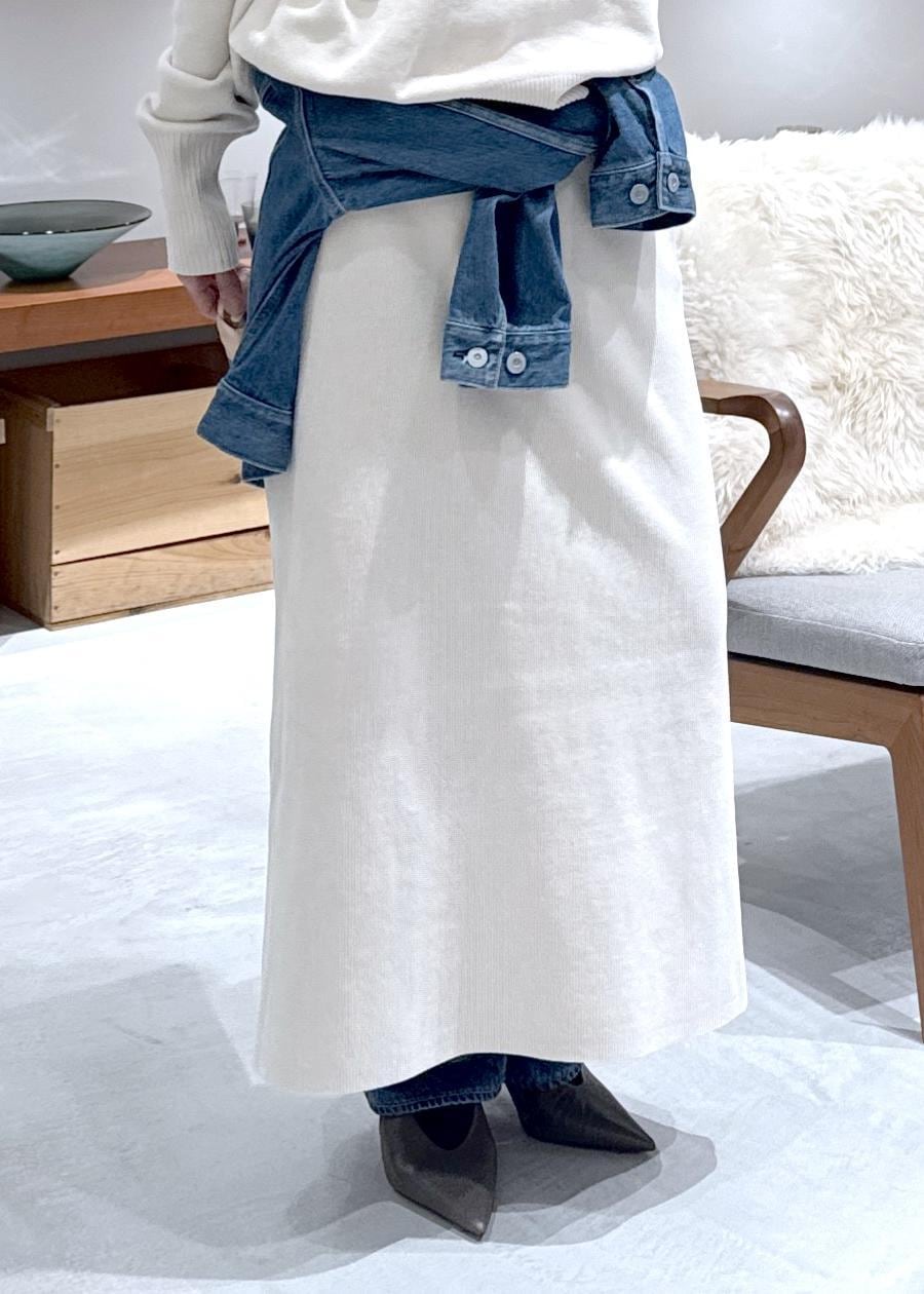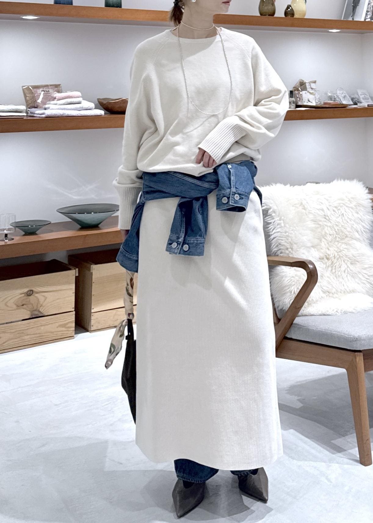 SALON adam et ropéナローロングスカート-CreamyCotton /クリーミーコットン-オフホワイト / F¥23,100レビュー程よくフィットしますが、身体のラインを拾わないサイズ感です。