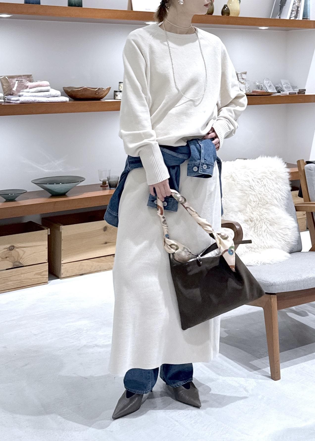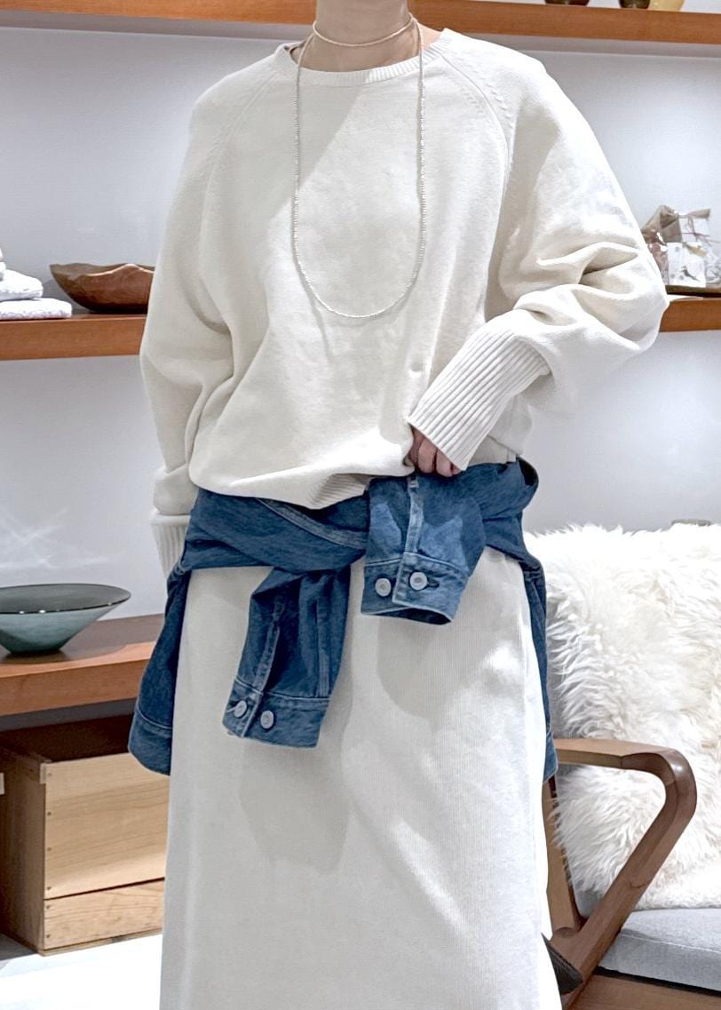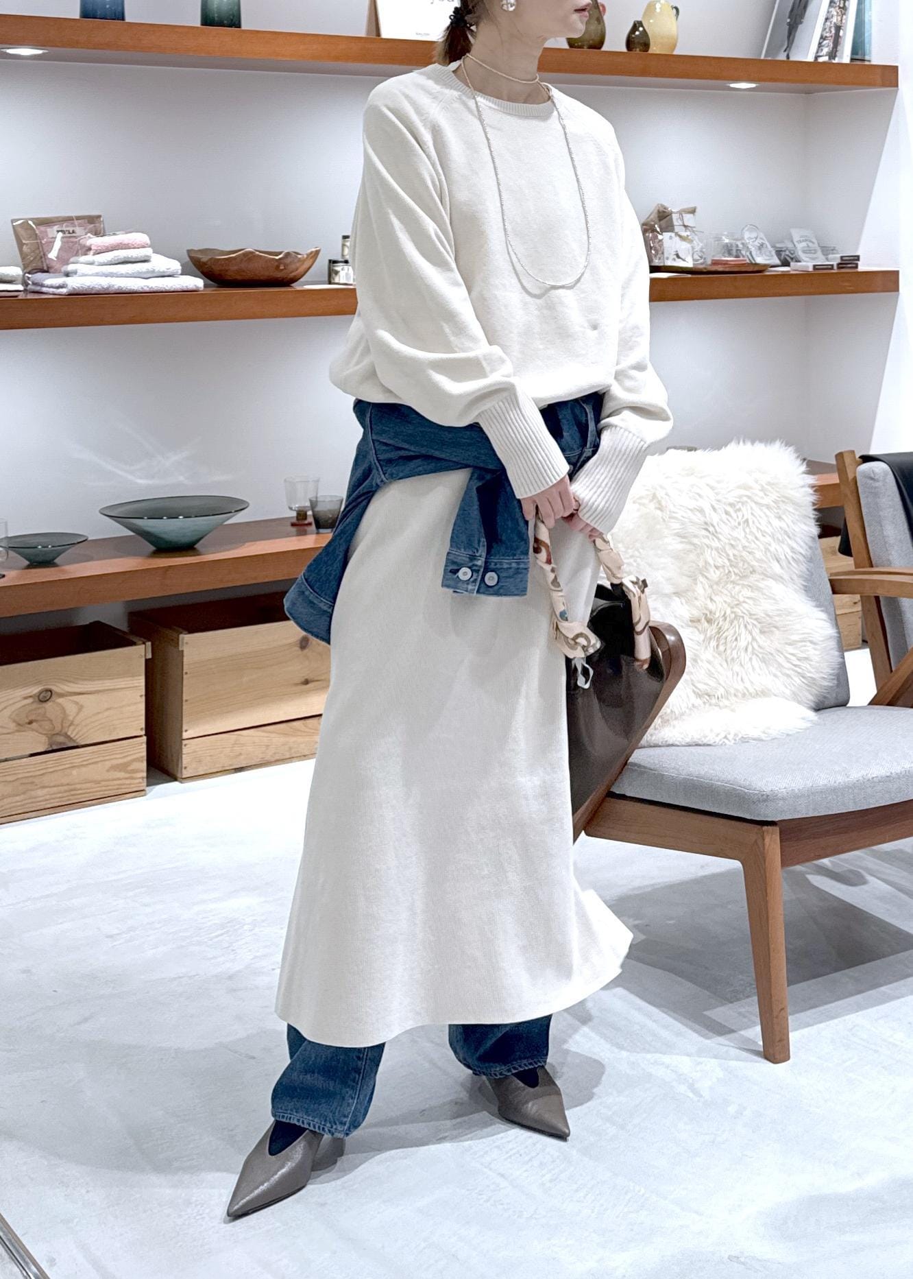 SALON adam et ropéナローロングスカート-CreamyCotton /クリーミーコットン-オフホワイト / F¥23,100レビュー程よくフィットしますが、身体のラインを拾わないサイズ感です。