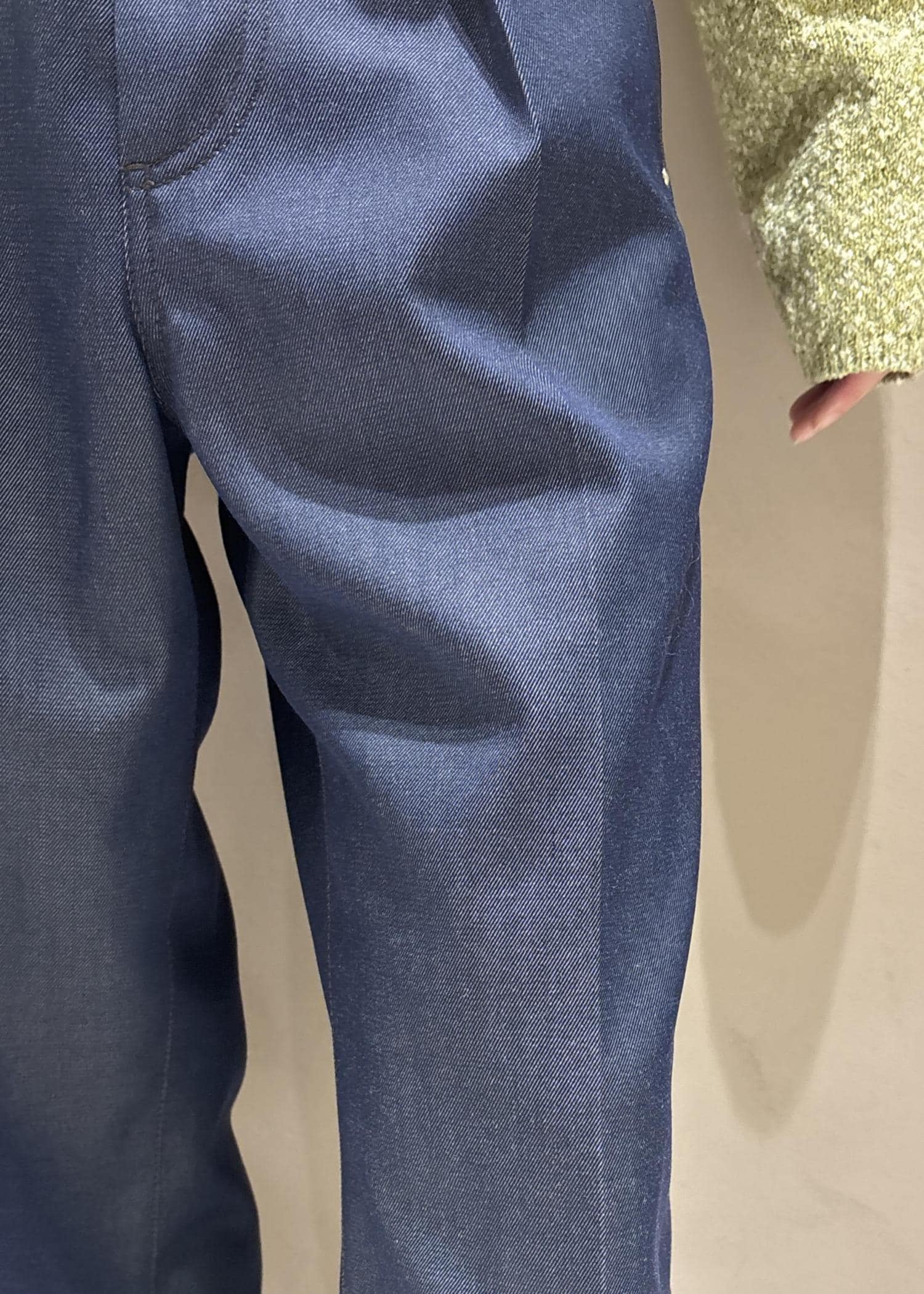 ADAM ET ROPÉ FEMMENIKKE TW DENIM PANTSネイビー / 36¥24,200レビューシルエットがワイドすぎないので綺麗めにも合わせやすいです☺︎ウールが入っていますがチクチク感は強くないです!丈は156cmサイズ36着用で床に少し着くくらいです。ヒールを履くとちょうどいい長さになります♪