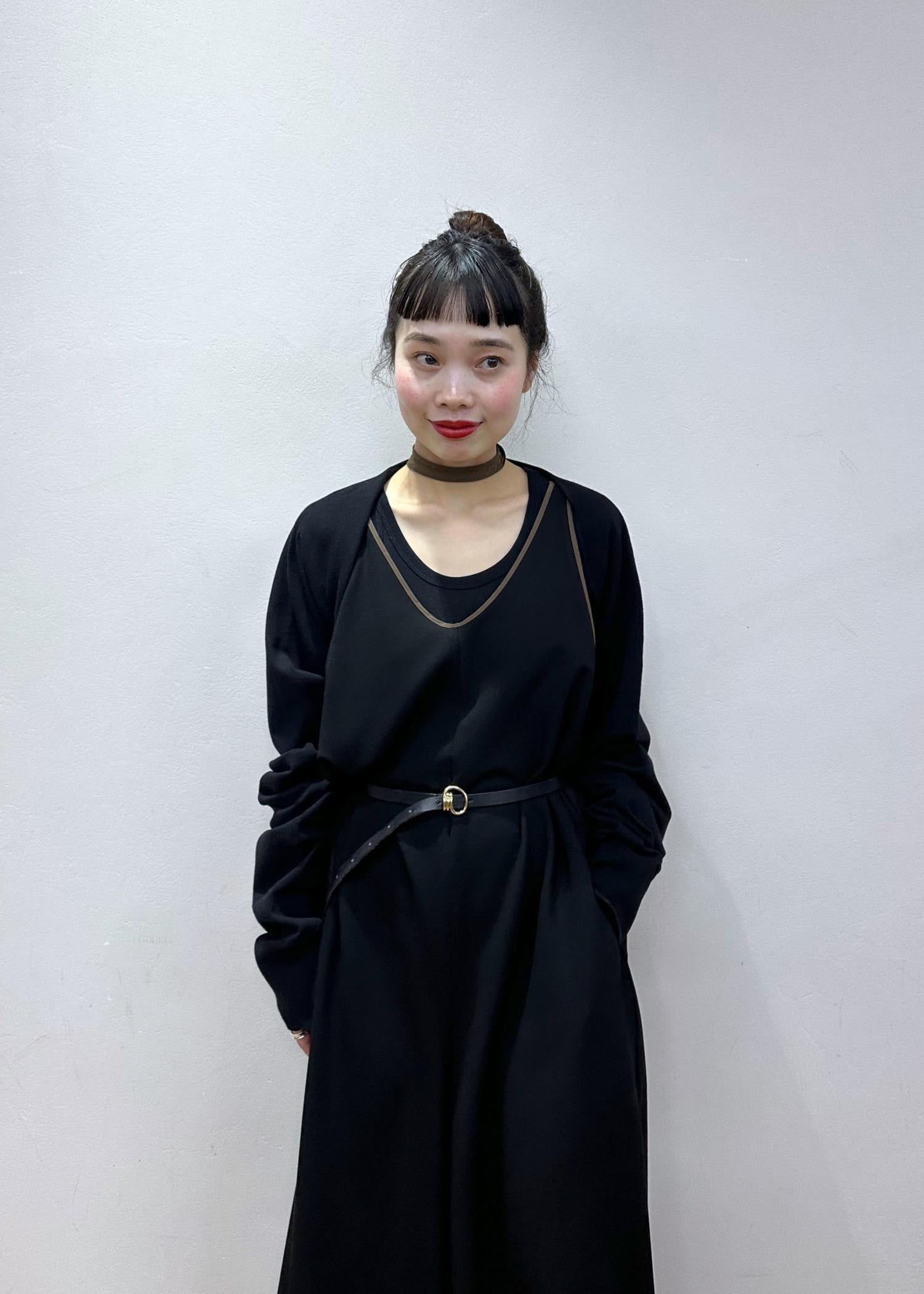 今ですとリブタートルのニットをレイヤードしてても◎。