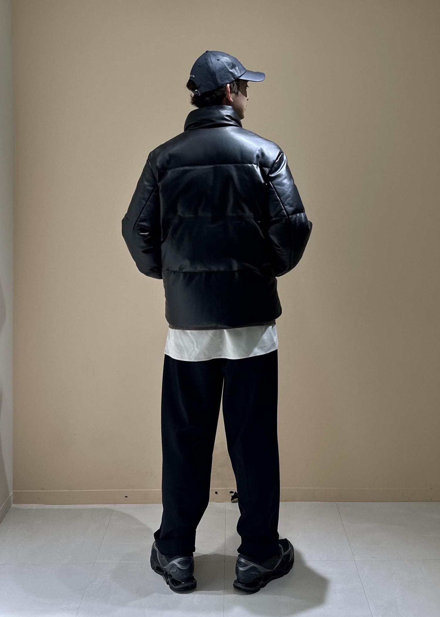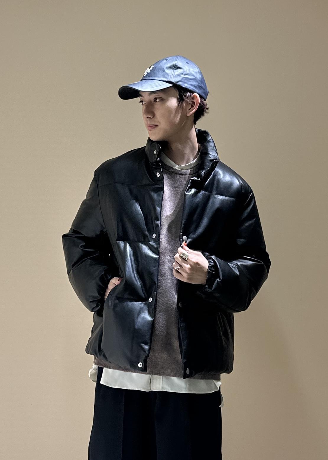 羊革を使用したレザーダウンジャケット。本革製品とは思えないほど軽やかで、滑らかな触り心地です。厳つい雰囲気は弱く、綺麗め寄りな雰囲気です。しっかり暖かく風も通さないので冬に大活躍間違いなしです。 -