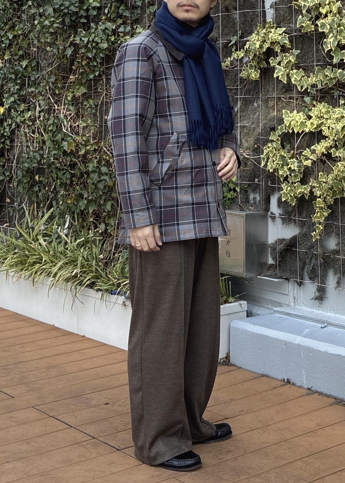 今回着用したアダムエロペ別注のビデイルはノンオイルで、リバーシブルで着れるという仕様で、今回はチェック側をメインに着用しました!