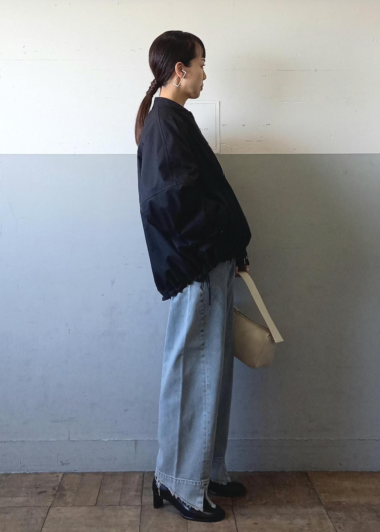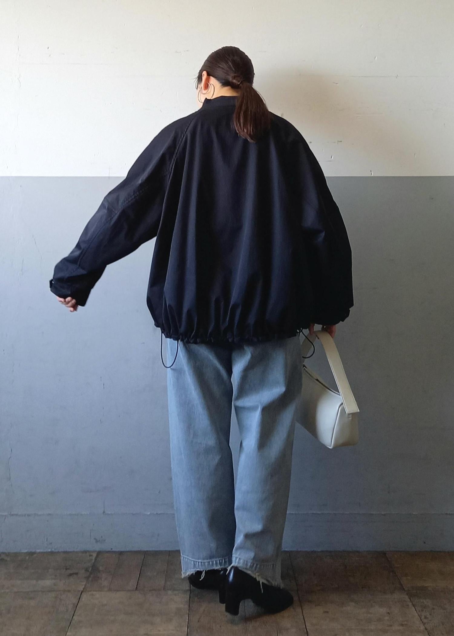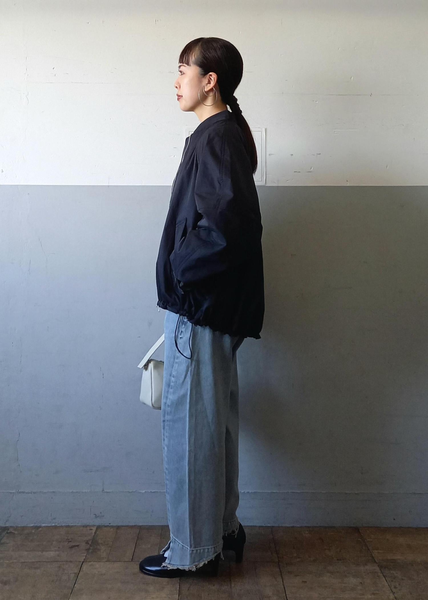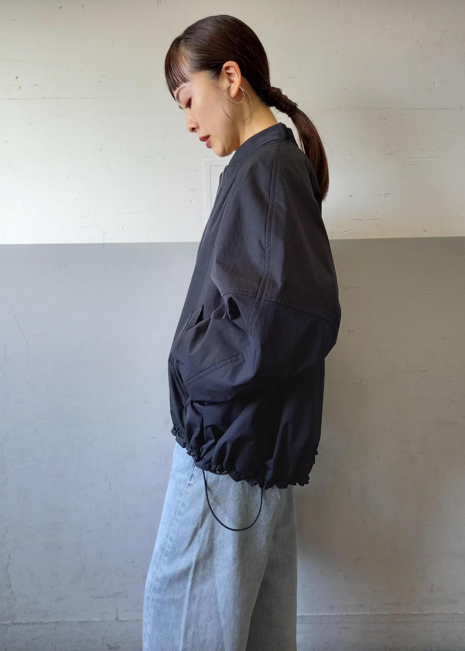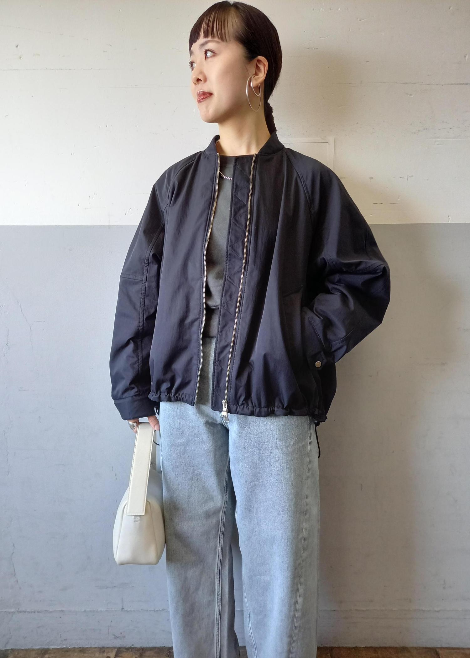 ブルゾンと言っても袖口や裾はリブ仕様ではないのでカジュアルすぎずきれい目にも合わせていただきやすいです☺️テントラインでも、裾のドローコードを絞って丸みのあるフォルムでも着れるのでシルエットの変化を楽しんでいただけますよ✨ -