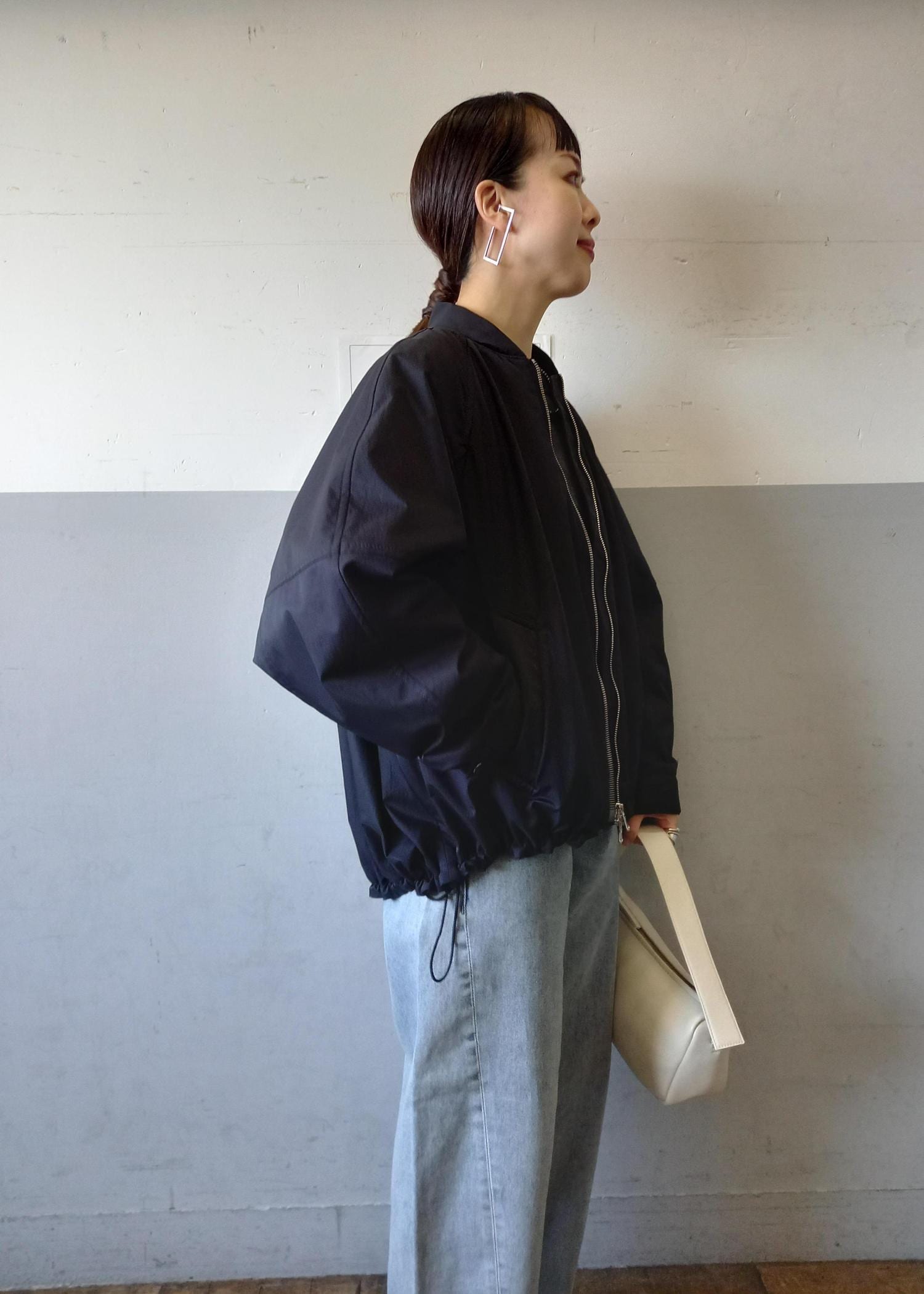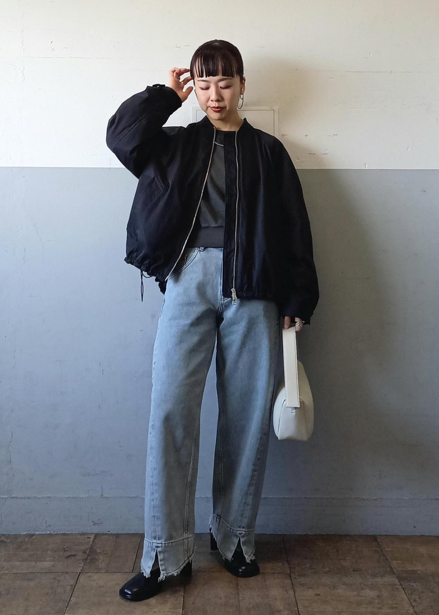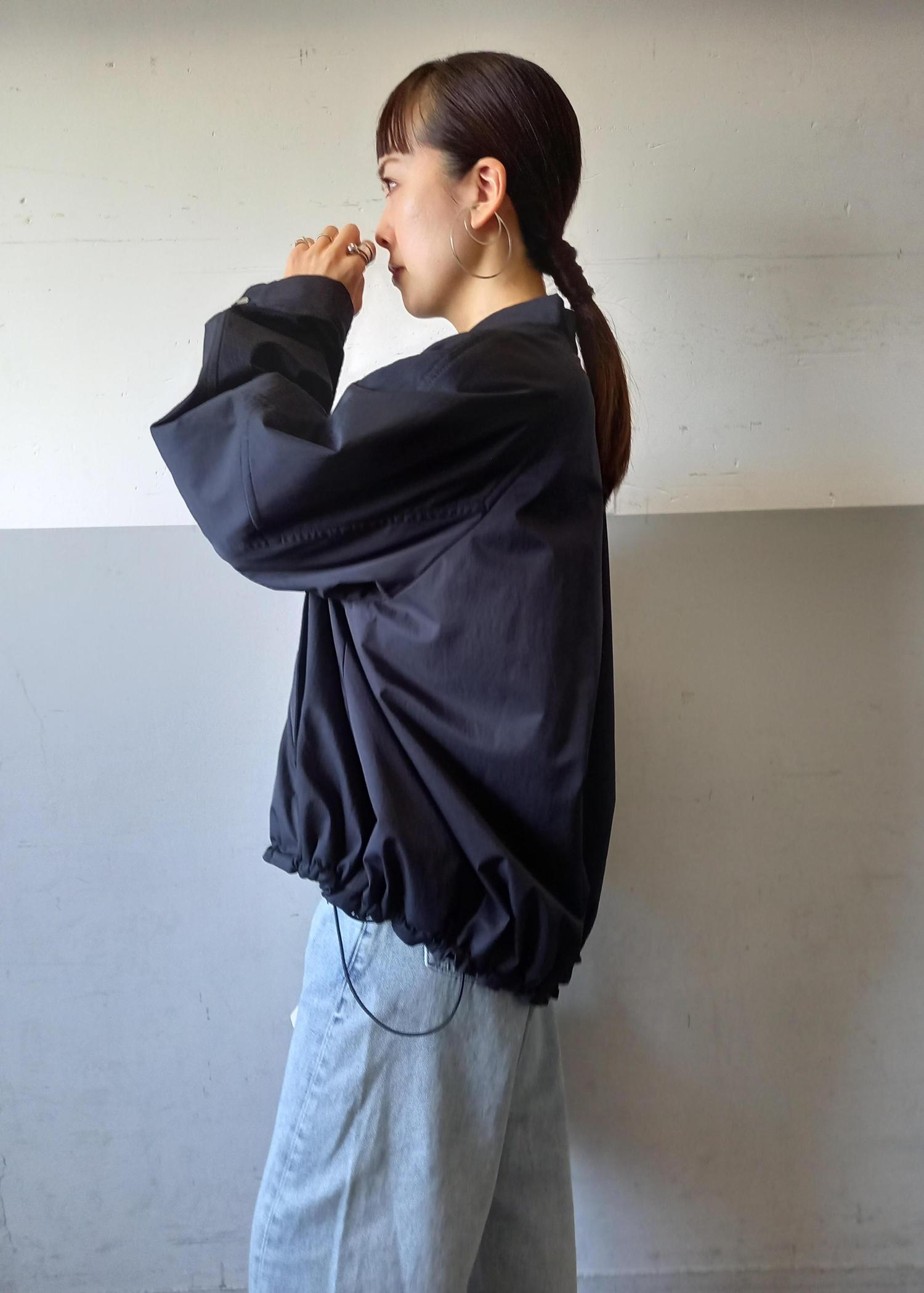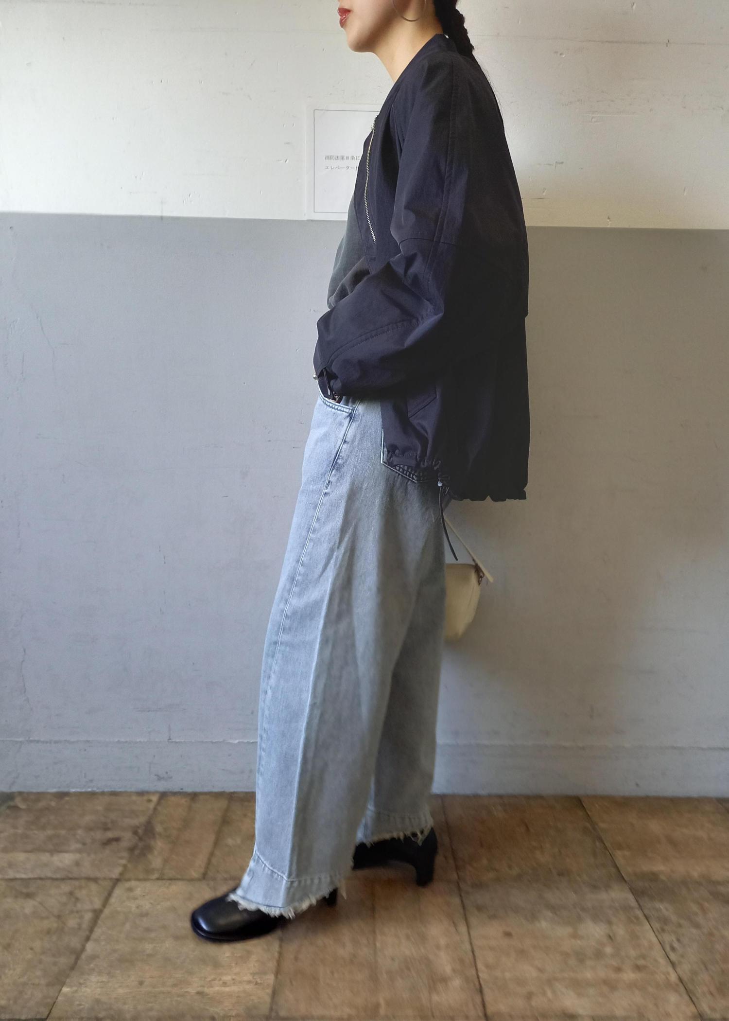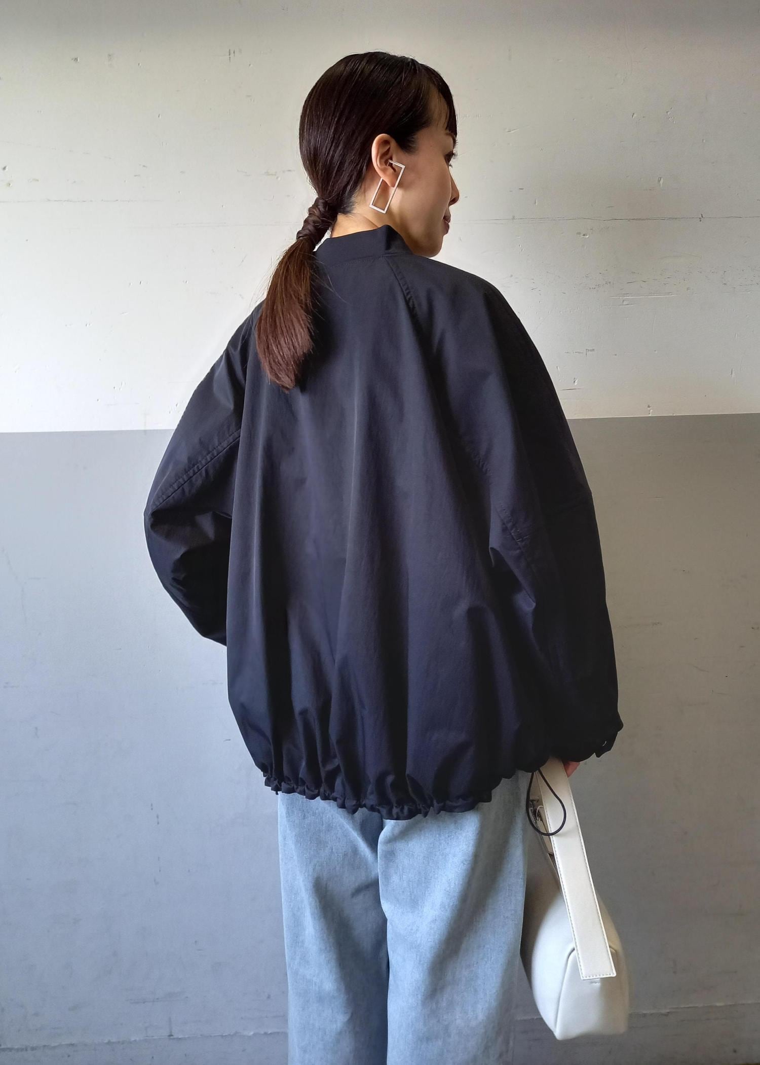 ブルゾンと言っても袖口や裾はリブ仕様ではないのでカジュアルすぎずきれい目にも合わせていただきやすいです☺️テントラインでも、裾のドローコードを絞って丸みのあるフォルムでも着れるのでシルエットの変化を楽しんでいただけますよ✨ -