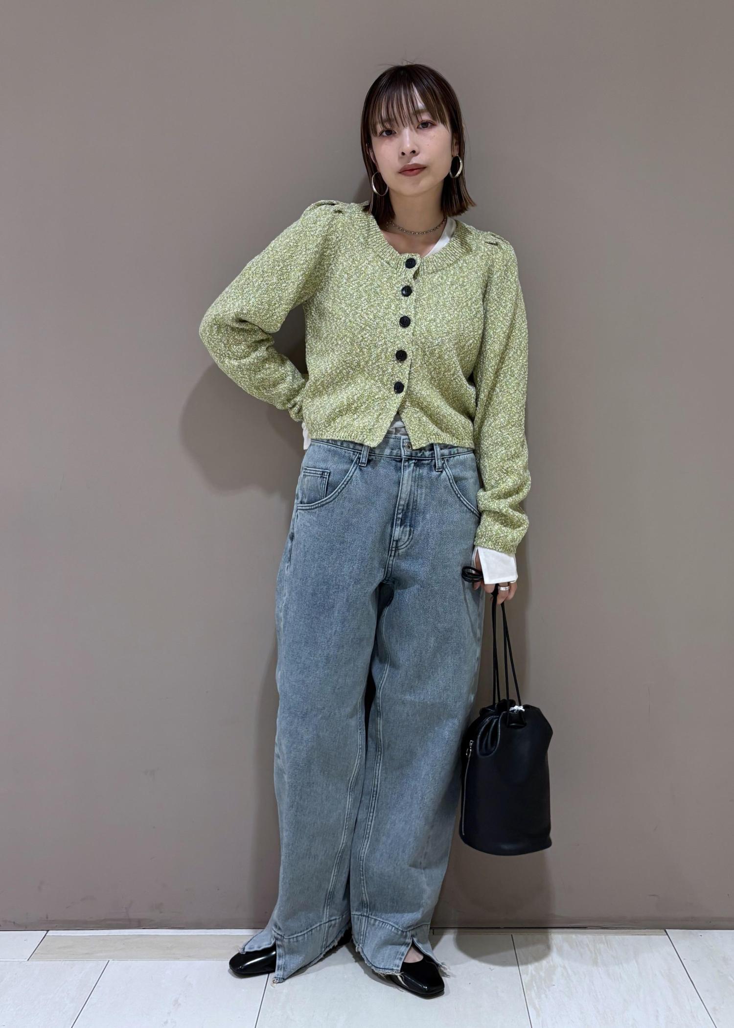 カラーメランジパフスリーブカーディガンを着用しました!