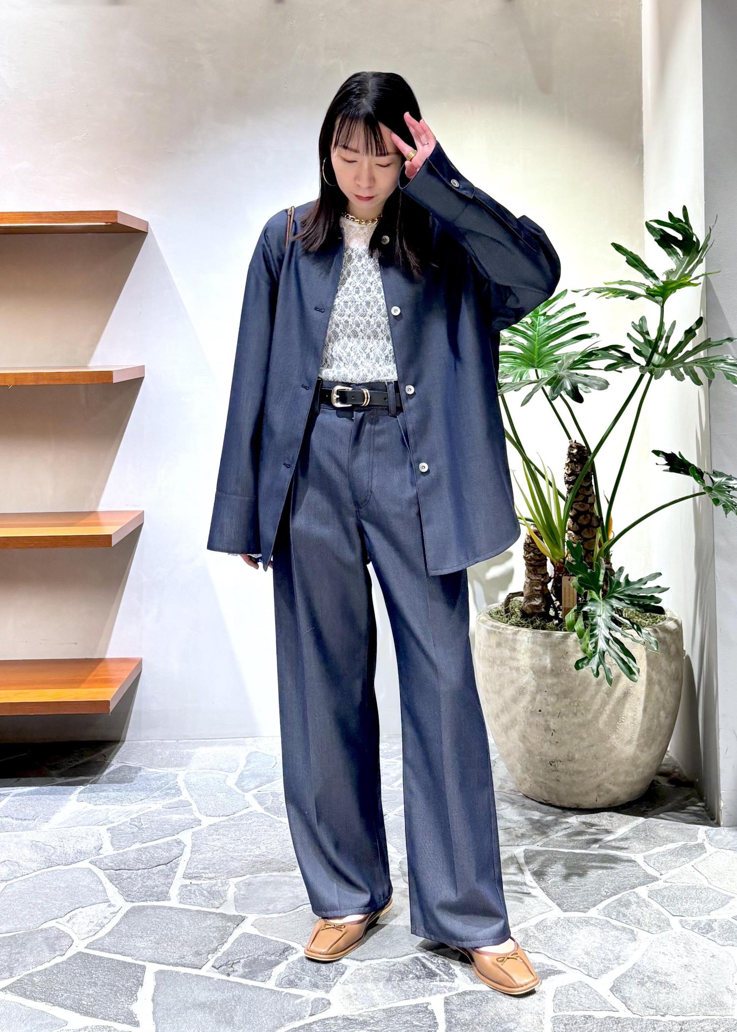 デニムのセットアップだけでスタイリングも雰囲気があり素敵できたが、今回はレースカットソーを入れて女性らしさをプラスしました。