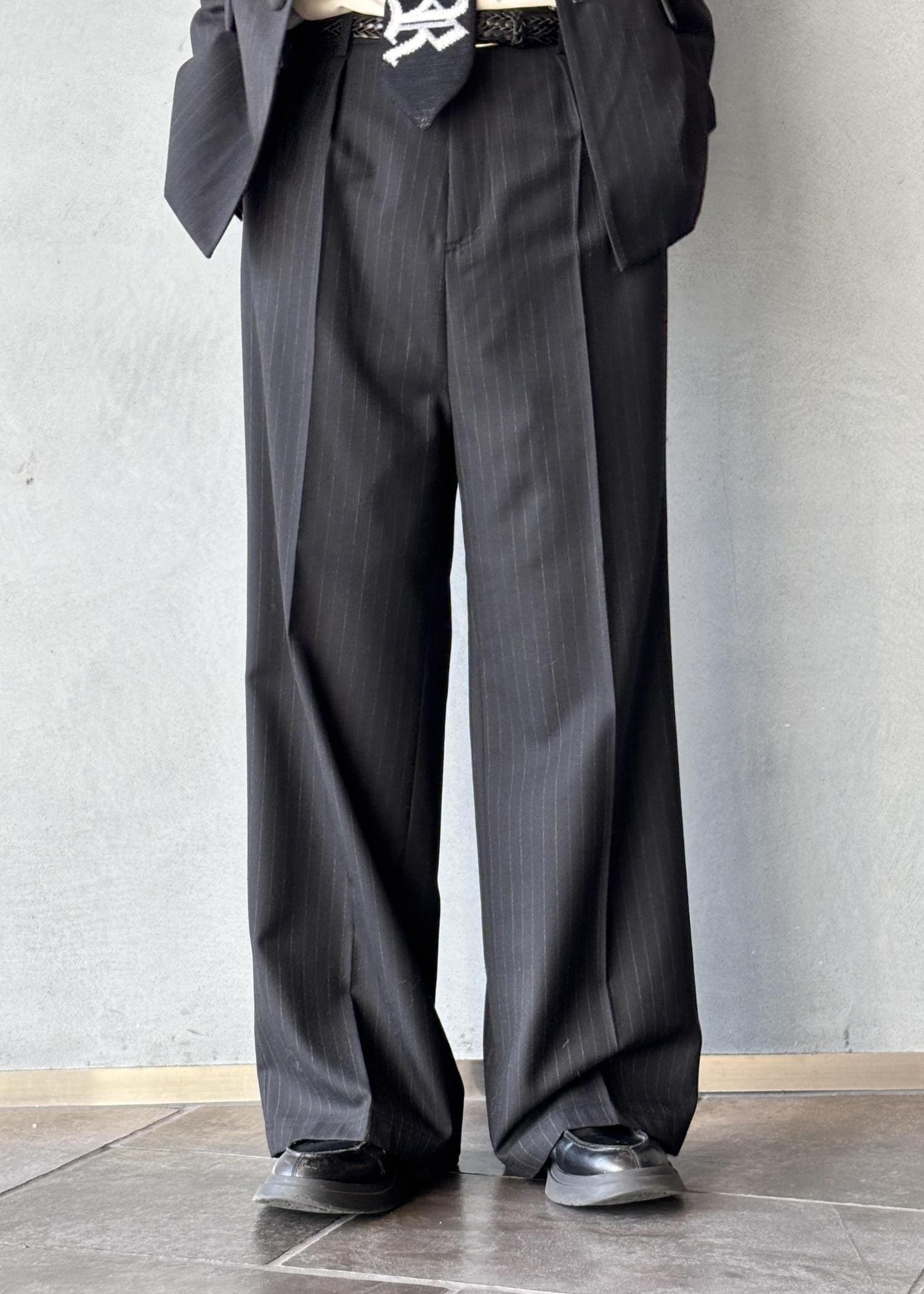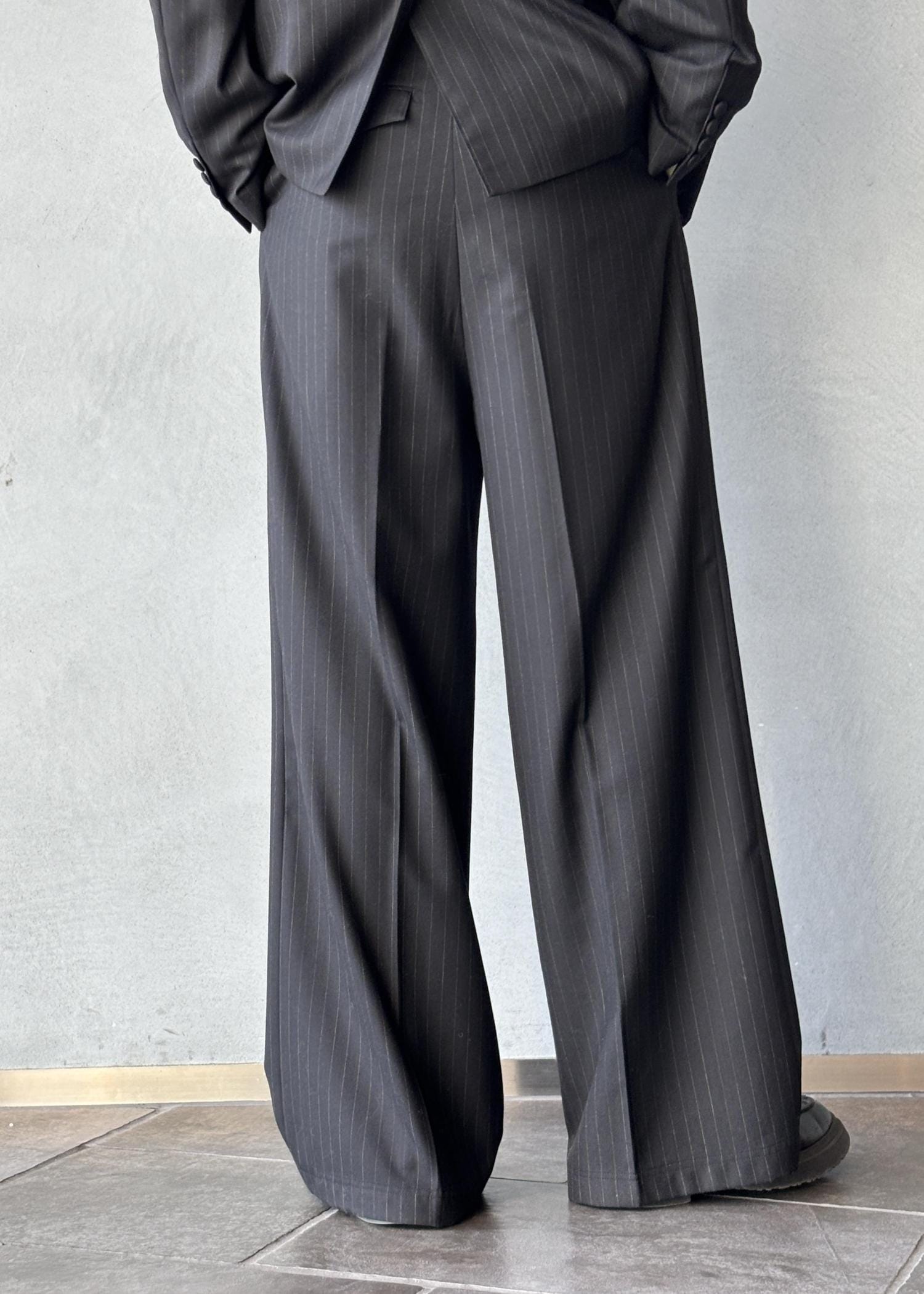 ADAM ET ROPÉ HOMME【TENDER PERSON/テンダー パーソン】WIDE PANTSブラック系 / 3¥49,280レビュー尾州産のSuper'100 ウールストライプを使用。