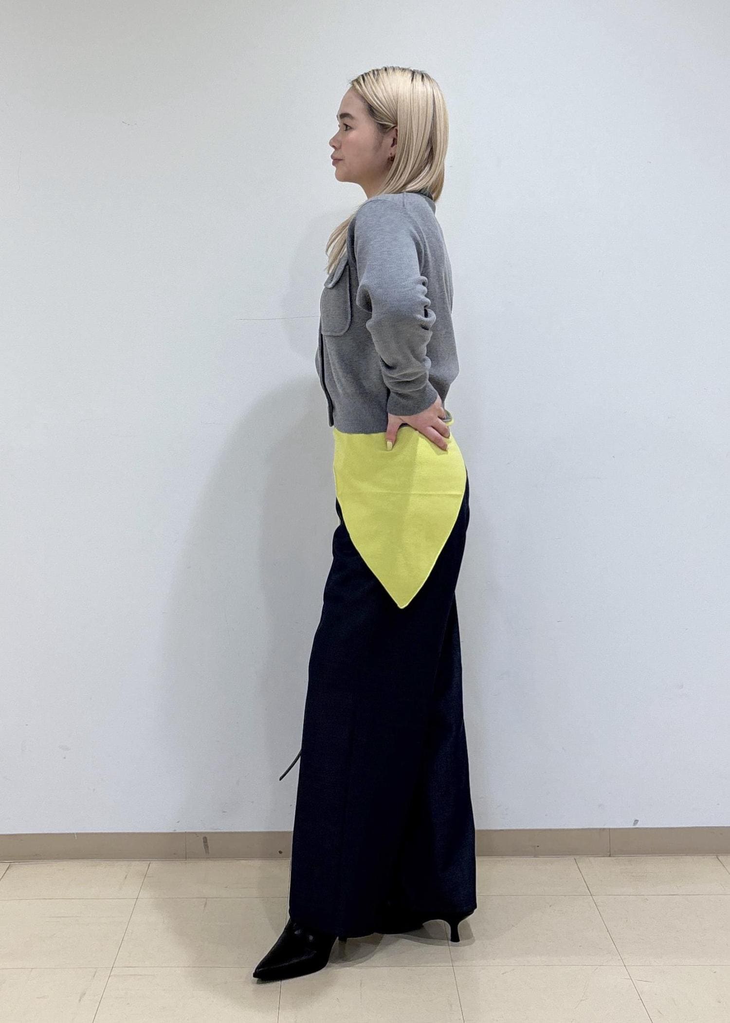 擦らない丈感でとても綺麗なシルエットで程よいリラックス感のある程よい張り感があります。 -
