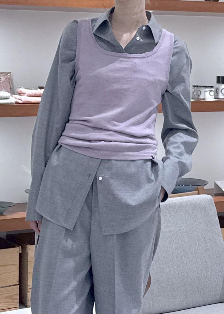 シャツやロンTにレイヤードしたり、インナー使いにも。