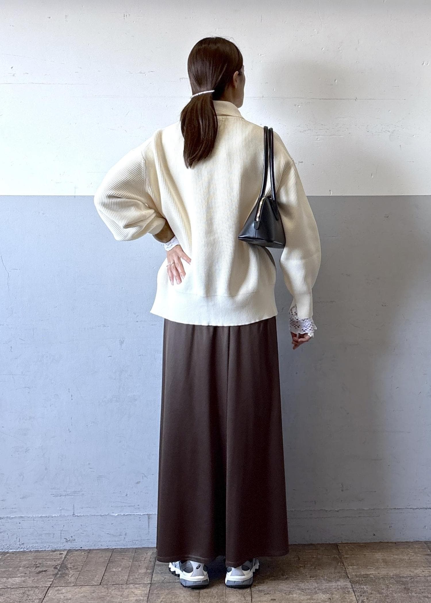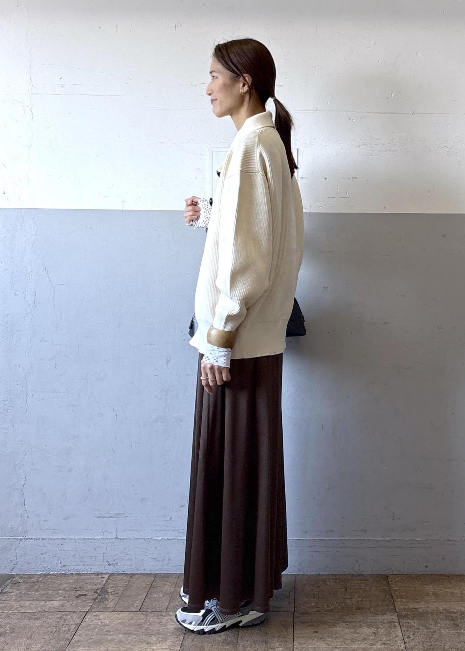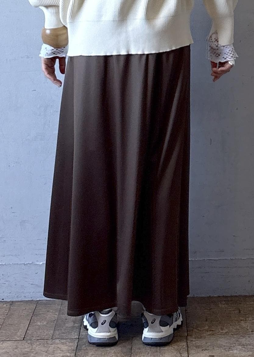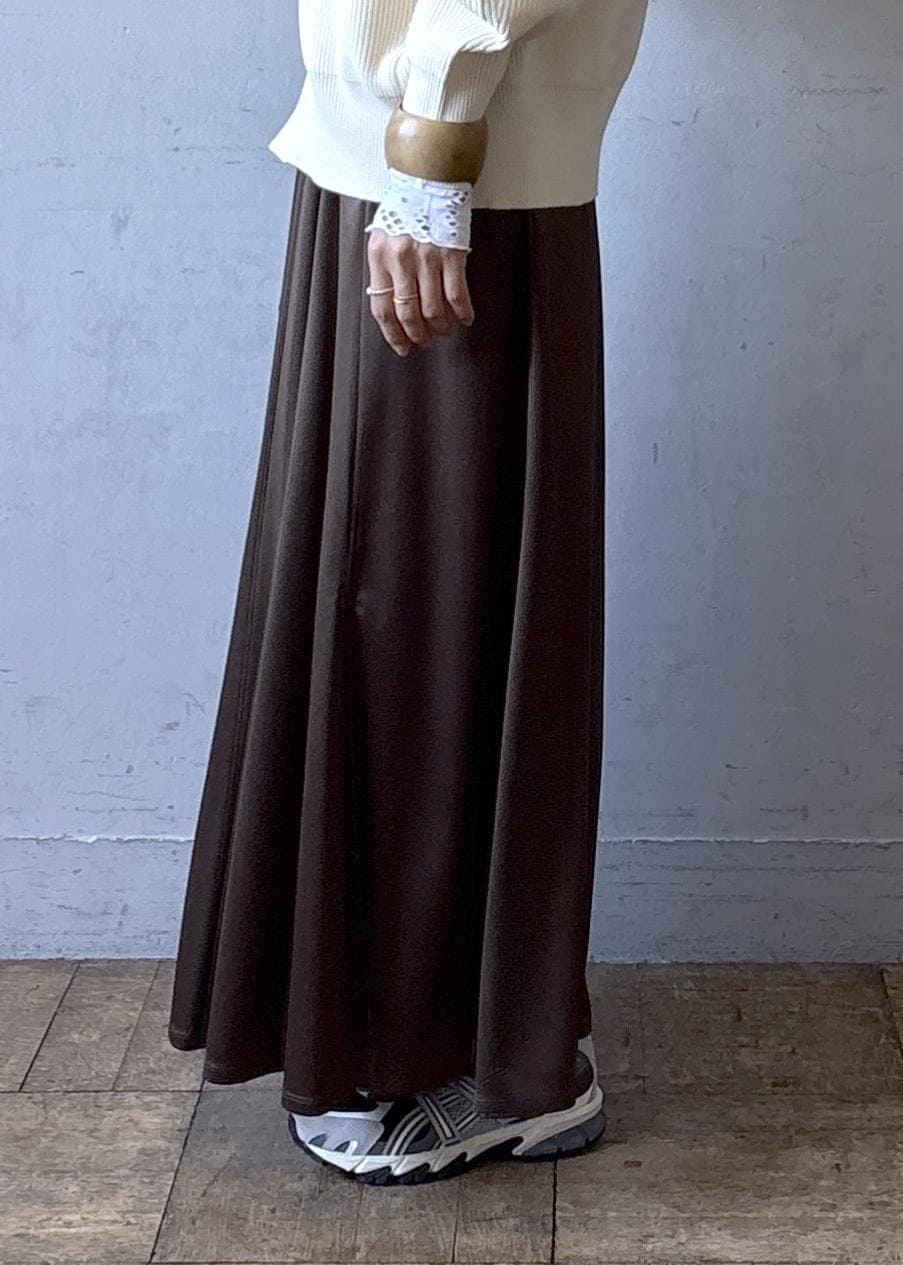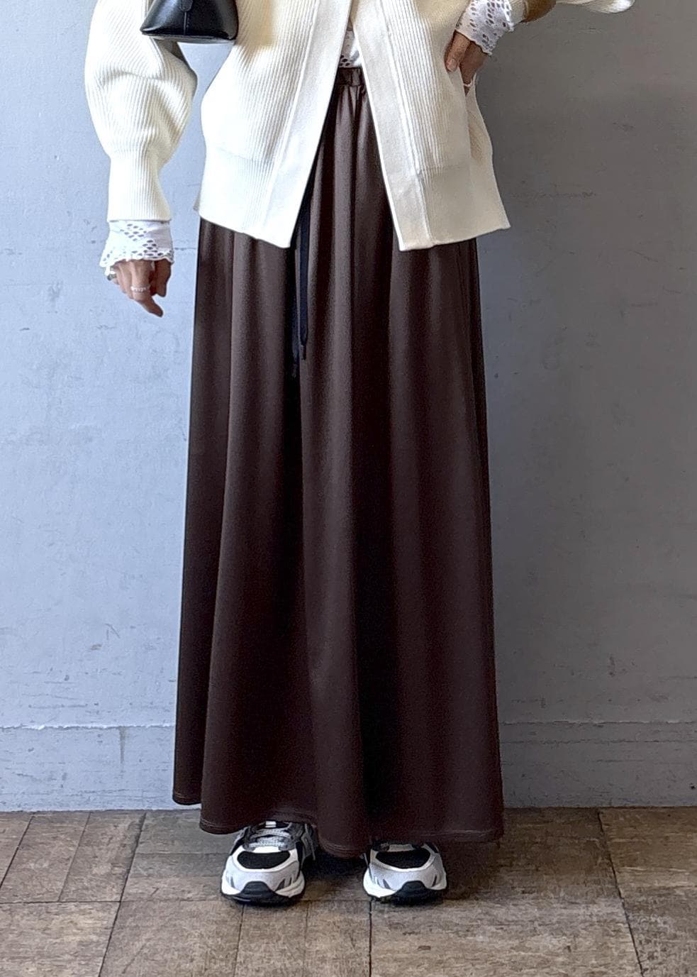 生地がたっぷり使ってあり幅感もあるスカートですが、落ち感のある素材なのですっきり見えが叶うのが嬉しいアイテムです!