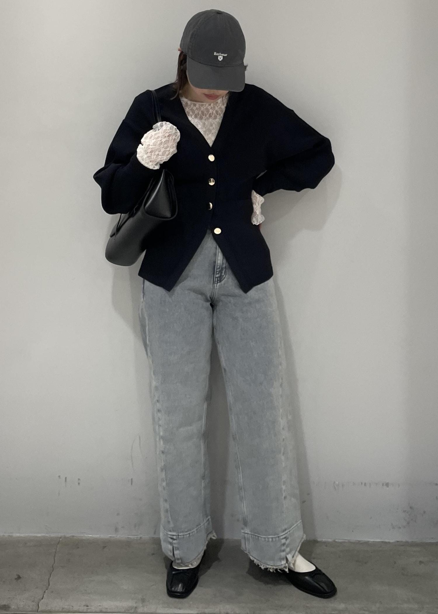 綺麗めな雰囲気なのですが、あえてボトムスにカジュアルなアイテムを持ってきても可愛いと思いました☺︎
