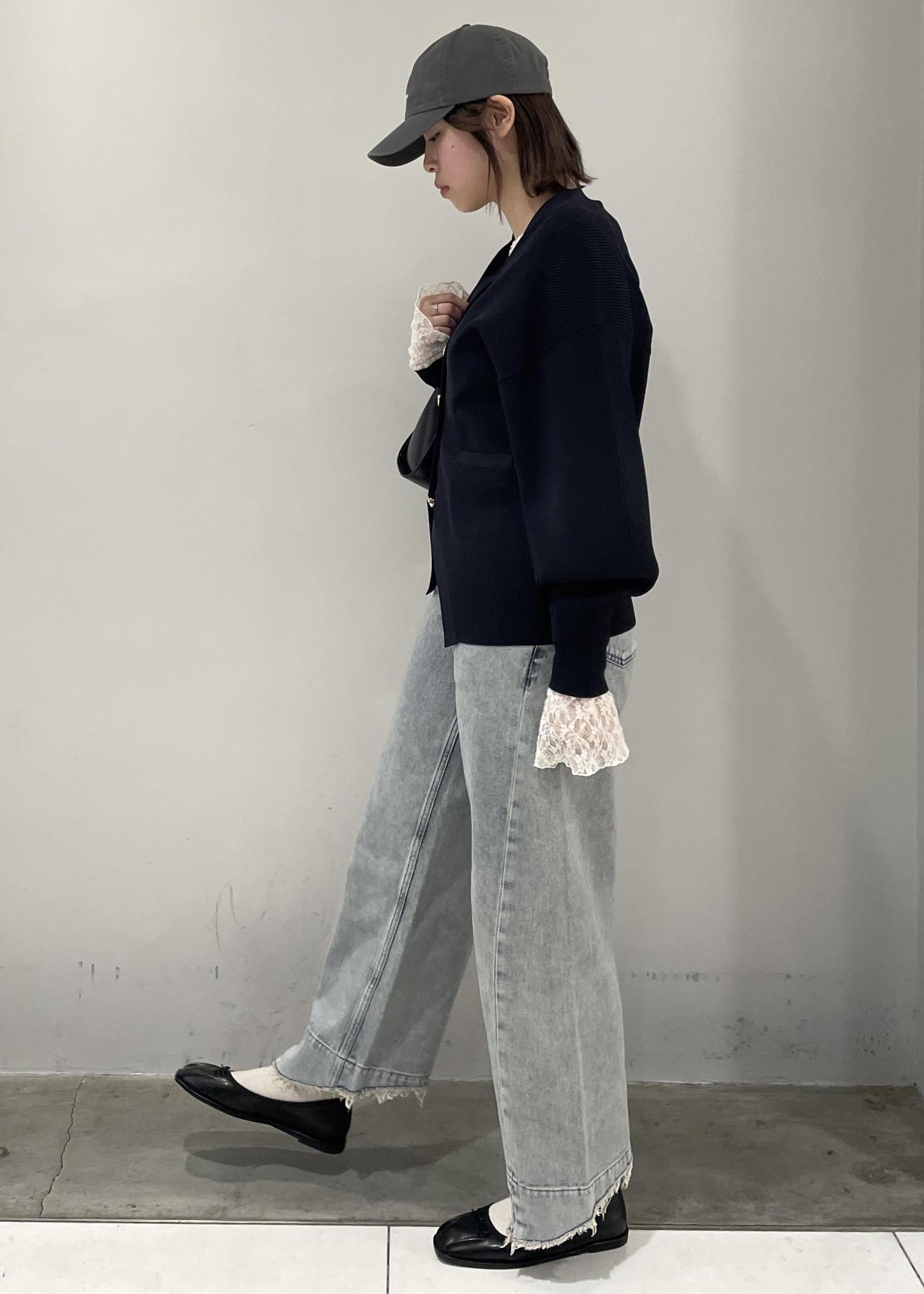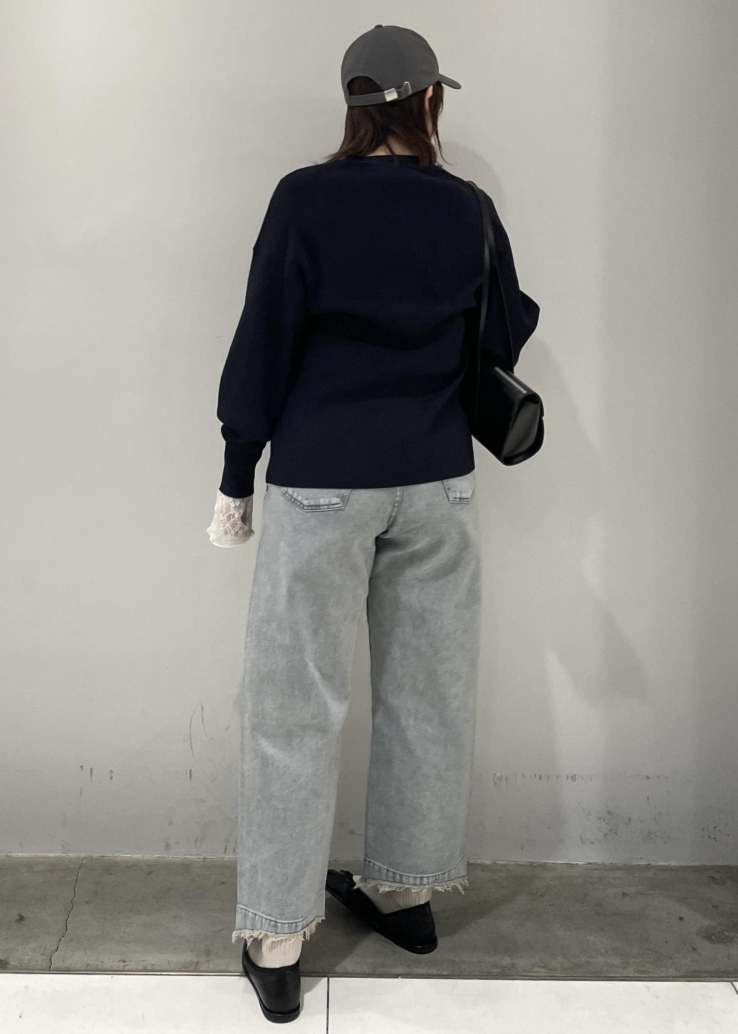 タイトめなトップスなので、ボトムスはワイドシルエットをチョイス!