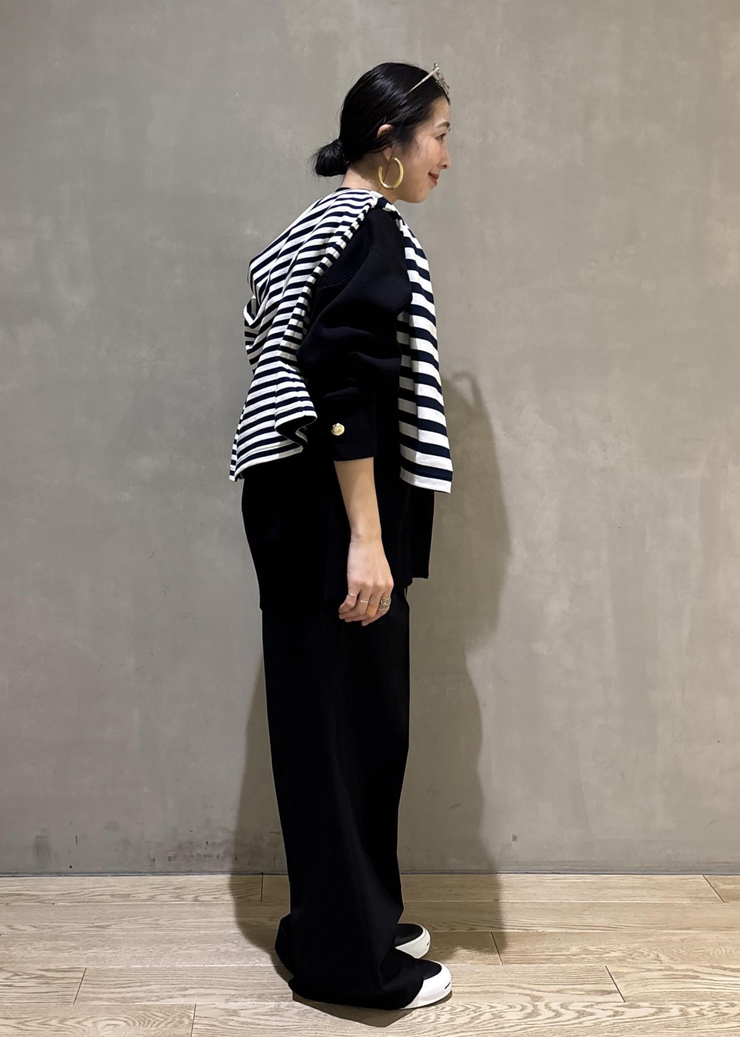ADAM ET ROPÉ FEMMEイージースラックスブラック / 38¥22,000レビューウエストタックなので、少しゆとりがあり楽に着用できます。太さも細すぎず太すぎずの太さで、カジュアルすぎないのでお仕事着にもおすすめです。後ろゴムなので、締め付けもなくかなりストレスフリーです!!紐は取り外しができるので、テイストに合わせてつけてカジュアルダウンしたり、外してカッコよくまとめたりとアレンジできます。