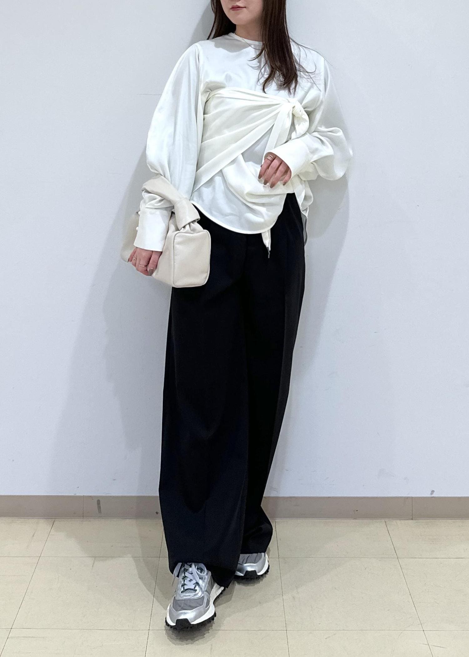 ADAM ET ROPÉ FEMMEイージースラックスブラック / 36¥22,000レビュー白い紐が付いたスラックスパンツ。36サイズを着用しましたが、ヒールや厚底を履いてもちょうど良いくらいの長さで履けました。