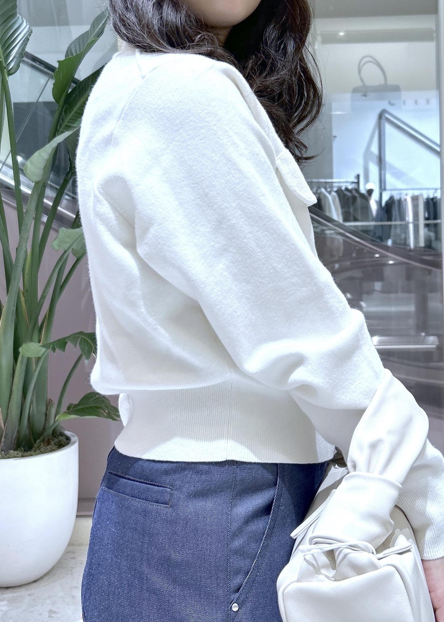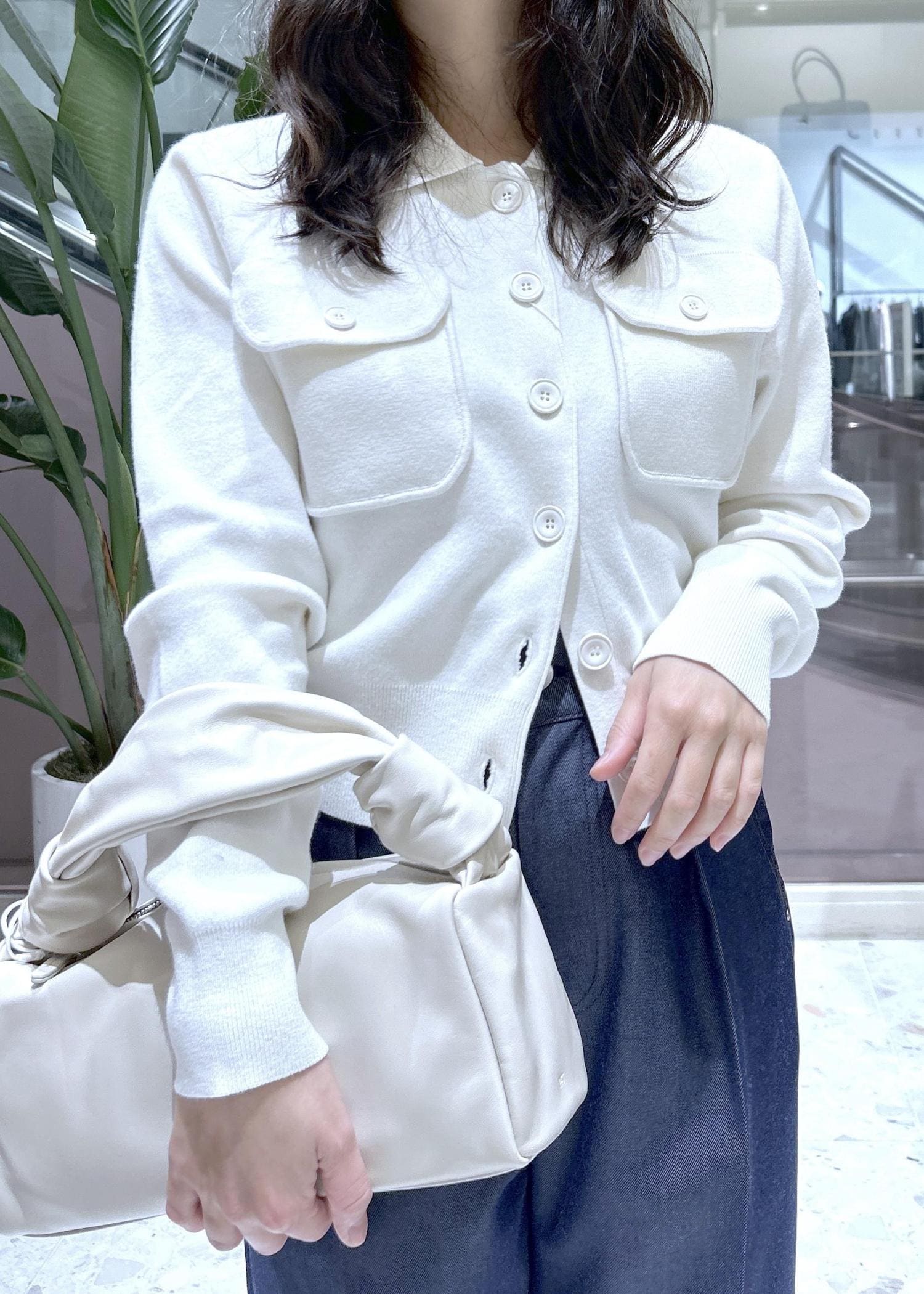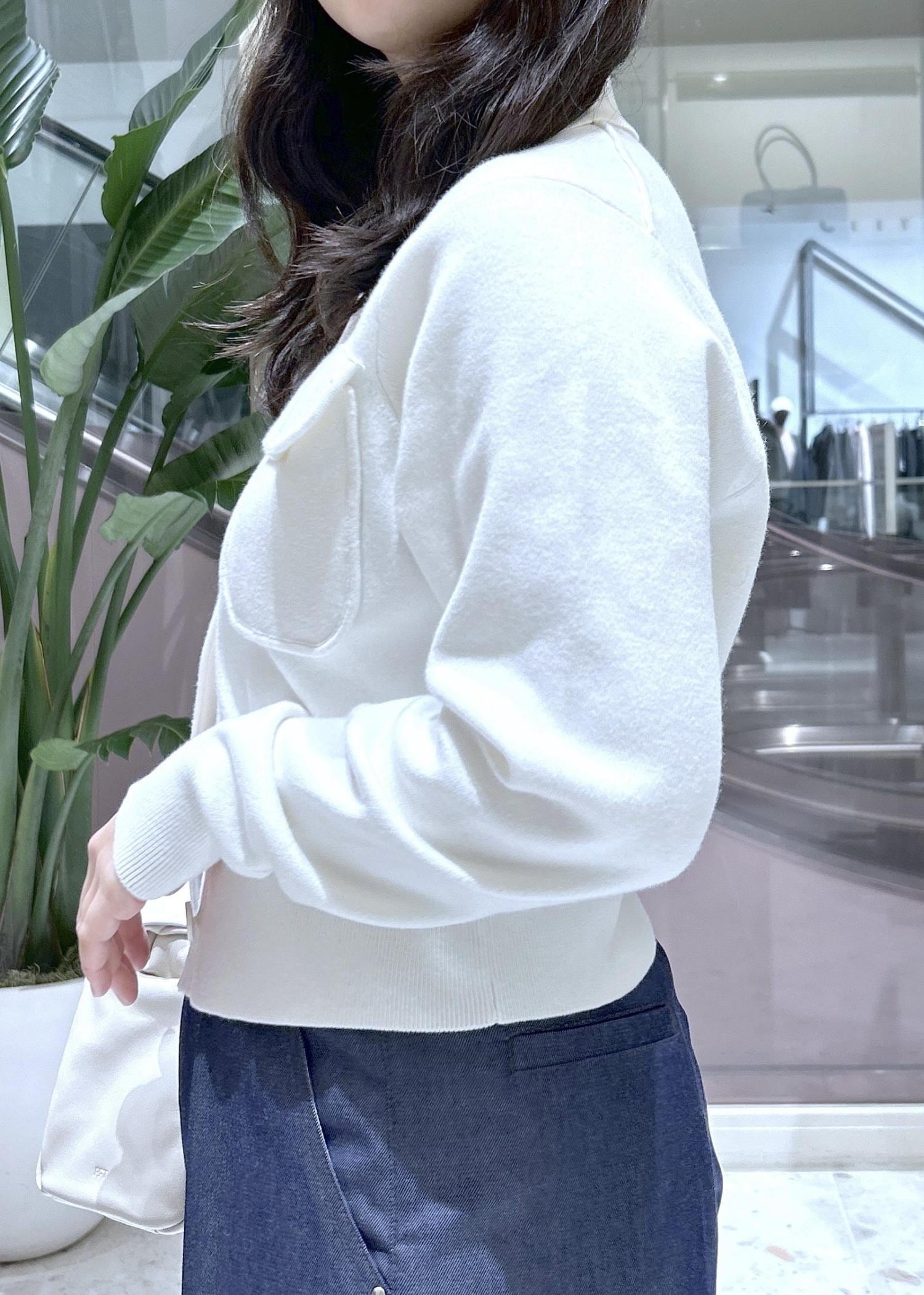ADAM ET ROPÉ FEMMEコットンカシミヤポケットカーディガンオフホワイト / F¥24,200レビューとにかく柔らかい生地でもちっとした肌触りが気持ちいいアイテムです。チクチク感も一切ありません。短丈なのでハイウエストとも相性よく合わせて頂けます。