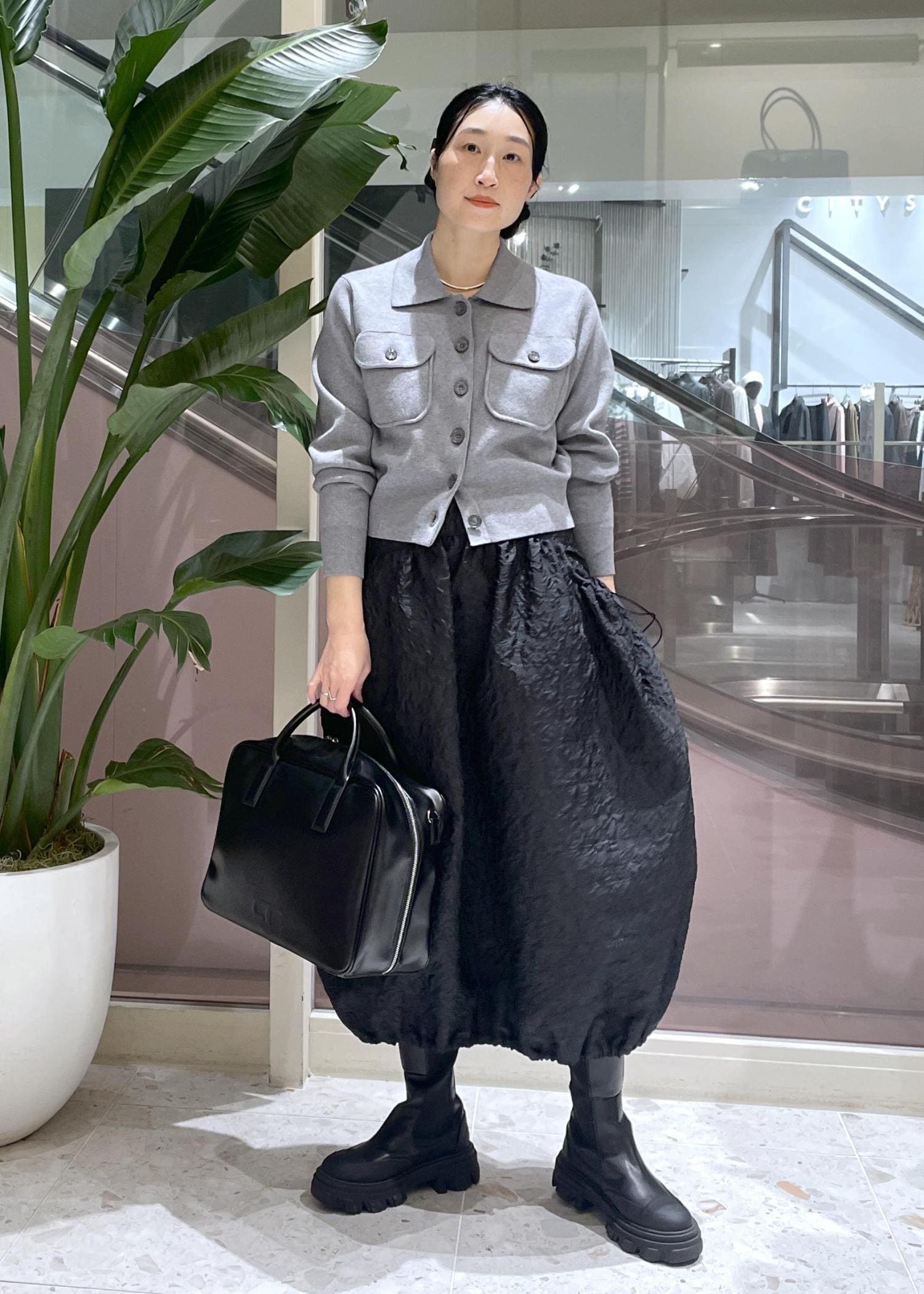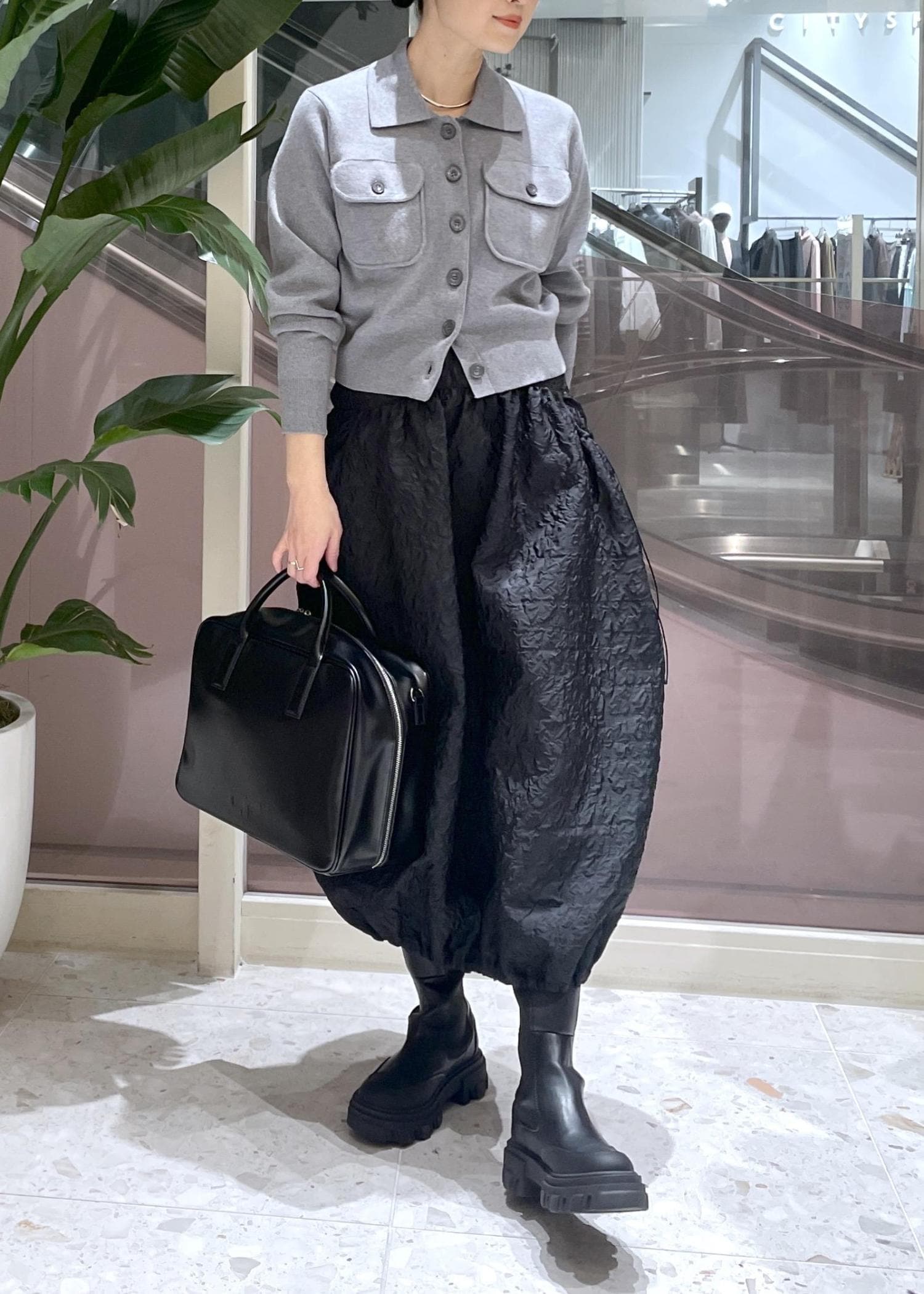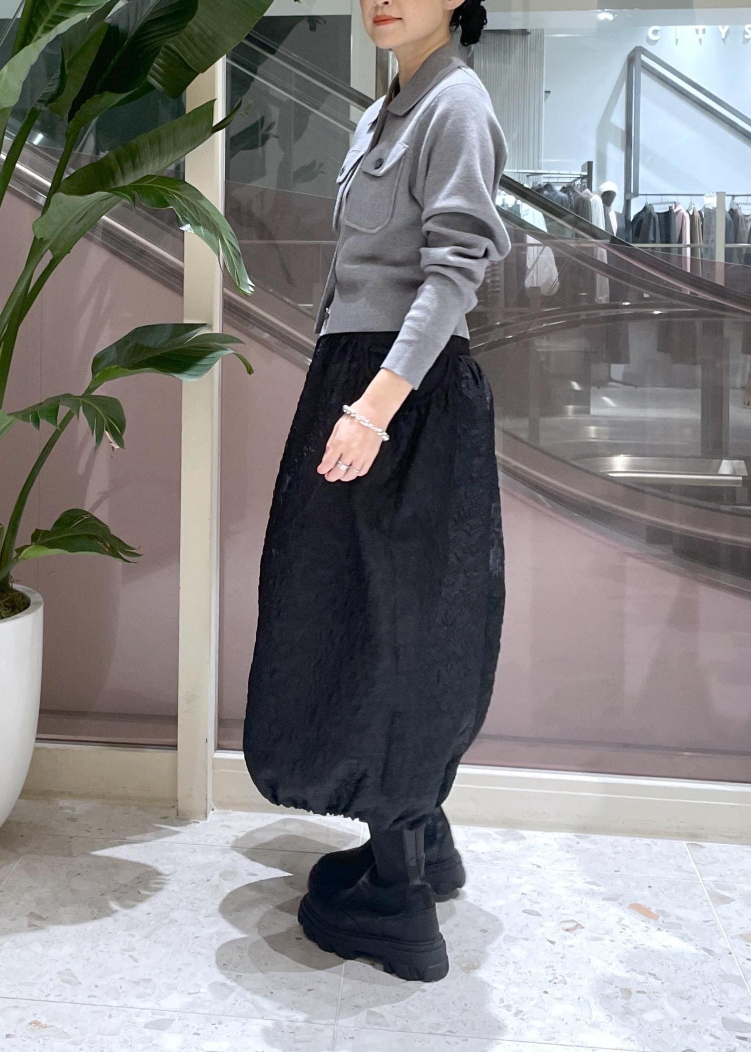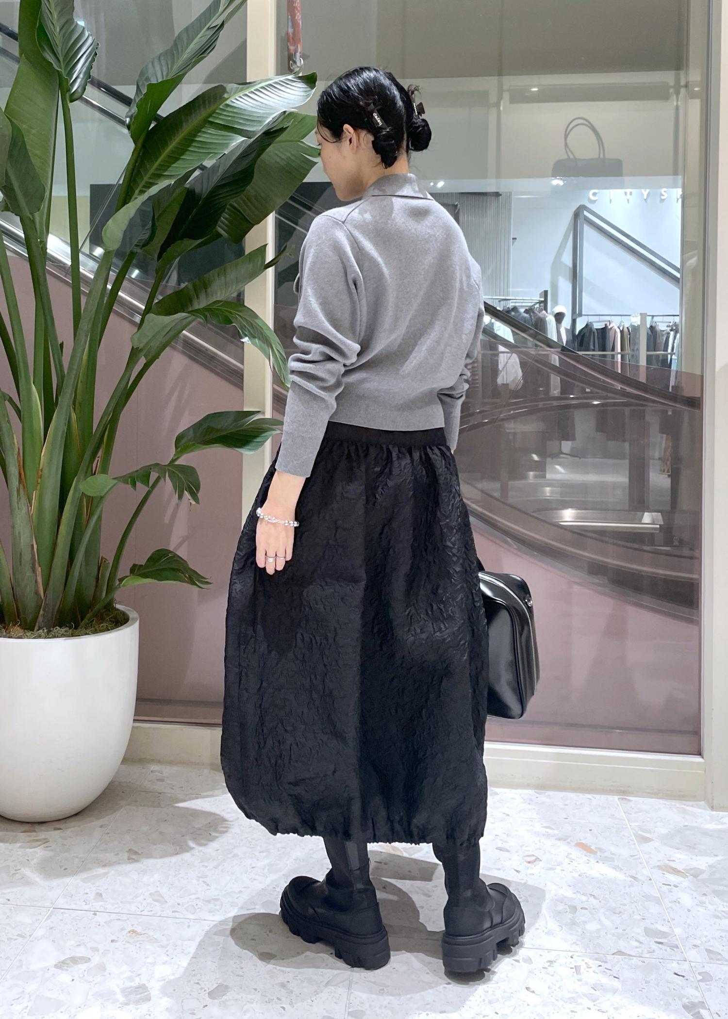 ジャガードの生地感とポワンとしたシルエットが華やかです。 -